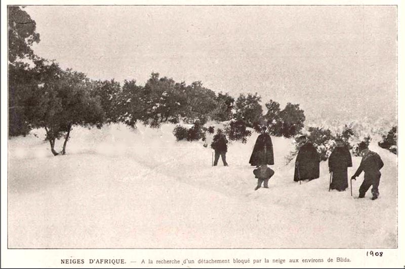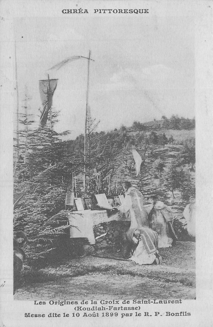******* En 1899, l'abbé BONFILS, professeur au Collège ST CHARLES DE BLIDA, célèbre une messe du Koudiat FORTASSA lors de l'érection de la croix dite CROIX des PERES BLANCS et ceci, disait-on, pour commémorer le sacrifice de 2 cantonniers de la ville, ROSSIGNOL et RONDA, perdus dans une tempête de neige alors qu'ils tentaient de secourir une section de tirailleurs qui s'était égarée dans ce massif au relief très accidenté et aux ravins abrupts. Leurs corps furent retrouvés quelques jours plus tard, à la fonte des neiges ;d'après les souvenirs de vieux blidéens, l'âne qui transportait les vivres a été retrouvé vivant à quelques mètres des corps des deux disparus: la chaleur dégagée par son corps avait fait fondre la neige tout autour de lui, formant un igloo, ce qui lui avait permis de survivre. Bien plus tard, lorsque la route fut construite, le virage au fort pourcentage situé près du lieu de cette tragédie a été dit : Virage de la Croix. (Chréa raconté par Raymond Darnatigues).