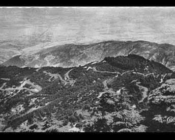 De cette croix, on avait une vue panoramique sur Blida, la Mitidja, la Méditerranée, les collines du Sahel jusqu'au Chenoua. Au pied de celle-ci, il y avait un banc naturel creusé dans le rocher et c'est de ce balcon que l'on pouvait le mieux suivre bles courses de côte de motos ou autos. |