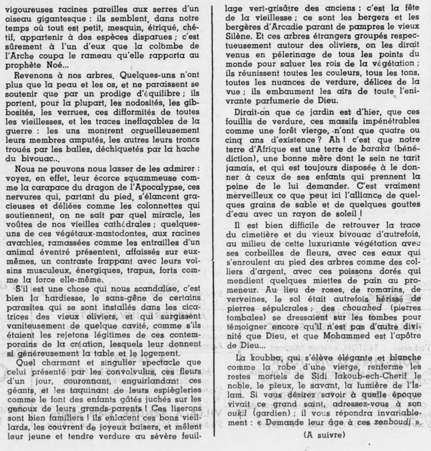 (1) Koubba, petit monument de forme cubique, surmonté d'une coupole, élevé en l'honneur ou sur le tombeau d'un marabouth mort en odeur de sainteté. Koubba signifie, littéralement, coupole, dôme. (2) Zenboudj, oliviers sauvages, ceux dont le fruit n'est pas comestible.