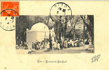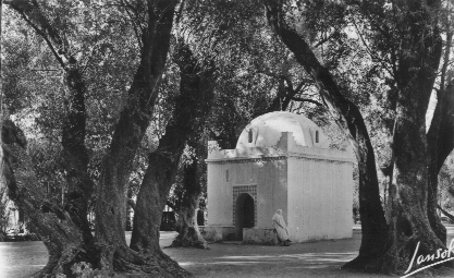 Les Croyants attendaient, couchés auprès de leur intercesseur Sidi lakoub, le jour où la Tout-Puissant redressera les ossements et les couvrira da chair; ces squelettes blanchis, qui croyaient pouvoir attendre en repos la résurrection, ont été dispersés, et leur poussière a été jetée au vent. Sidi lakoub seul a obtenu grâce devant les profanateurs, bien que. si l'on en croit les khoddam du.saint marabouth, la destruction de sa koubba eût été dans les projets des Chrétiens, que Dieu maudisse leur religion ! — mais aucun outil n'ayant pu mordre la pierre de son tombeau, force leur avait été de renoncer à cette impie dévastation, Tant mieux ! car c'eût été réellement un crime de renverser cette élégante chapelle funéraire, si gracieusement placée au milieu des vieux oliviers, Cette Koubba, qui s'élève élégante et Manche comme la robe d'une vierge, renferme les restes mortels de Sidi Iakoub-ech-Cherif, le noble, le pieux, le savant, la lumière de l'Islam.