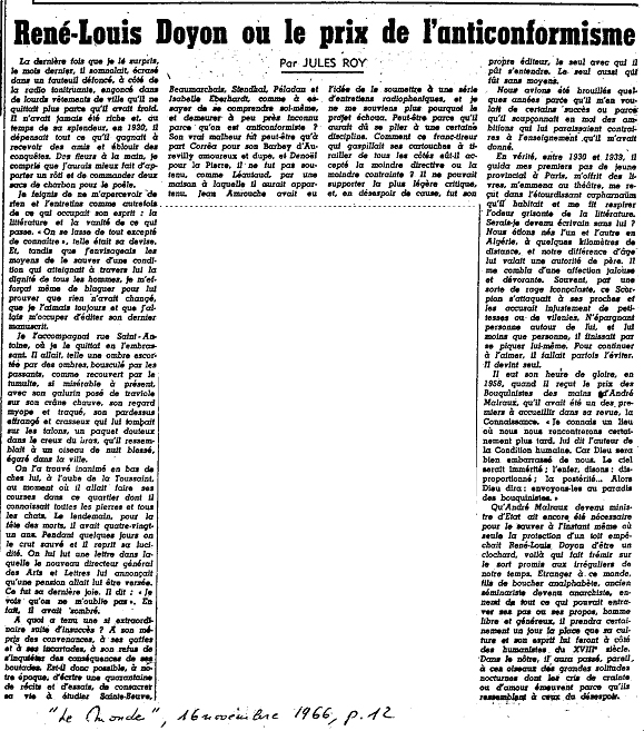 Articles sur Doyon Son décés en novembre 1966 Article1 Première partie Deuxième partie Article 2 Première partie Deuxième partie Troisième partie |