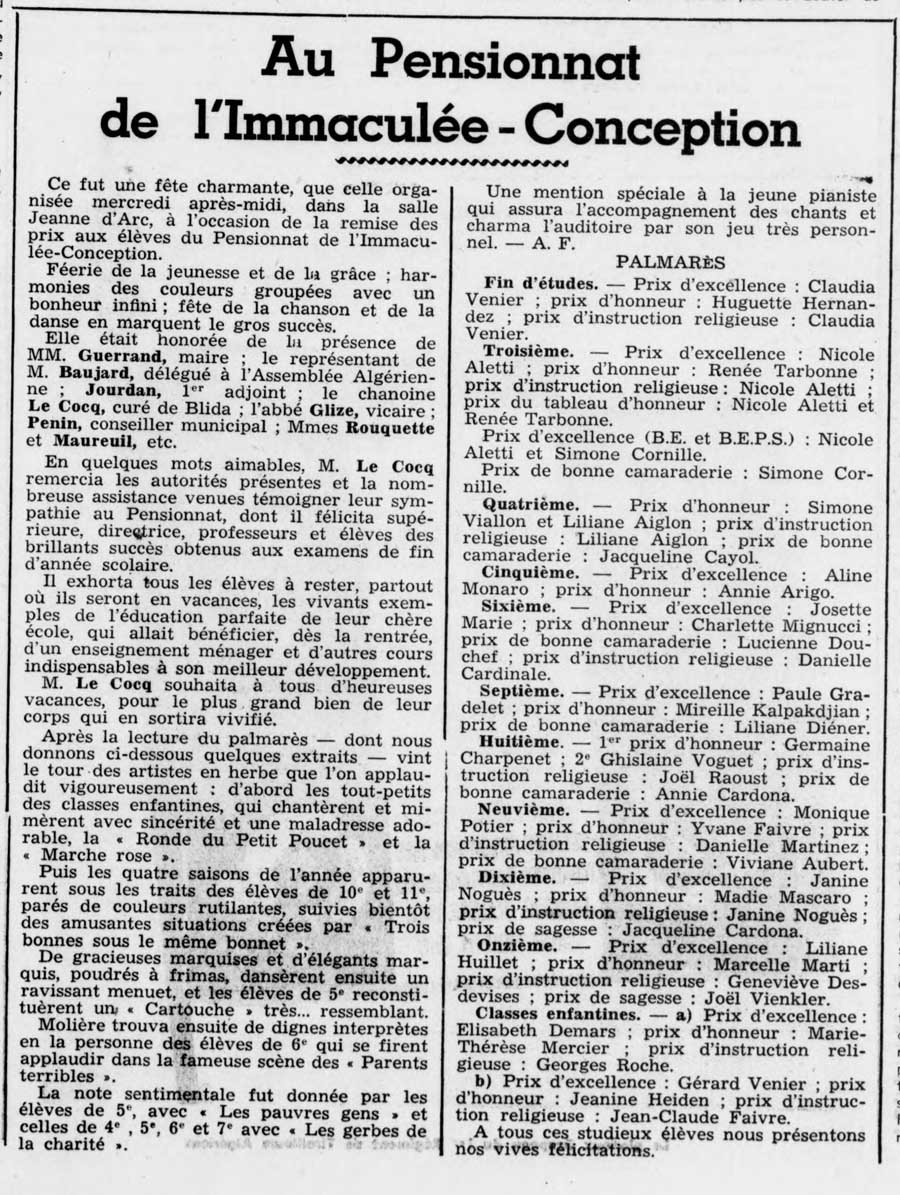 Historique des écoles religieuses chrétiennes. L'ensemble des informations nécessaires à la rédaction de ces pages est tiré de la Monographie de la Paroisse St Charles écrite par Mr la curé A. VIAL en 1936. On pourra aussi relire l'article du Commandant Rocas retraçant l'histoire des écoles de Blida depuis 1844.