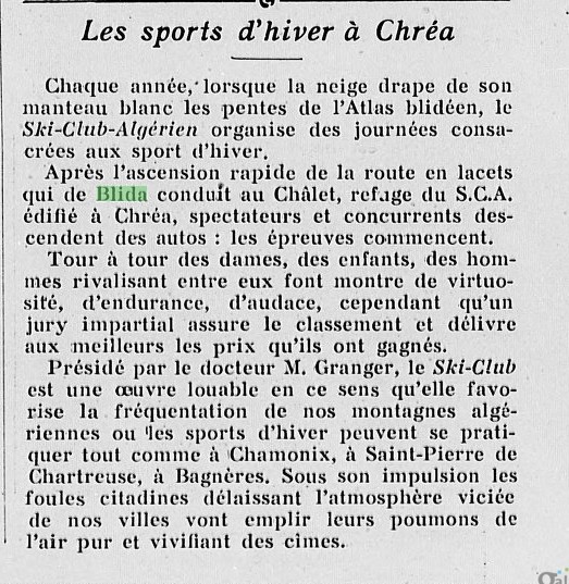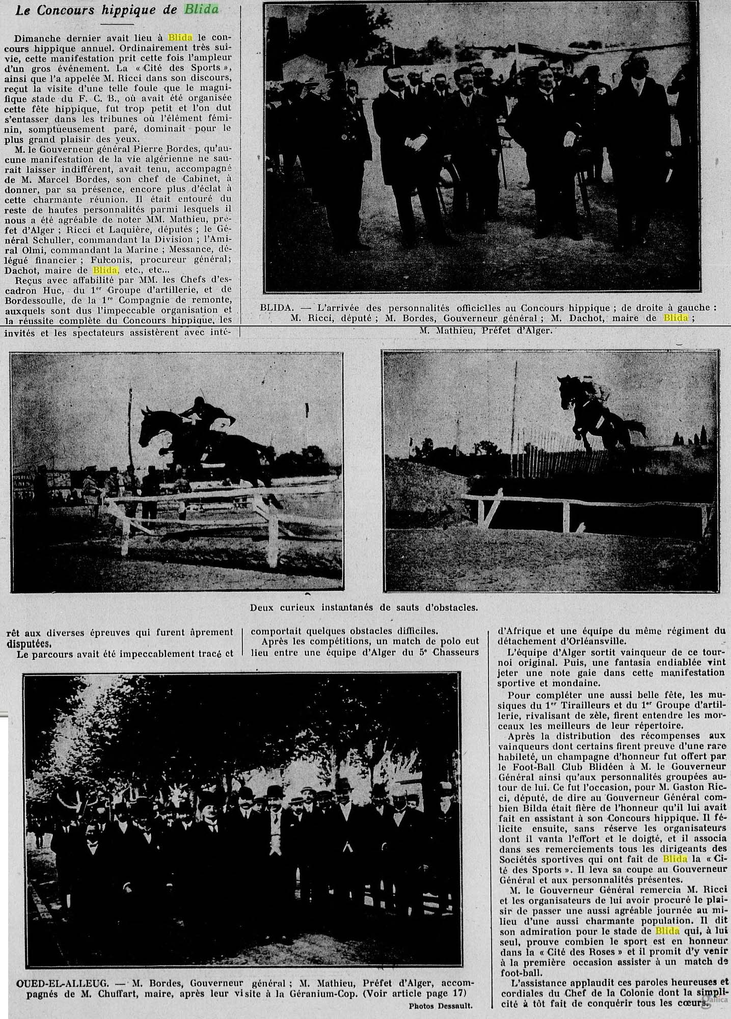 Fêtes Chréa Sport Hippisme Actualités blidéennes Associations Aviation Divers Lettres de Blida