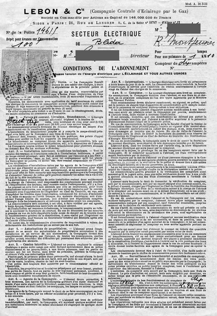 Tout a commencé en 1866 lorsque la Compagnie LEBON obtient la concession pour l'exploitation et la commercialisation du gaz à BLIDA. Le premier éclairage au gaz public sera installé en 1868 (voir l'article) Après avoir exploité le gaz, la Compagnie LEBON obtient le droit d'exploitation de l'électricité en 1923. Elle continuera son activité jusqu'après la seconde guerre mondiale. On assiste alors à la grande vague de nationalisations de ces services aussi bien en France qu'en Algérie (de 1944 à 1949). C'est à cette époque qu'est créé le centre d'apprentissage de l'EGA à BLIDA. La mission du service de la formation professionnelle était d'assurer à Électricité et Gaz d'Algérie par une organisation rationnelle de la formation, le recrutement d'une personne de qualité en lui donnant la possibilité de développer sa formation générale et technique, et pour ceux qui pouvaient prétendre à un poste plus élevé, d'améliorer leurs qualifications professionnelles (extrait des rapports de gestions, paragraphe "formation professionnelle"). A la demande de personnel qualifié réclamé depuis la nationalisation par les différents services des unités, Électricité et Gaz d'Algérie a créé deux écoles située à Blida et Orléansville. Suite à la nationalisation qui regroupa un personnel varié, d'horizons divers et de formations différentes, Électricité et Gaz d'Algérie devait faire face au problème du rajeunissement du personnel et de son adaptation à des techniques qui avaient profondément et rapidement évoluées. Le but de ces deux écoles était de donner aux personnes reçues au concours d'entrée un complément de culture générale, une solide formation pratique adaptée aux besoins précis de l'établissement, de le rendre immédiatement utilisable lors de son entrée en fonction dans les différents services ou unités d'exploitation. L'accès à ces écoles était du niveau Brevet. Il faut noter que pour les deux écoles, l'entrée se faisait par concours, que la formation durait 9 mois et se terminait par un examen de sortie suivi d'un séjour de trois mois en exploitation qui constituait un stage d'application pratique sous le contrôle de l'école. L'école d'Orléanville créée en 1952 formait aux emplois administratifs. Les cours dispensés étaient avec la culture générale, la comptabilité, le droit, la dactylographie, l'éducation physique et l'étude de l'arabe. L'école fut fermée en 1954 suite au tremblement de terre de septembre qui éprouva la région. Son activité a été ensuite transférée à l'école de Blida. L'école de Blida fut ouverte à sa première promotion en octobre 1949. Ses locaux jouxtaient les districts et le stade du Football Club de Blida. Les cours dispensés étaient avec la culture générale, l'éducation physique, l'électricité, la technologie, le dessin, l'étude de l'arabe et bien sur la formation technique sur tous les réseaux (transport et distribution aérien et souterrain), la prévention et la sécurité. L'enseignement théorique était dispensé par des professeurs de l'éducation nationale. L'enseignement spécifique à l'établissement était assuré par des agents confirmés. La plupart des agents issus de ces écoles ont accédé à des emplois de maîtrise, maîtrise supérieure et pour certain de cadre. En 1955, des consignes étaient données pour admettre davantage de musulmans que le contingent normal (procès verbal de la réunion du conseil d'administration n°48 du 24 mai 1955). Extraits d'un mémoire concernant Electricité et Gaz d'Algérie (Une grande entreprise d'Afrique du Nord - 1947 - 1962) de Virginie LEFEBVRE - 2003 Vous pouvez consulter un autre document retraçant son histoire (8 Mo) ou encore le site des anciens de cette école. |