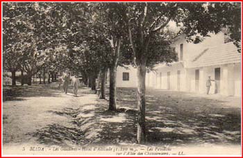 La Glacière et le Père Laval. La Glacière qui fournissait aux Blidéens la glace qu'ils consommaient en faible quantité, car l'eau de Blida, renommée pour sa fraîcheur idéale, ne leur en faisait pas éprouver le besoin, la Glacière, dis-je, est un lieu quasi historique. Dans ses citernes et ses galeries souterraines, les montagnards berbères du temps des Deys, accumulaient les neiges hivernales qu'ils tassaient fortement. L'été venu, ils les transportaient à dos de mulet, jusque dans les cuisines royales. Des glaciers florentins, anciens esclaves affranchis, en récompense de leur habileté, confectionnaient avec cette neige agglomérée, les exquis sorbets aux fraises ou aux framboises, que le souverain dégustait en compagnie des favorites grecques ou franques de son harem. Ving ans après l'occupation française, la Glacière échut à un blidéen, le père Laval, dont les vieux habitants ont gardé le meilleur souvenir. Ce brave homme était propriétaire d'un café, sous les arcades de la place d'Armes, du même côté que l'imprimerie Mauguin. Dans ce café et ses dépendances abritant le cercle militaire, dans ce café dis-je, comme à l'Apollon d'Alger et au Helder de Mustapha - ce dernier disparu depuis une trentaine d'années - défilèrent toutes les célébrités militaires de la conquête. Le père Laval, au fort de l'été, recevait deux fois par semaine, apportée par ses muletiers kabyles, la neige pilonée, qu'avaient si souvent reçue les Deys d'Alger. Il s'en servait pour préparer les glaces à la vanille et au moka, dont la réputation s'étendait au loin; les familles venaient les savourer les soirs où la musique donnait ses concerts. Les glaces et les sorbets du café Laval, dont raffolaient les Blidéennes, n'étaient pas, pour beaucoup d'entre elles, le seul attrait de ses séances de dégustation. Il y avait pour les plus jeunes, celui de la présence des fringants officiers de chasseurs de la garnison...............
