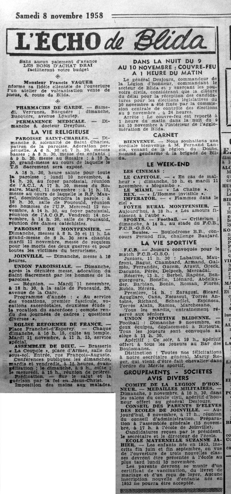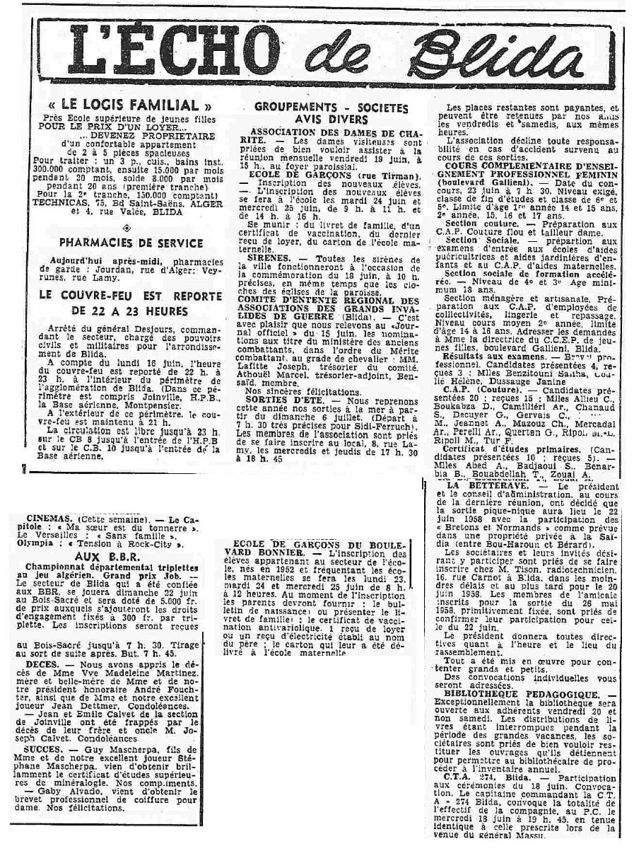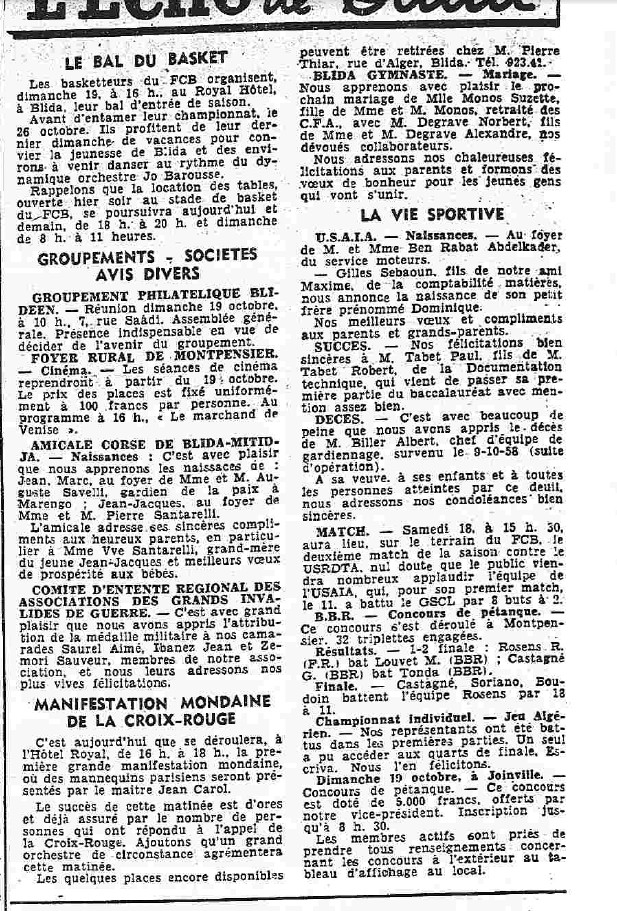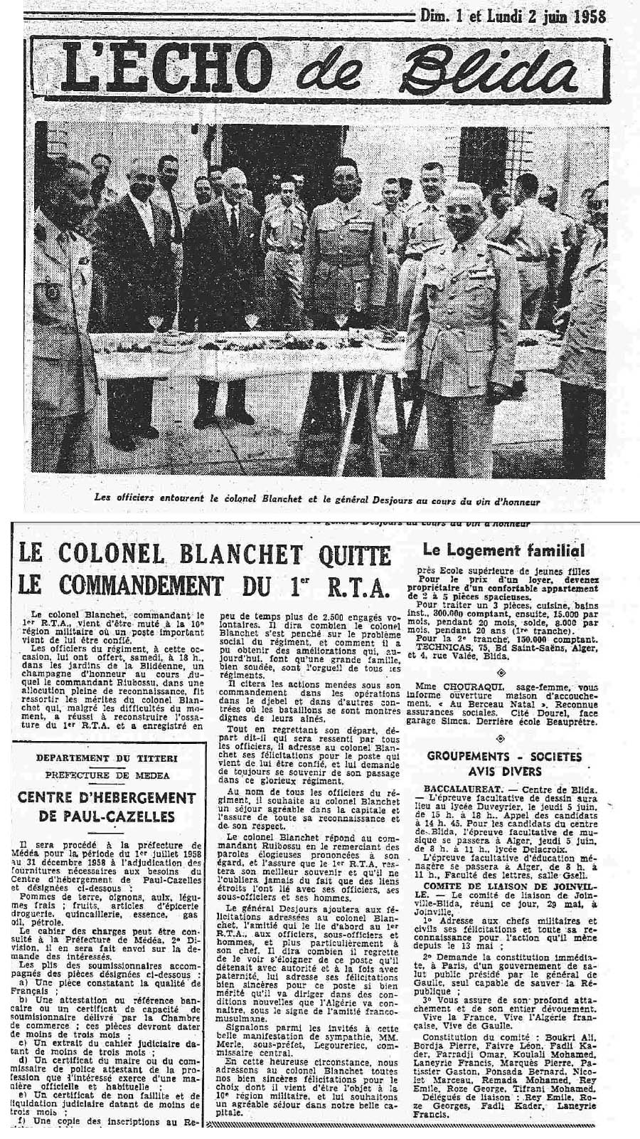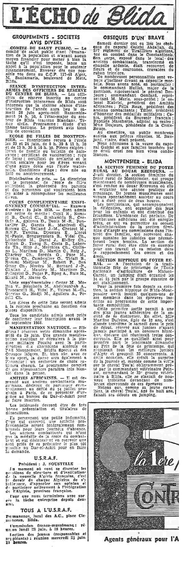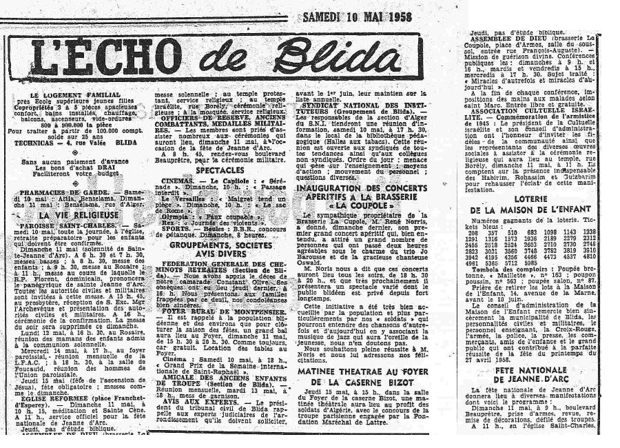 ANNEE 1958: Echos de BLIDA et Dépêche Quotidienne |