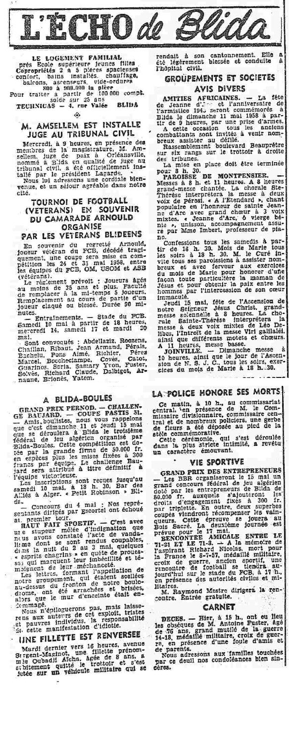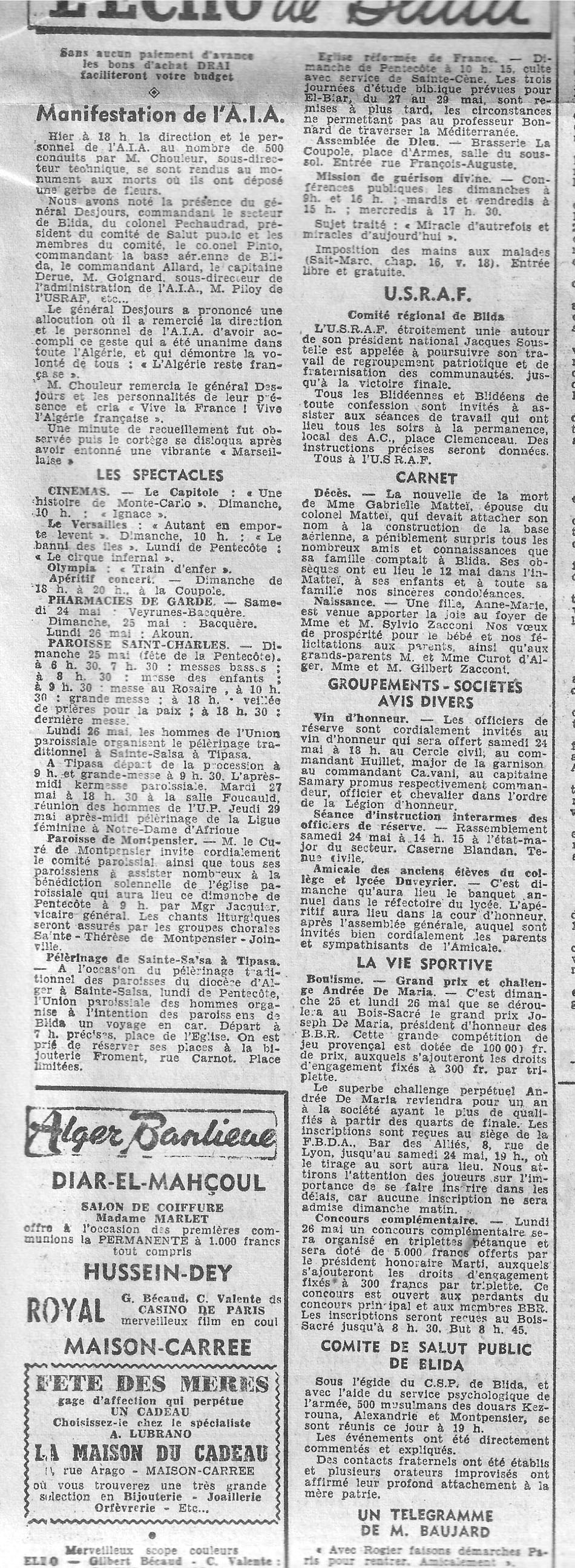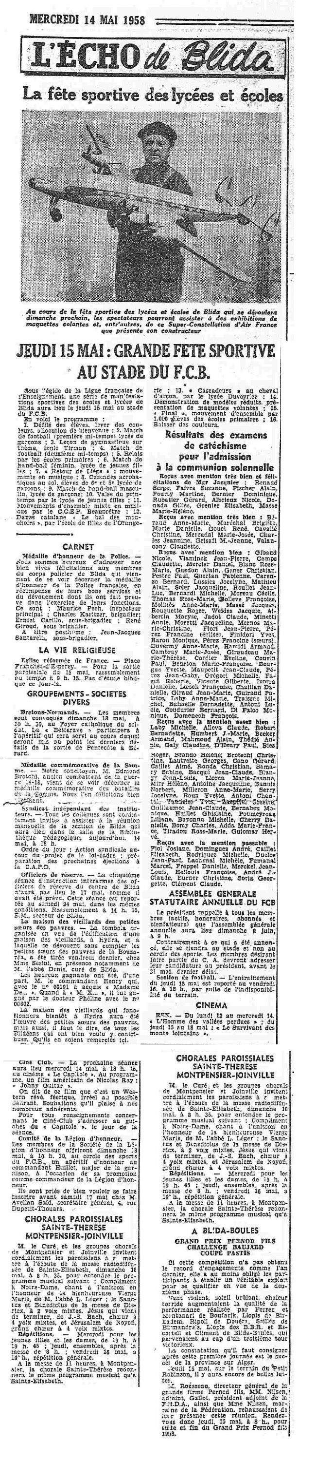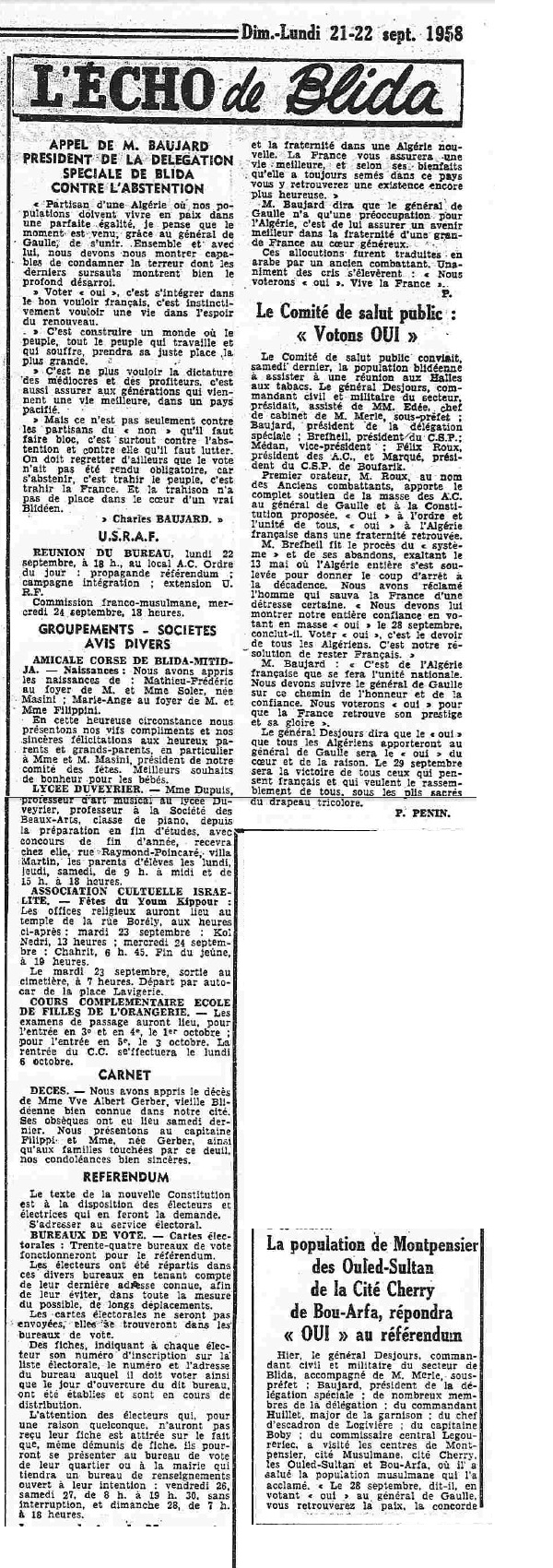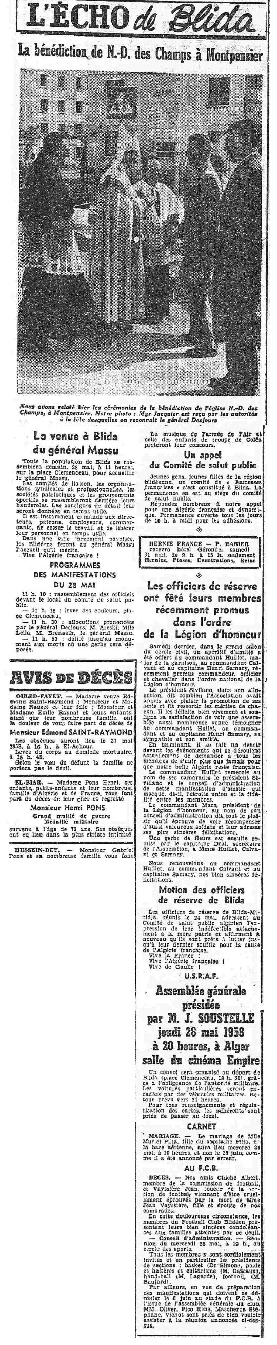 ANNEE 1958: Echos de BLIDA et Dépêche Quotidienne |