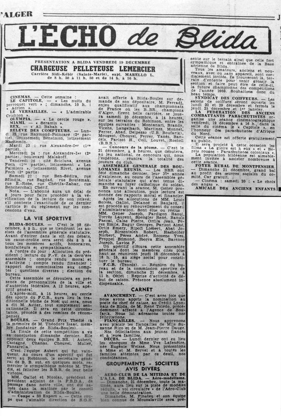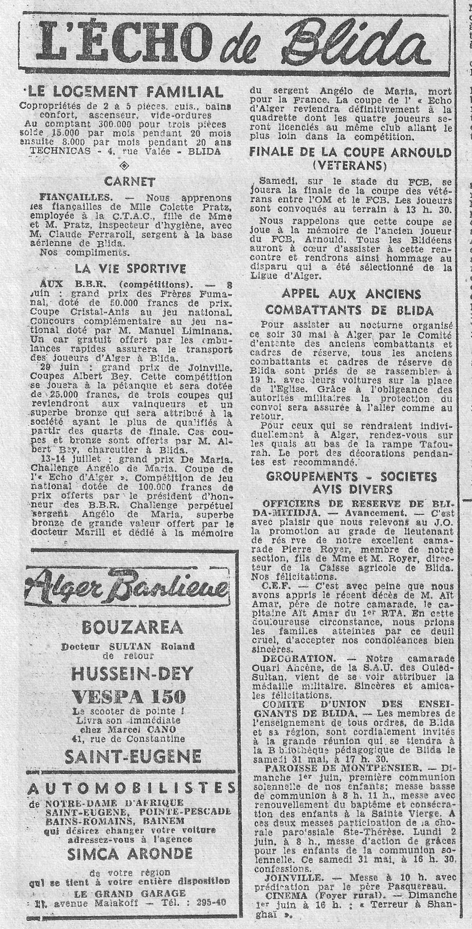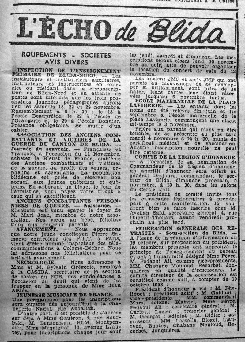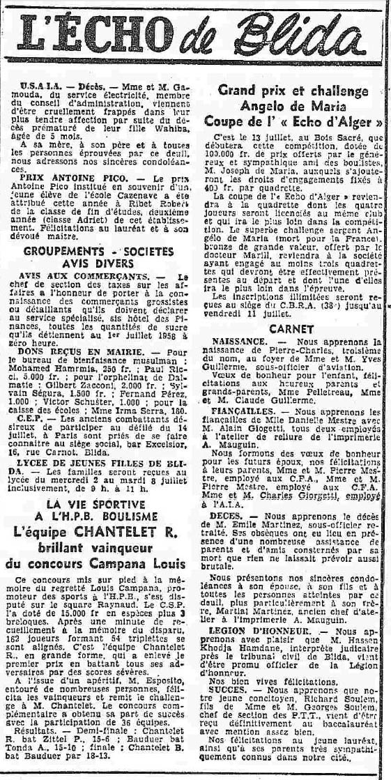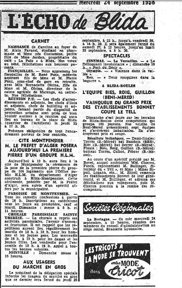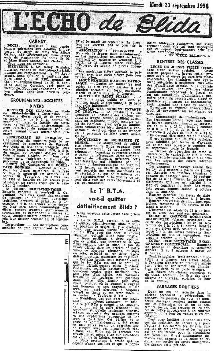 ANNEE 1958: Echos de BLIDA et Dépêche Quotidienne |