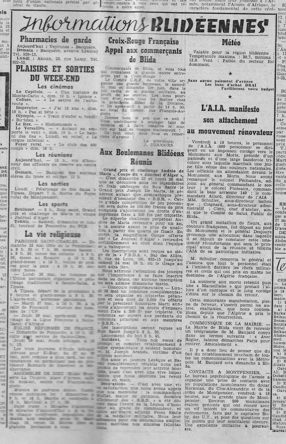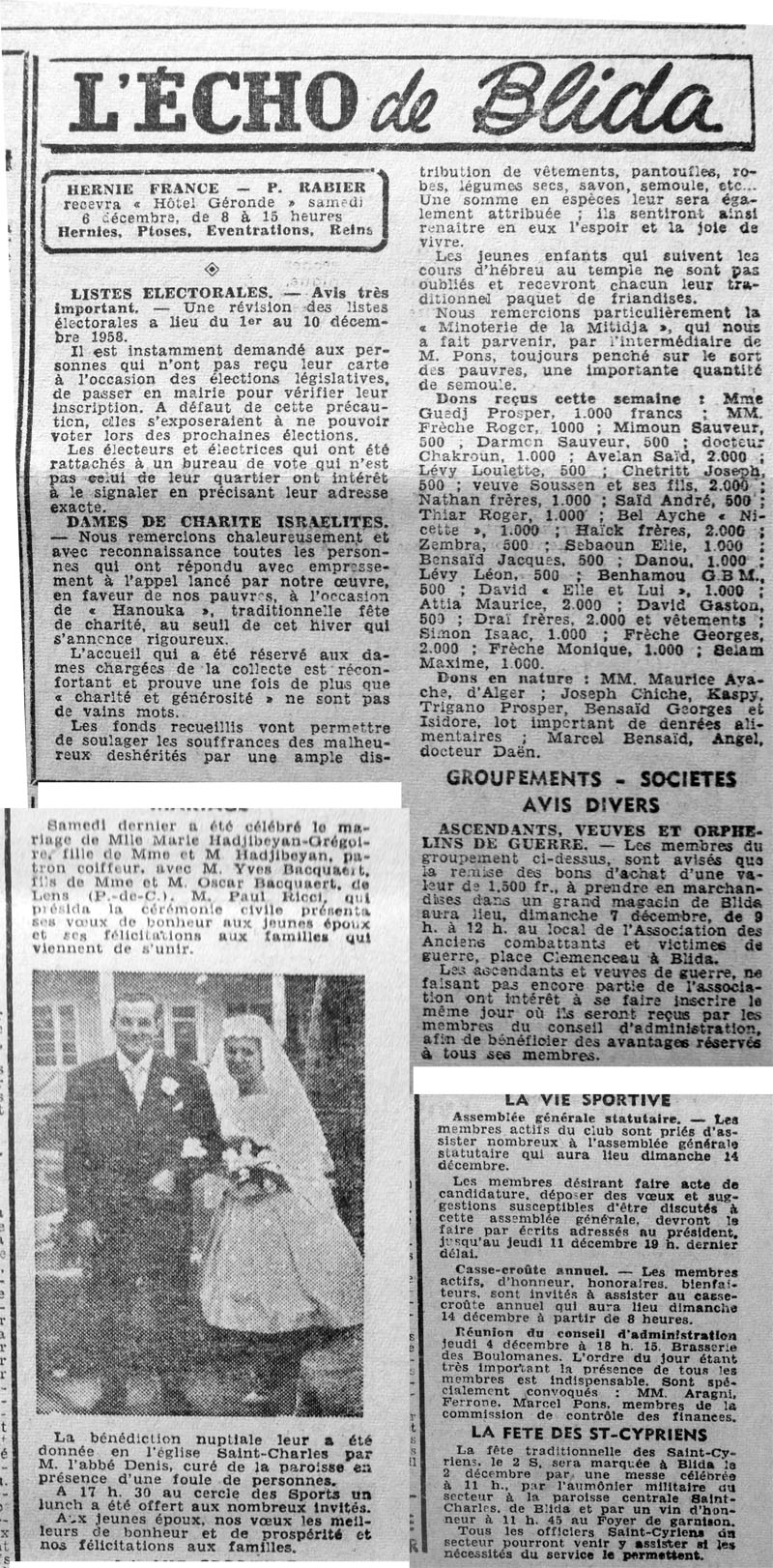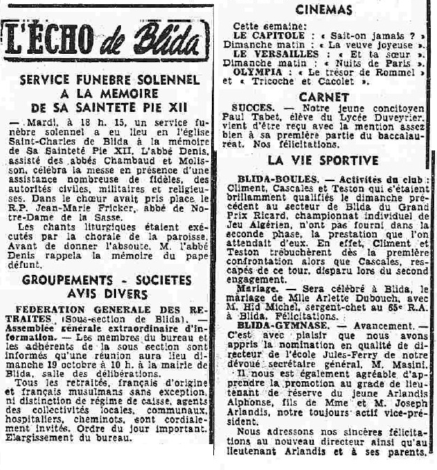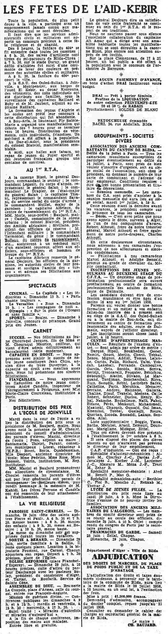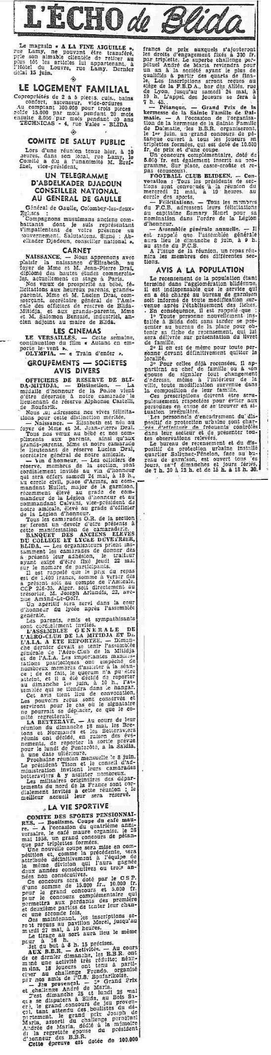 ANNEE 1958: Echos de BLIDA et Dépêche Quotidienne |