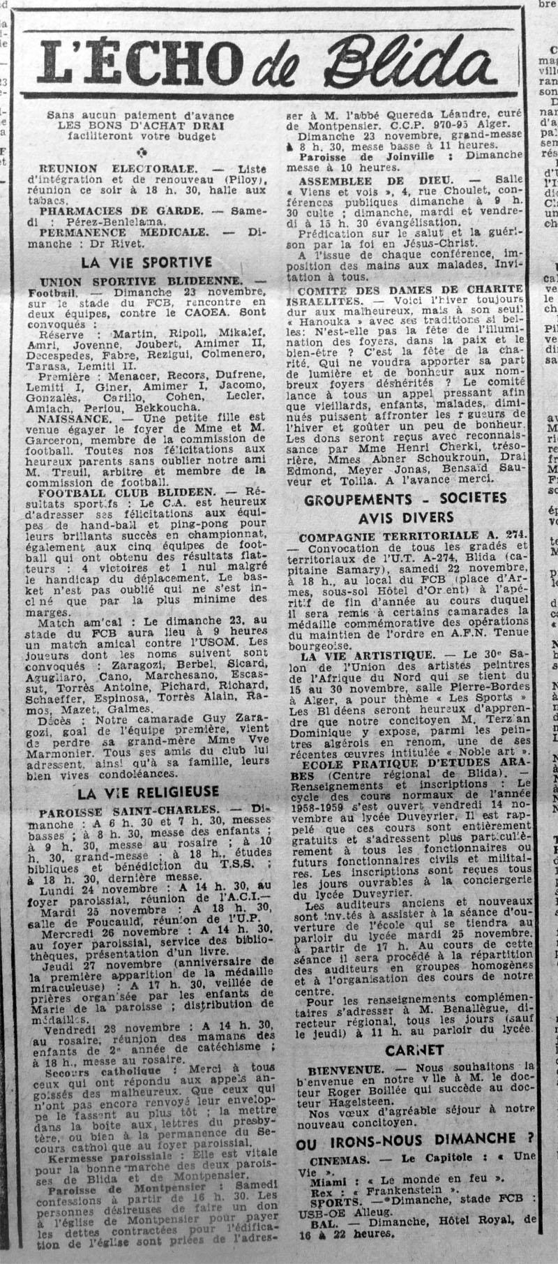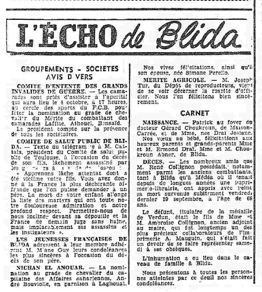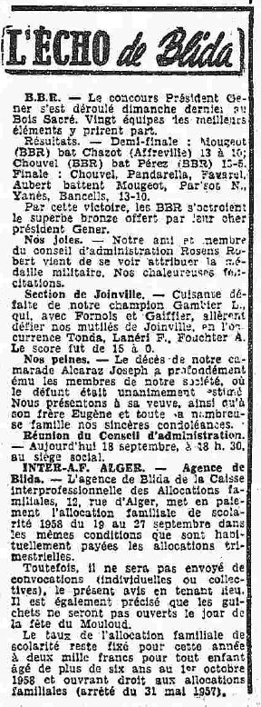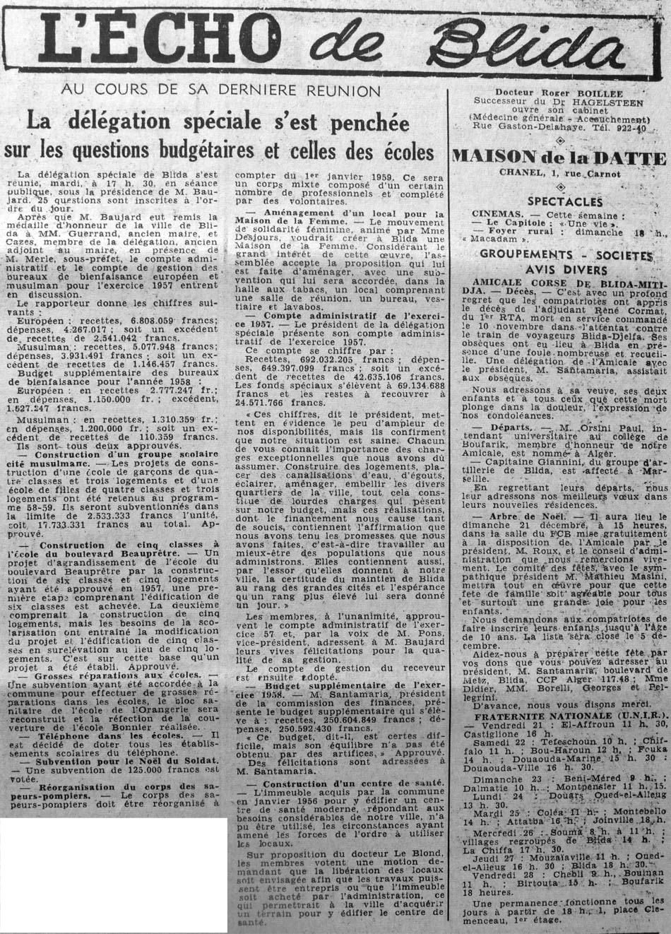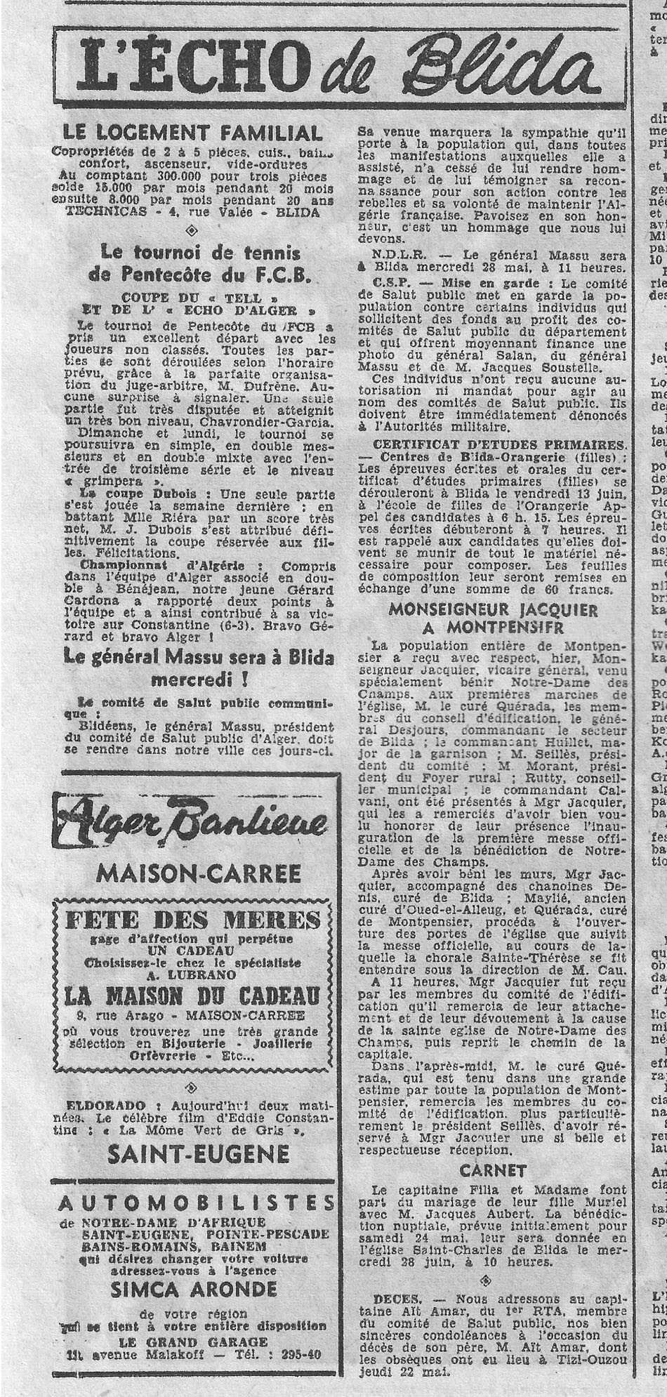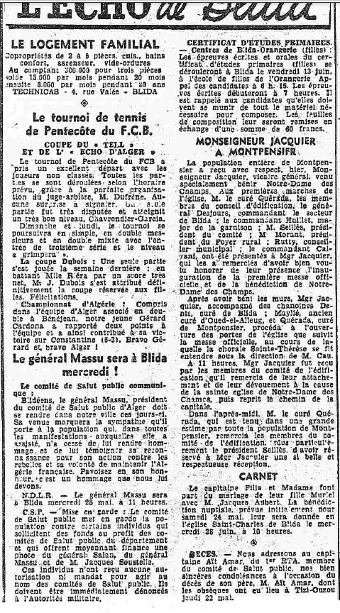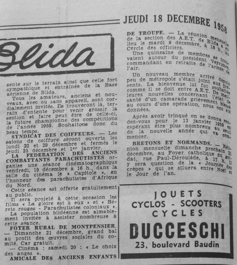 ANNEE 1958: Echos de BLIDA et Dépêche Quotidienne |