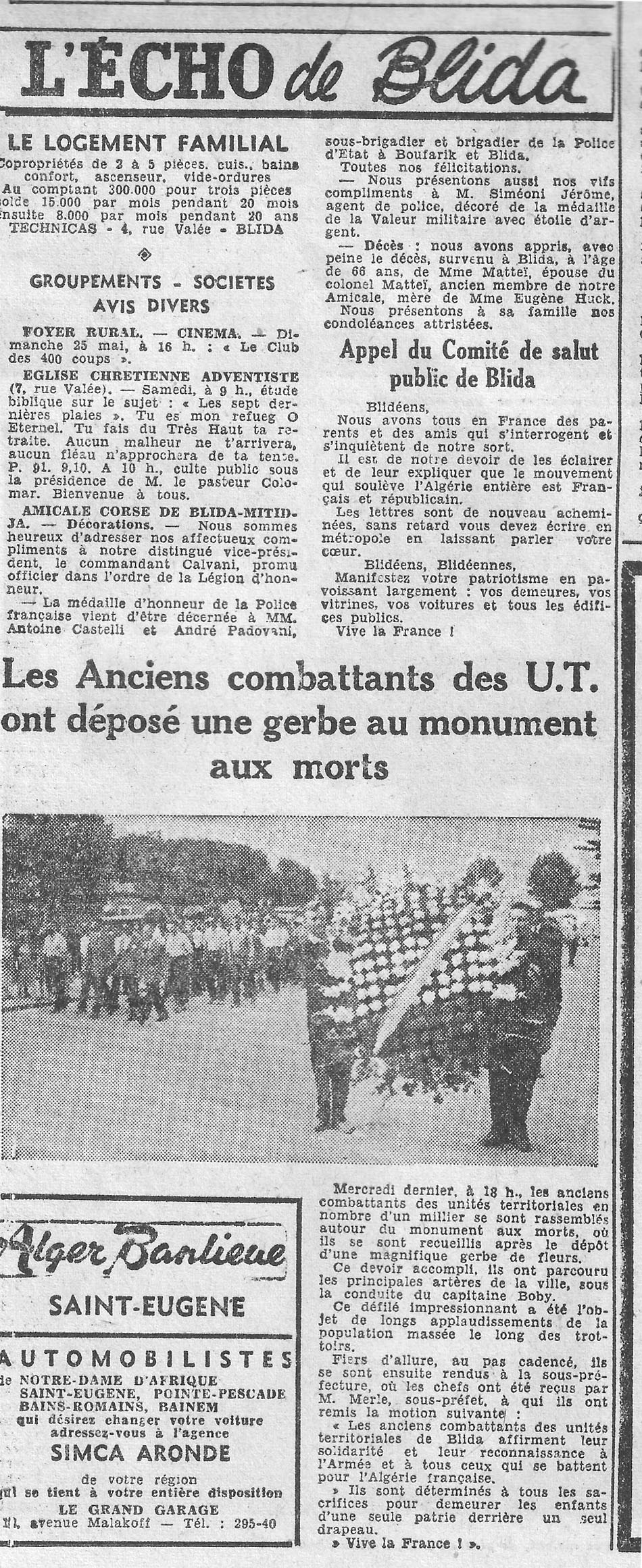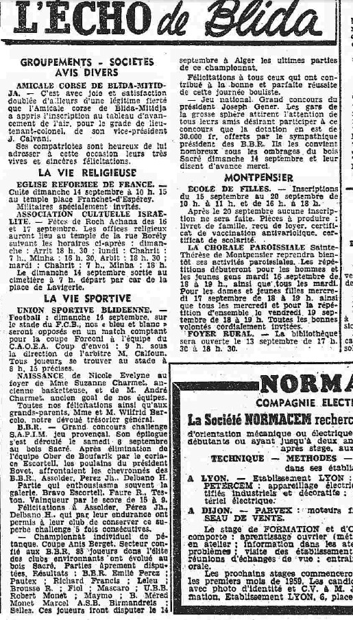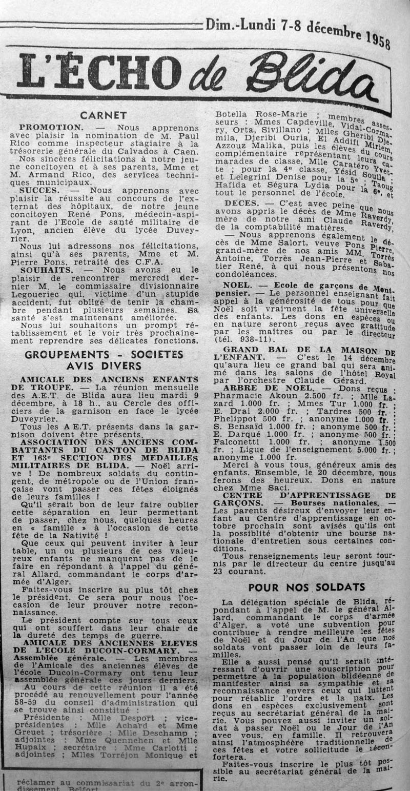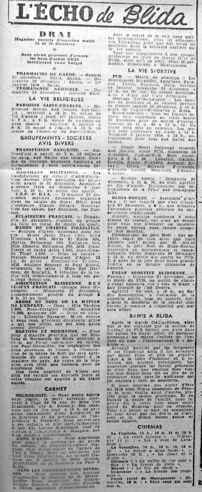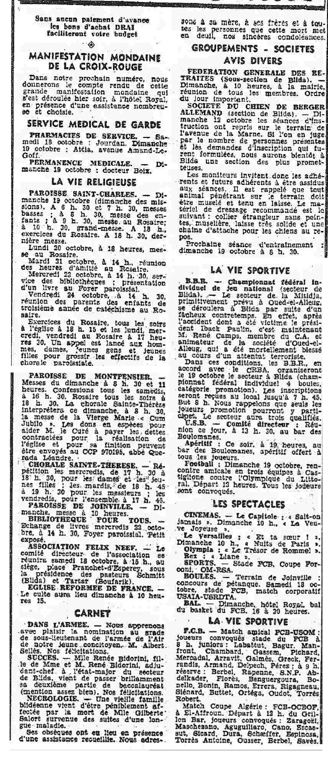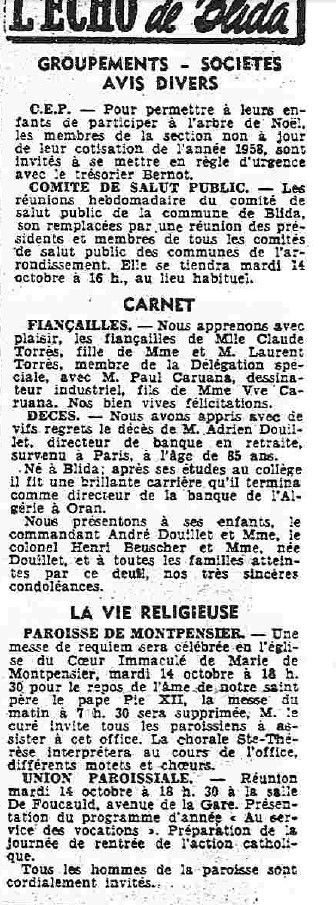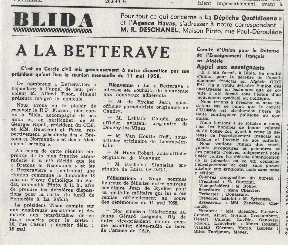 ANNEE 1958: Echos de BLIDA et Dépêche Quotidienne |