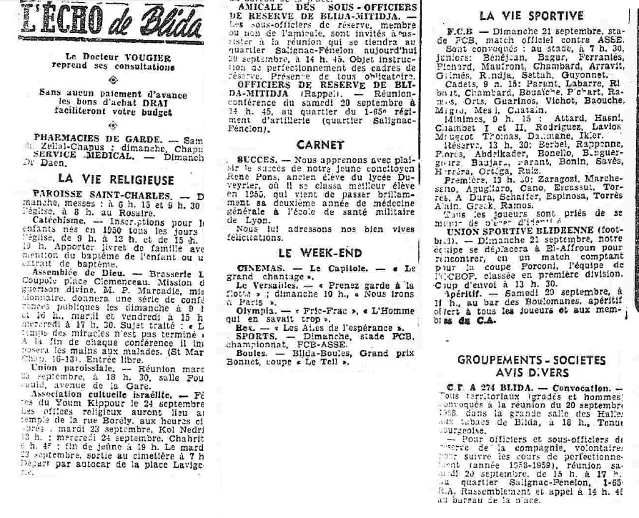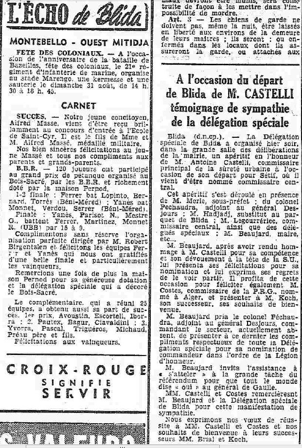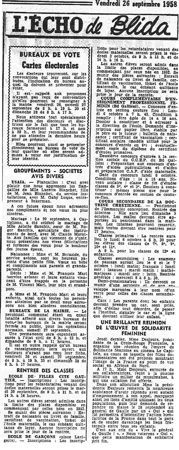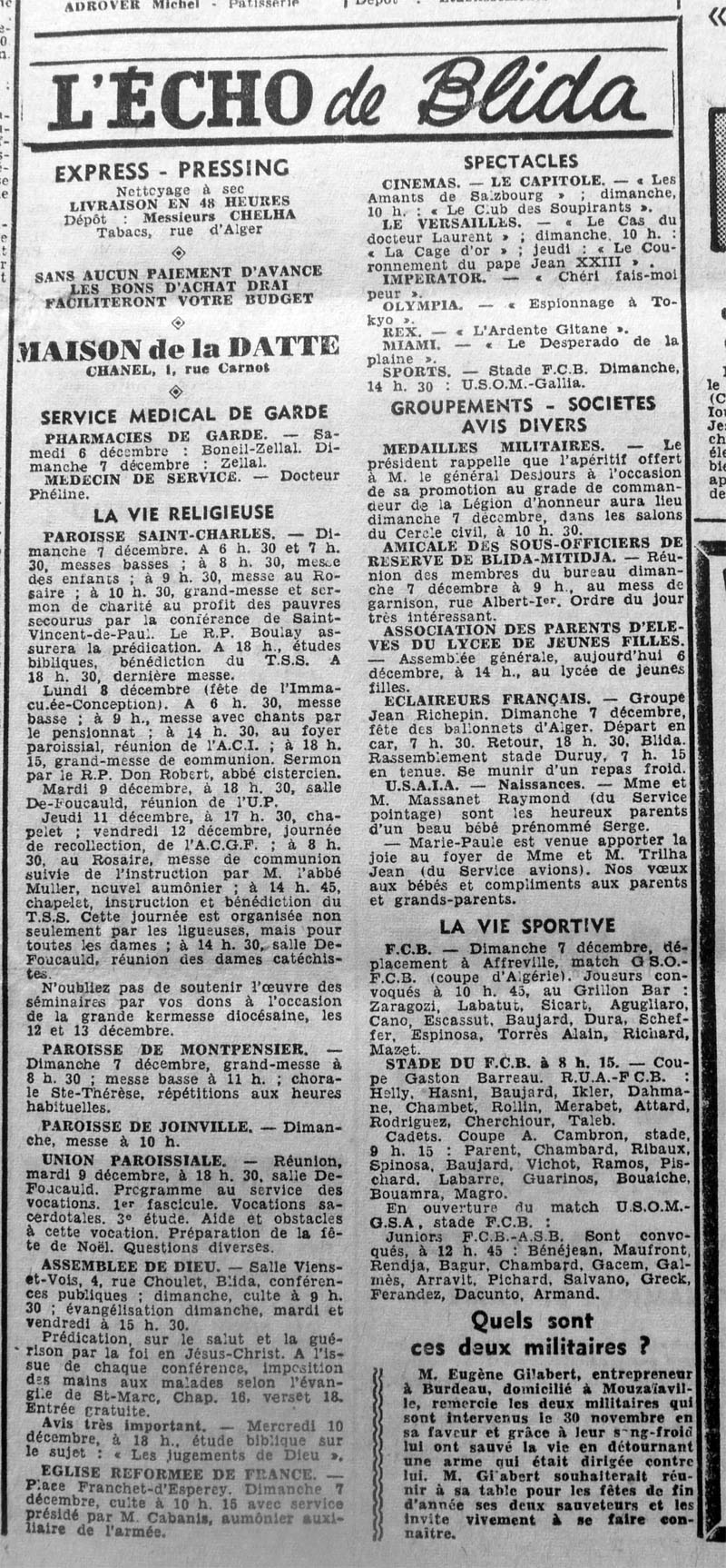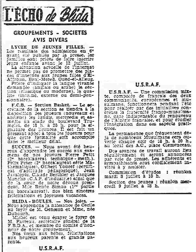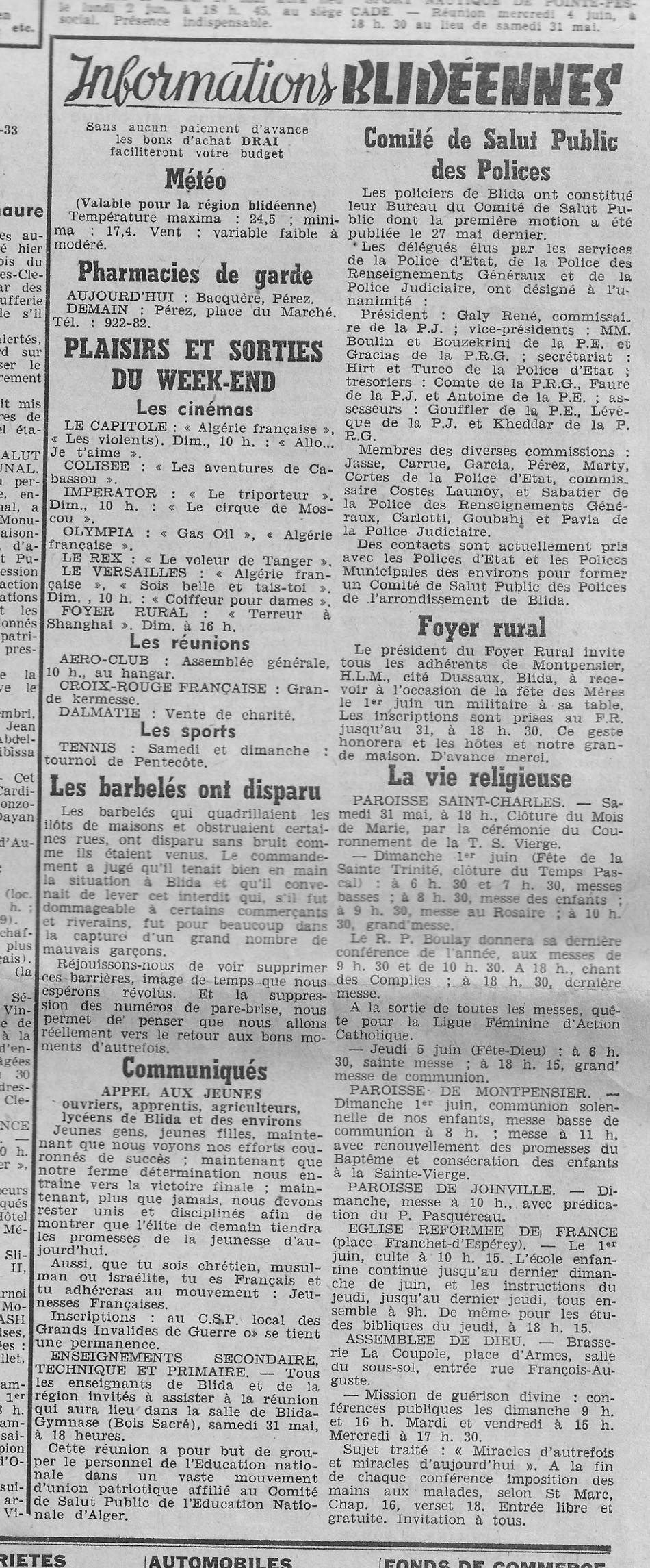 ANNEE 1958: Echos de BLIDA et Dépêche Quotidienne |