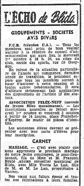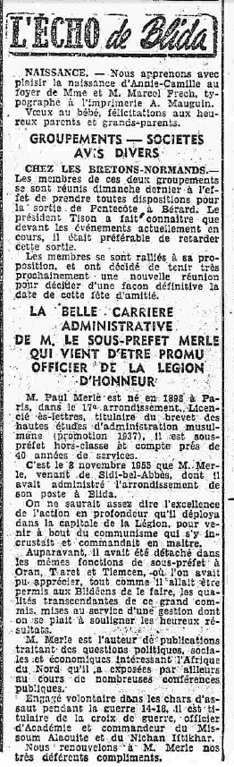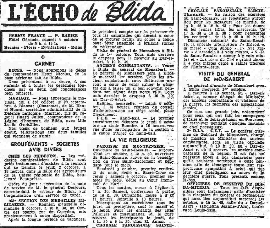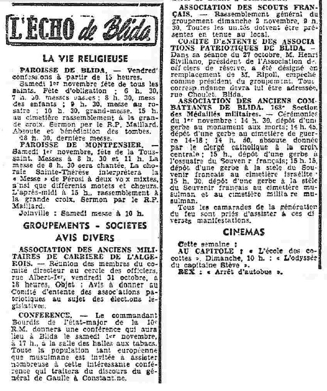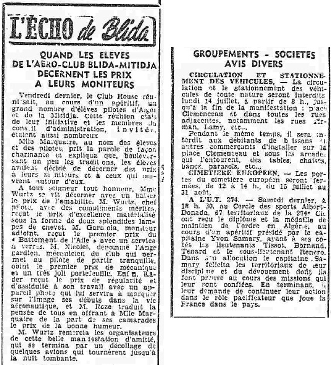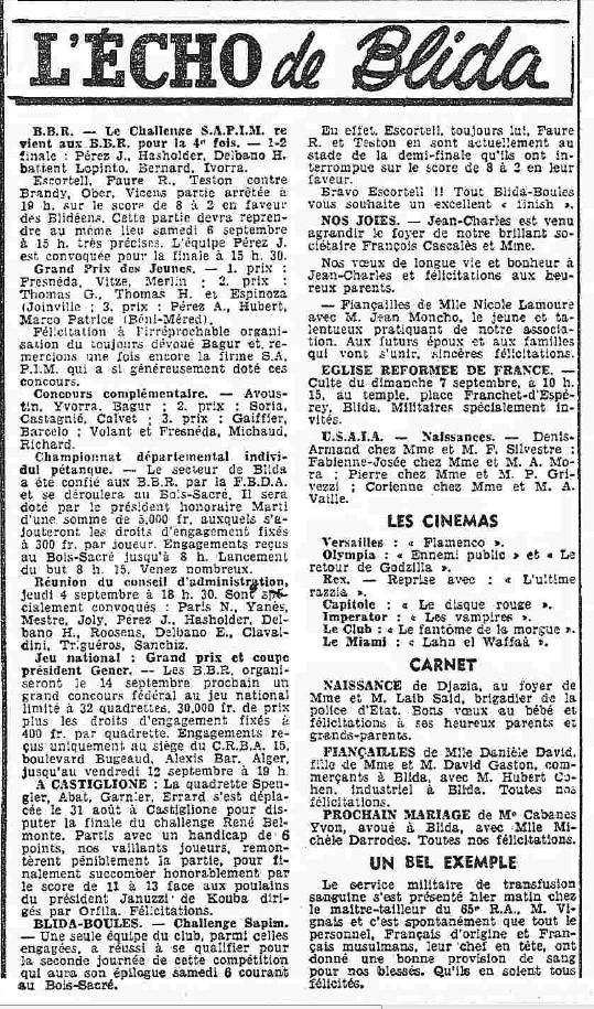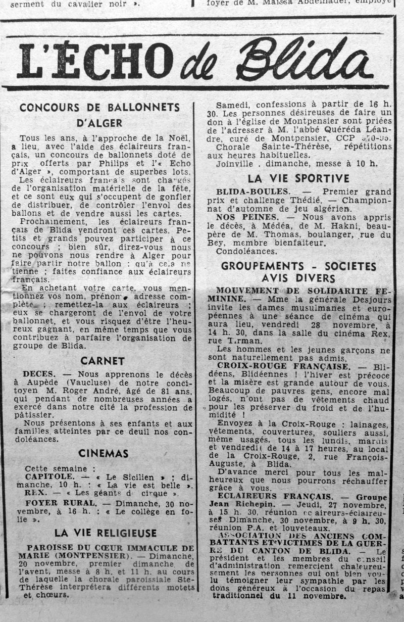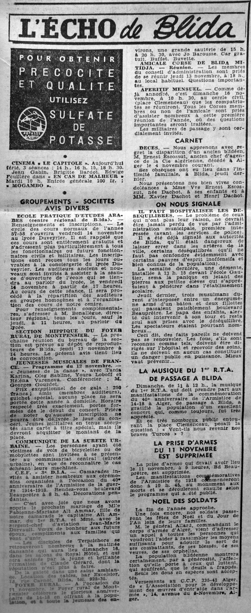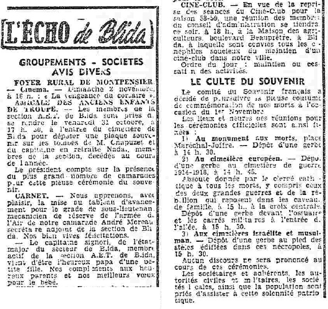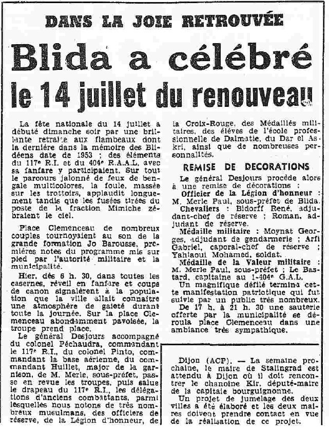 ANNEE 1958: Echos de BLIDA et Dépêche Quotidienne |
