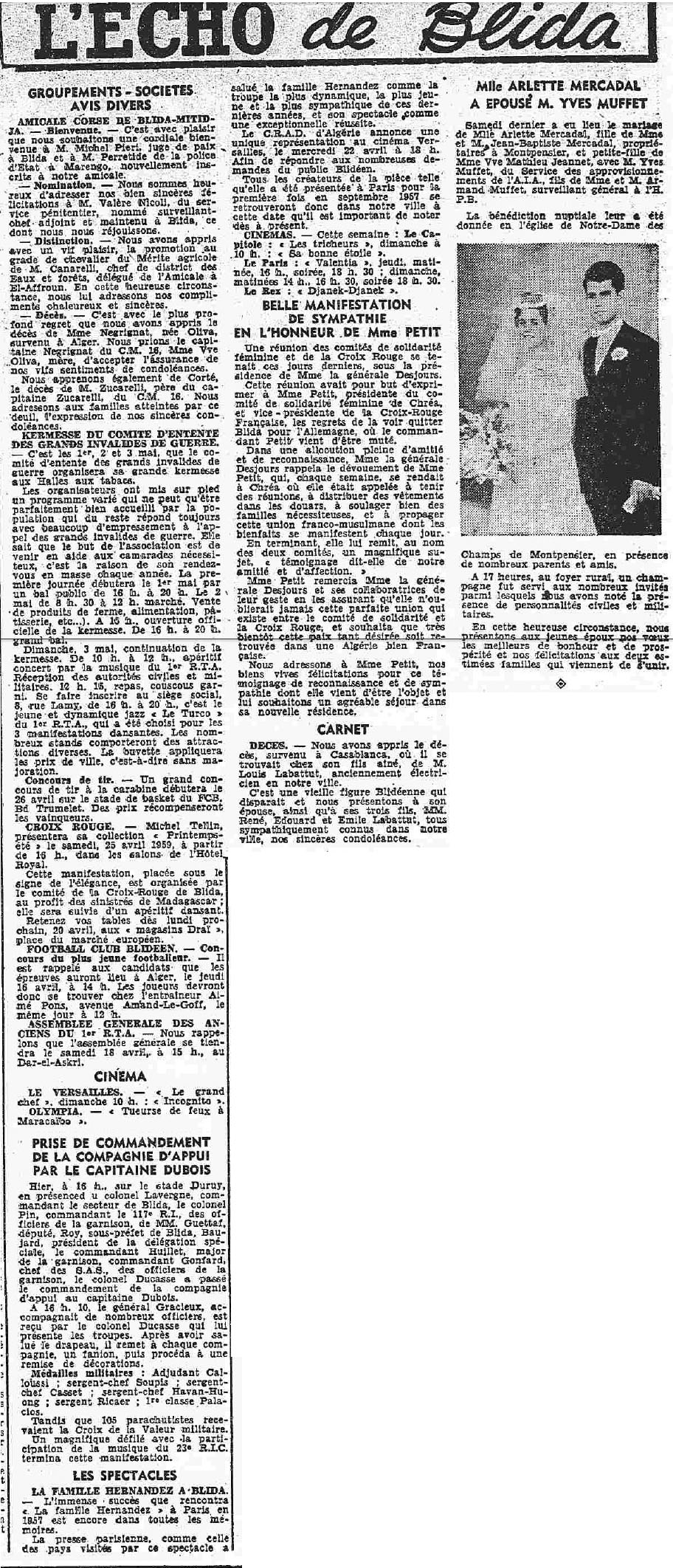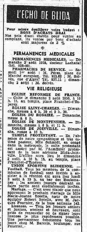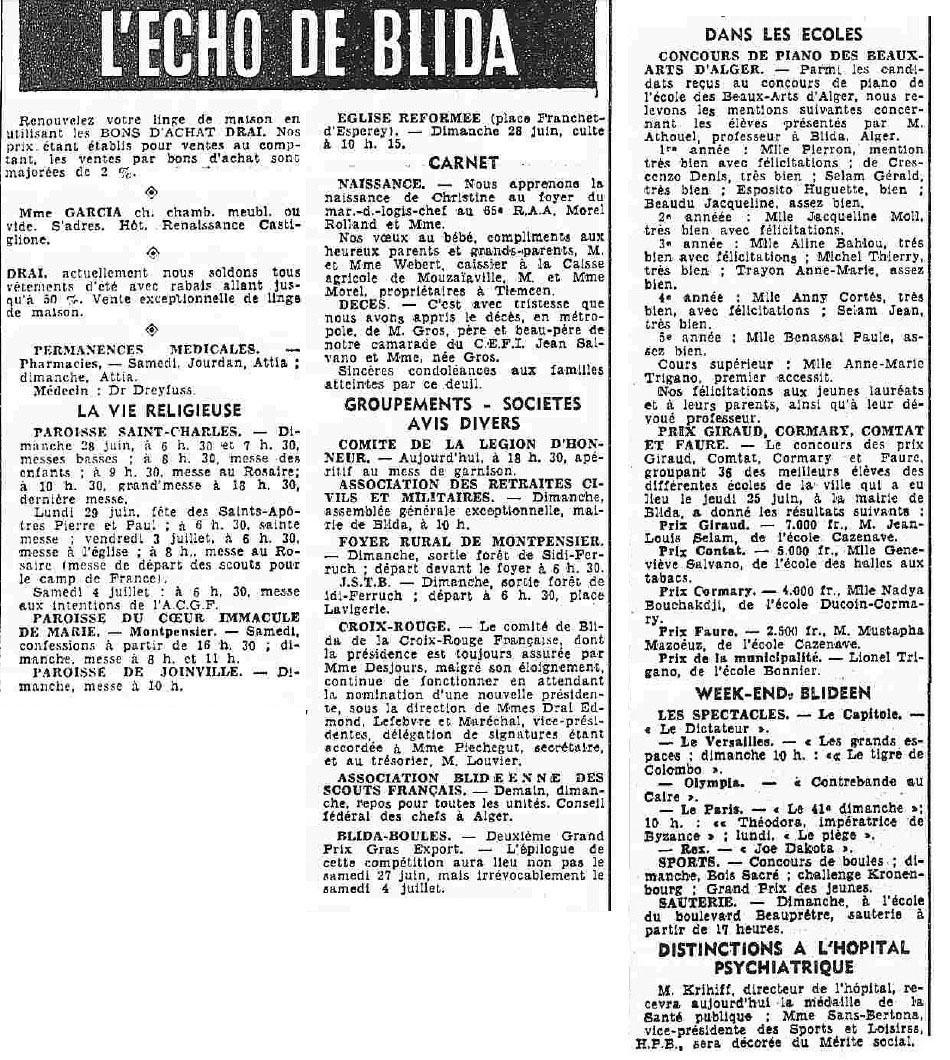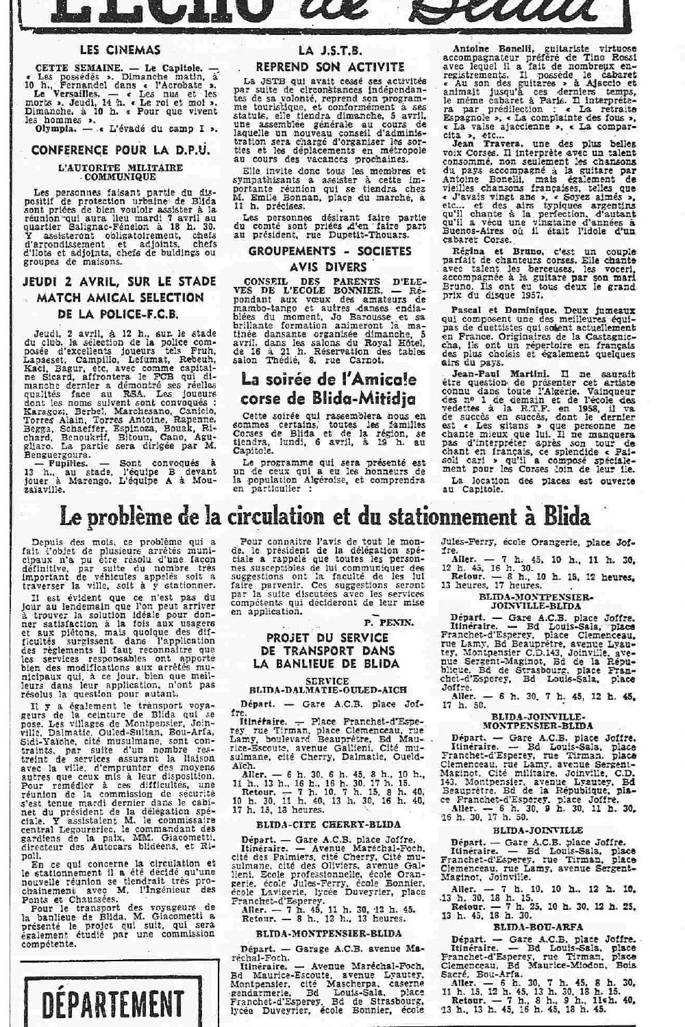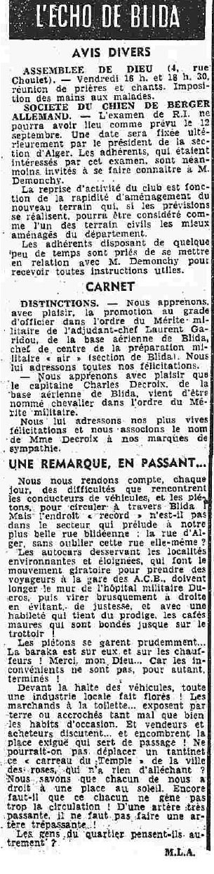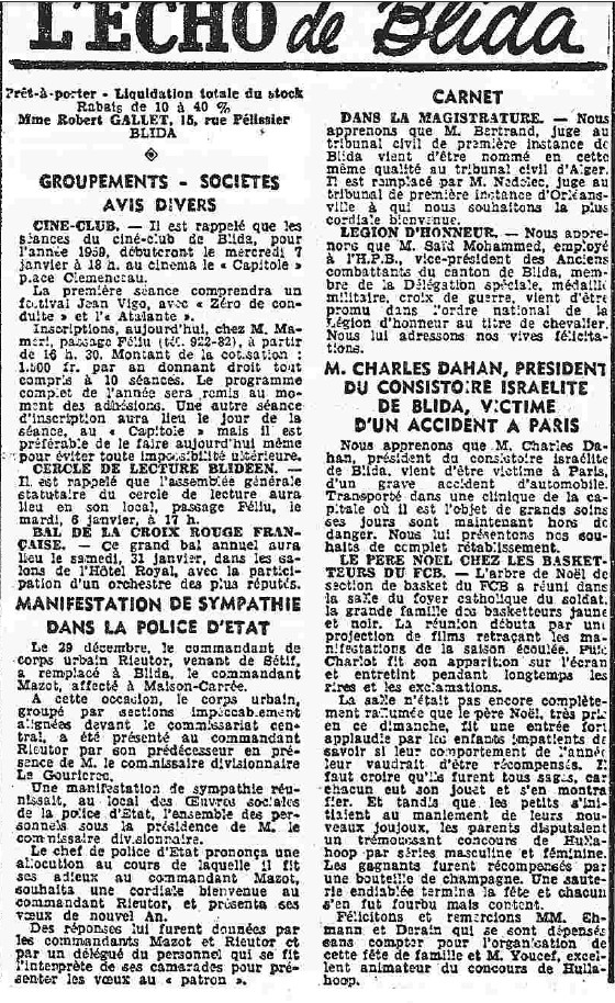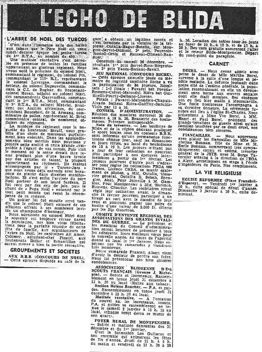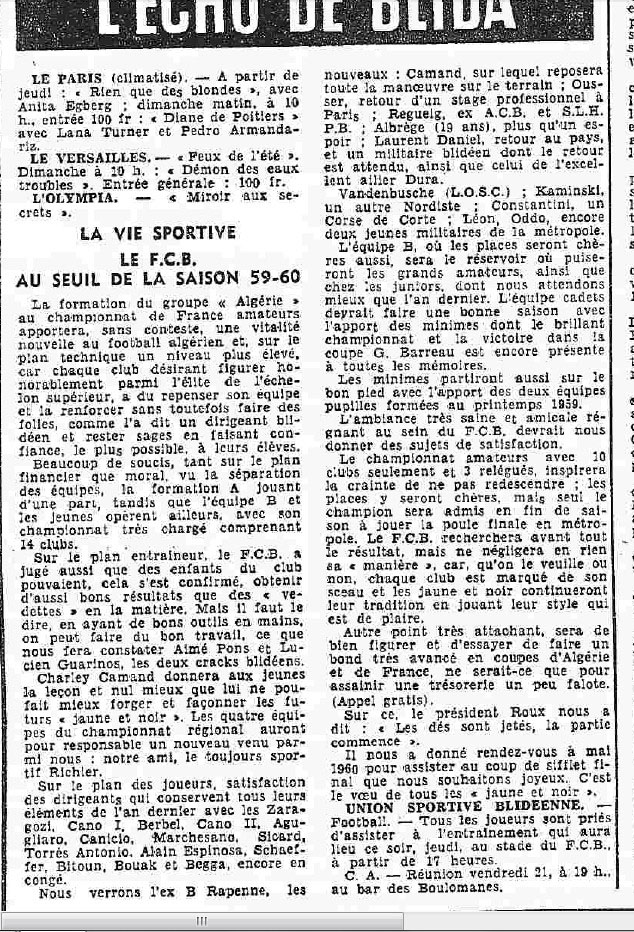 ANNEE 1959: Echos de BLIDA tirés de l'ECHO d'ALGER