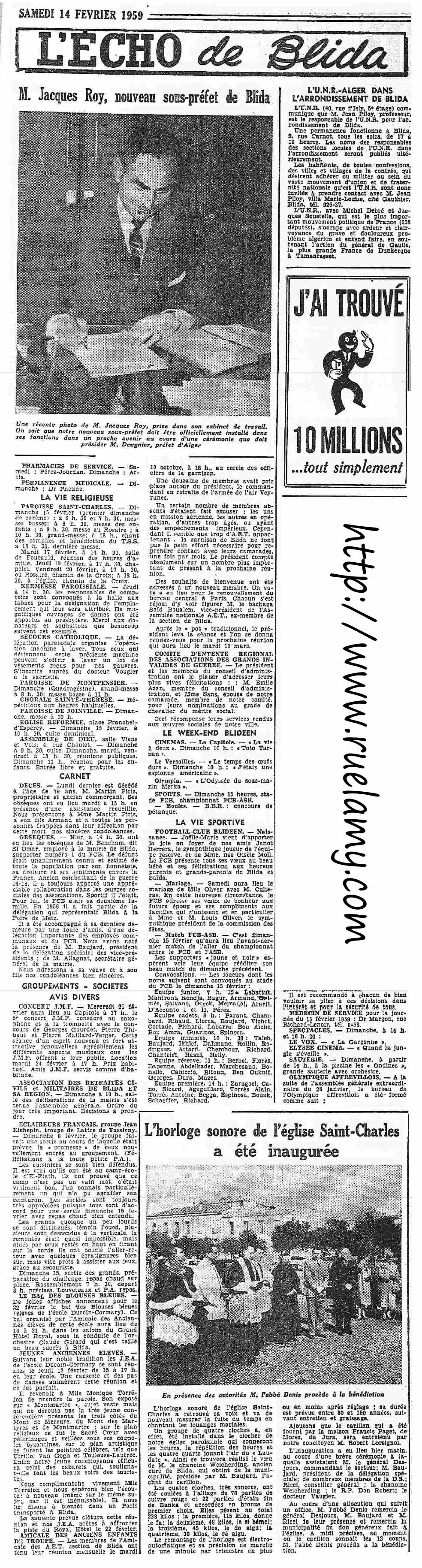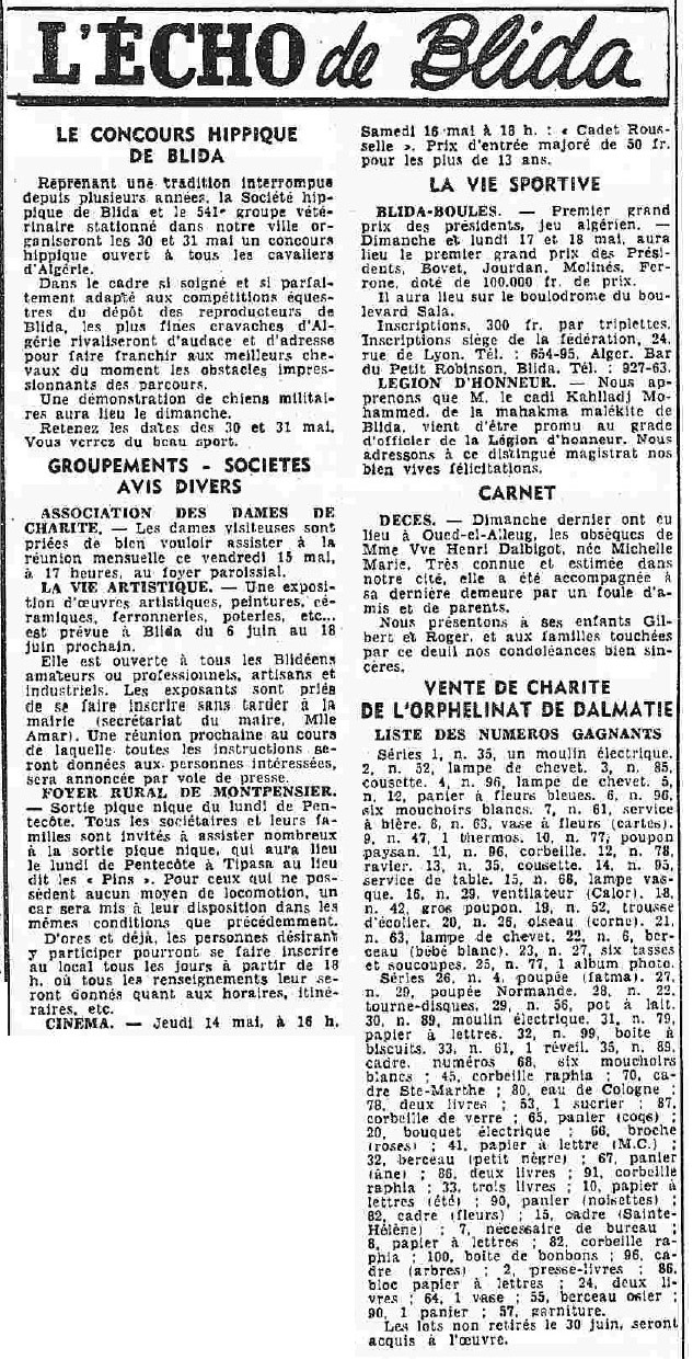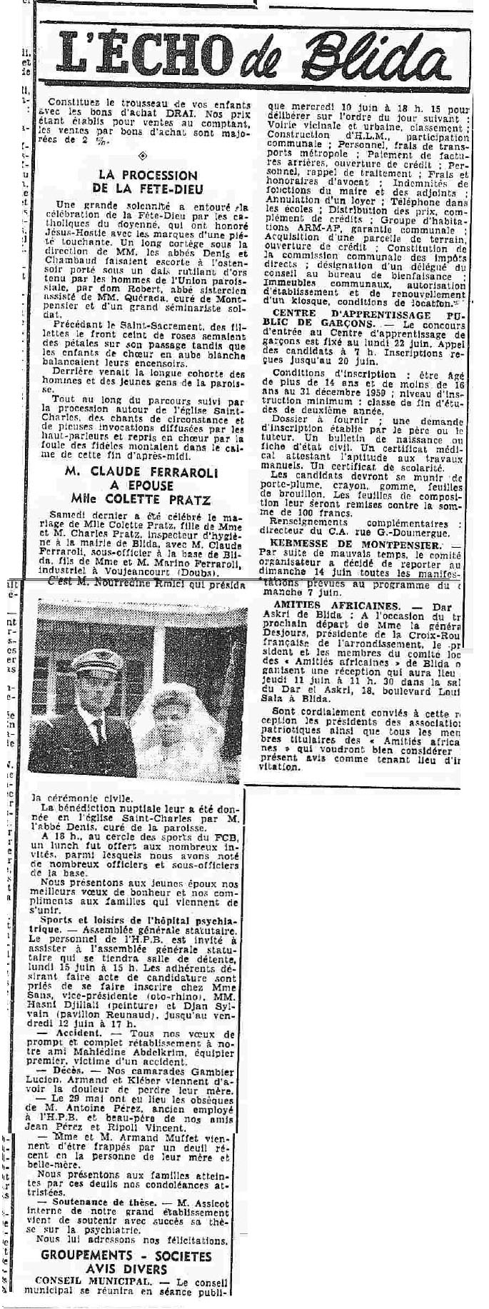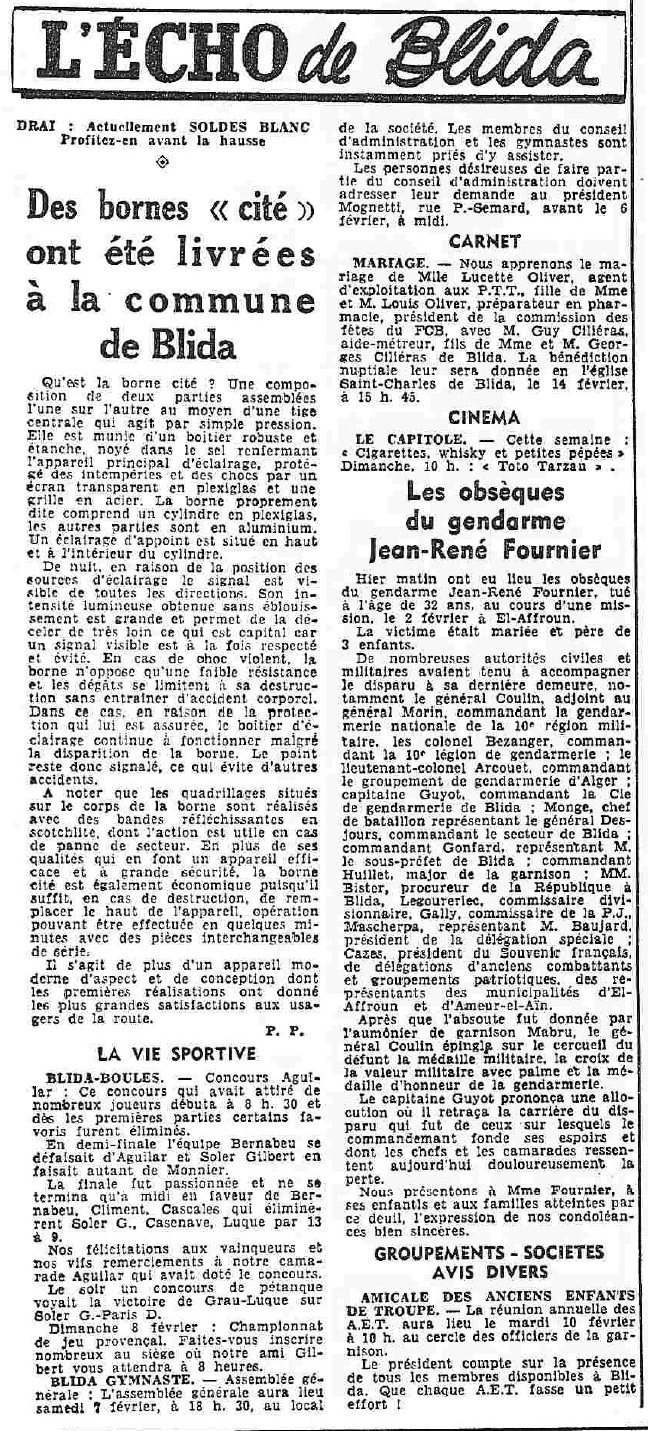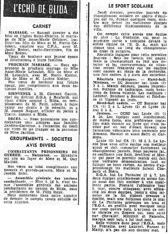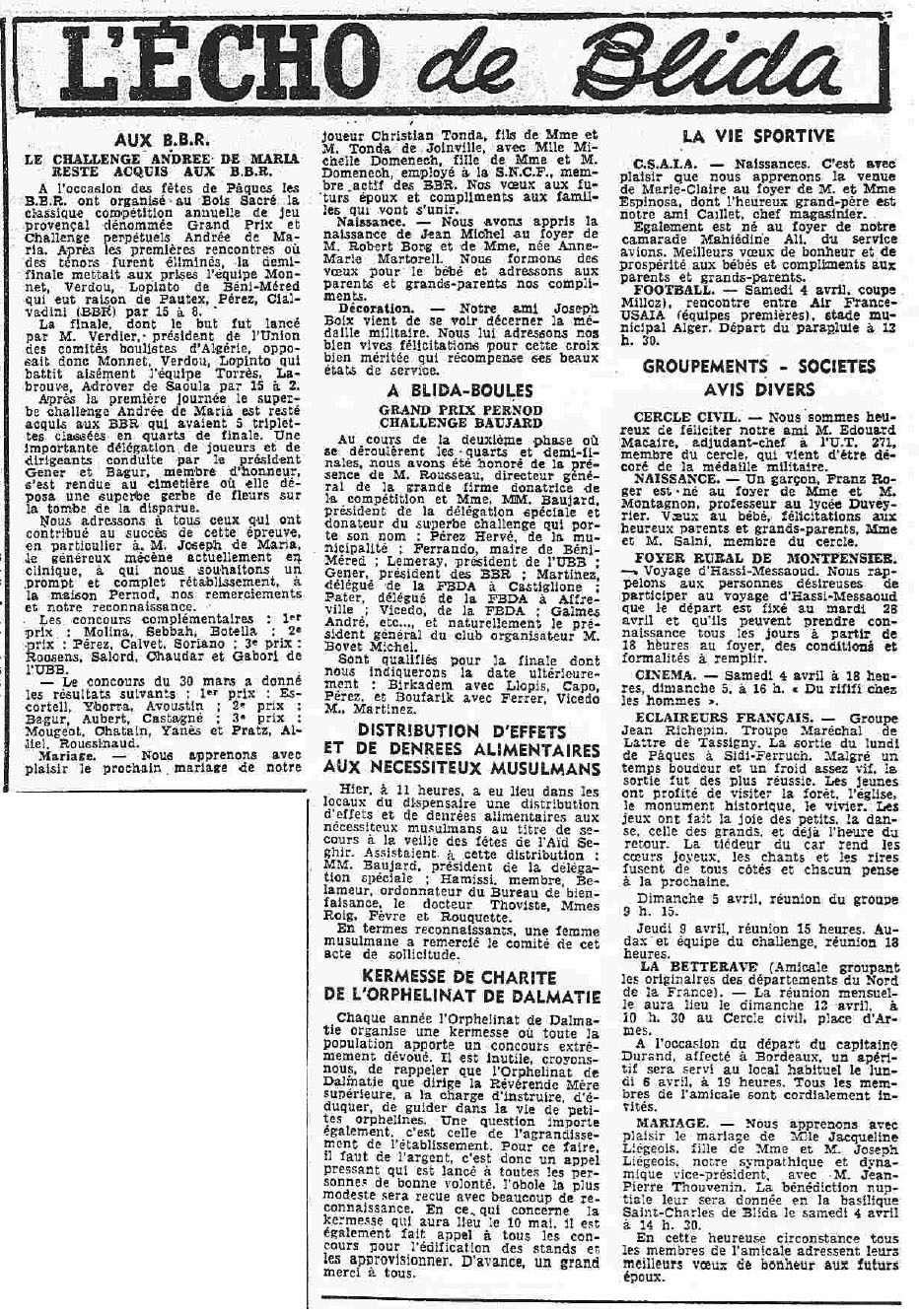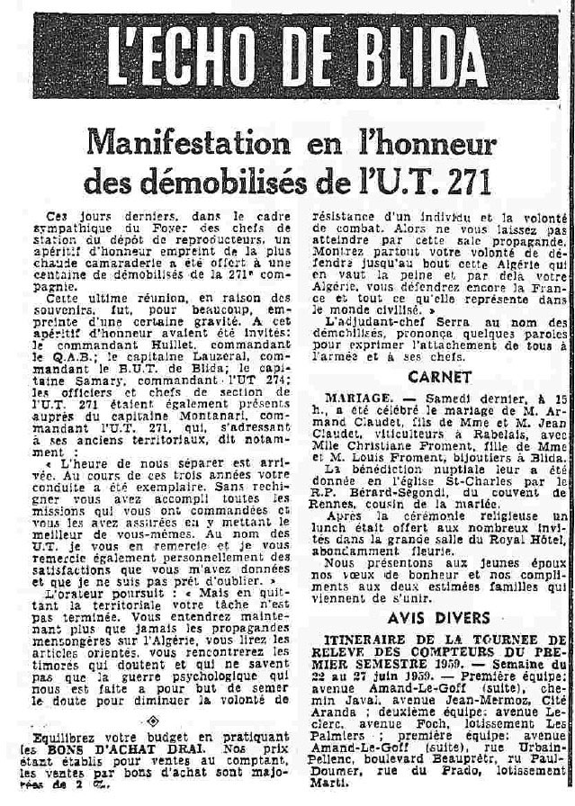 ANNEE 1959: Echos de BLIDA tirés de l'ECHO d'ALGER