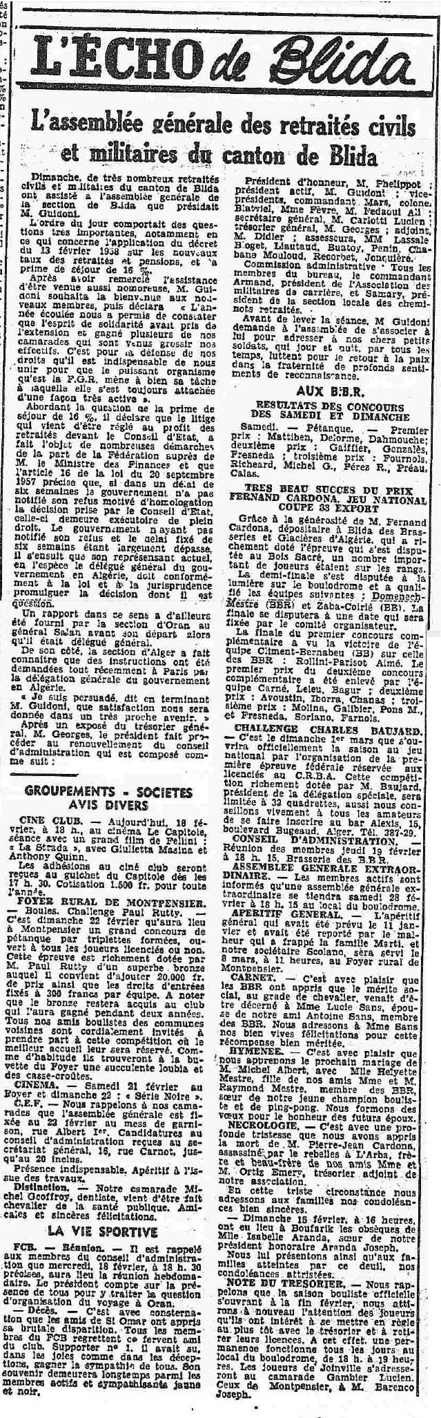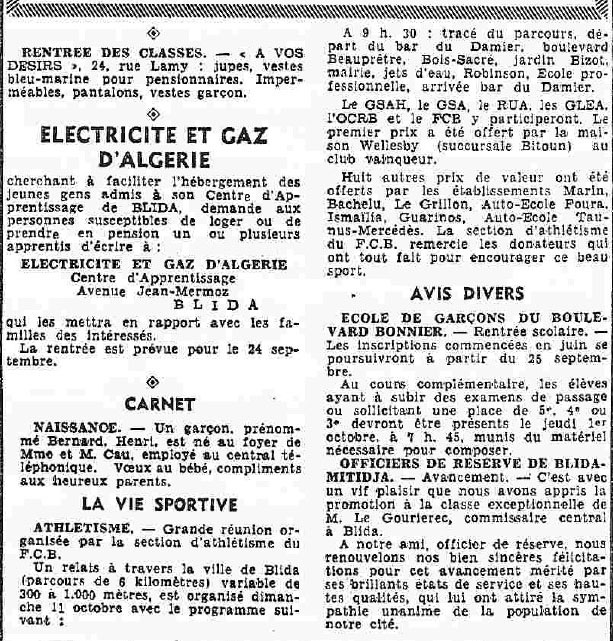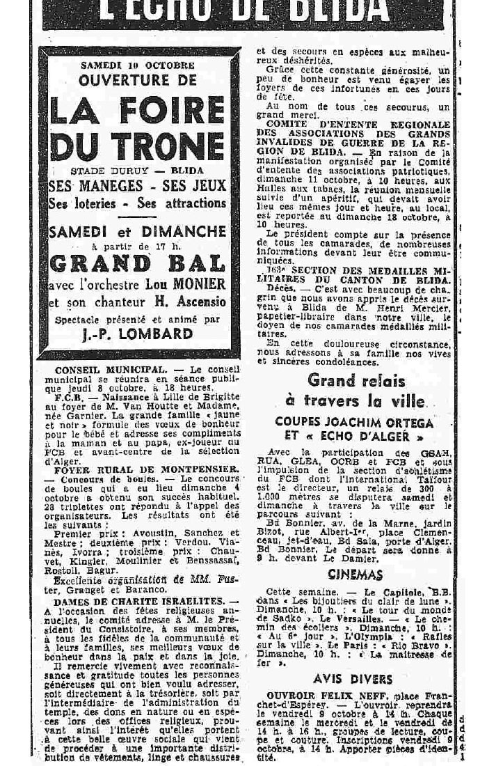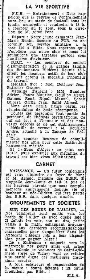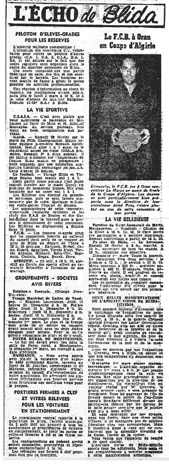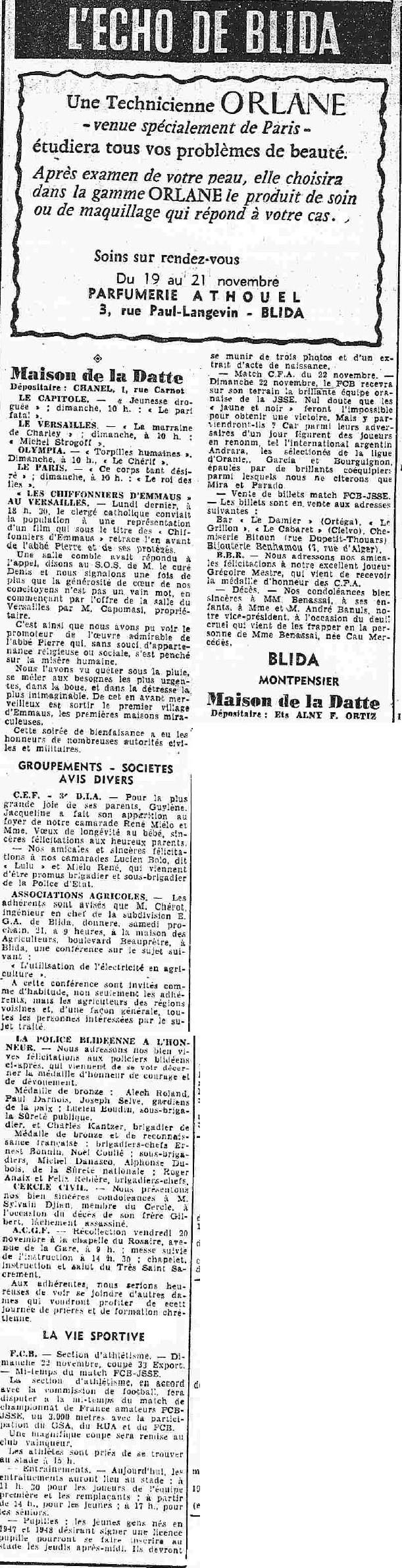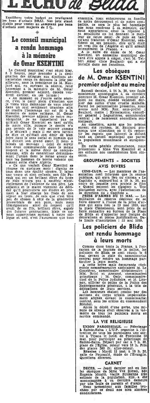ANNEE 1959: Echos de BLIDA tirés de l'ECHO d'ALGER