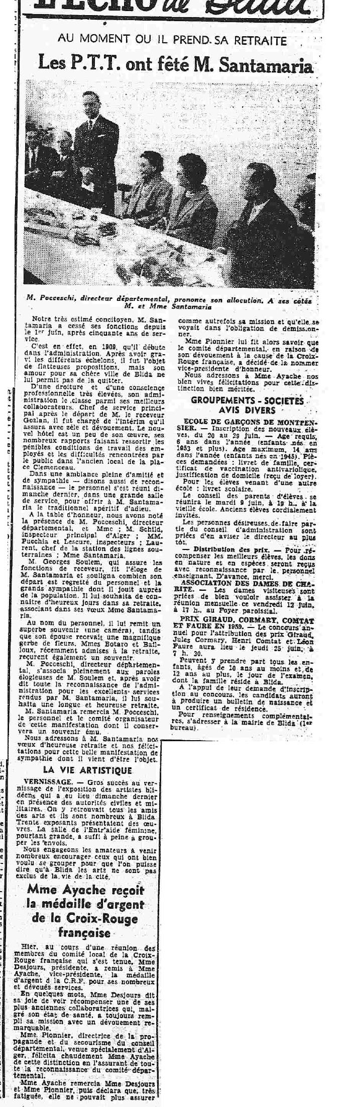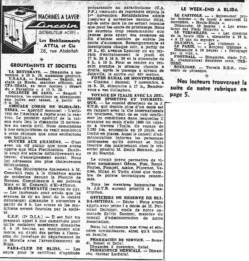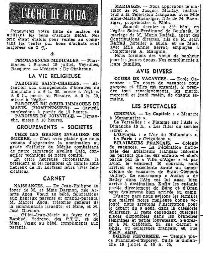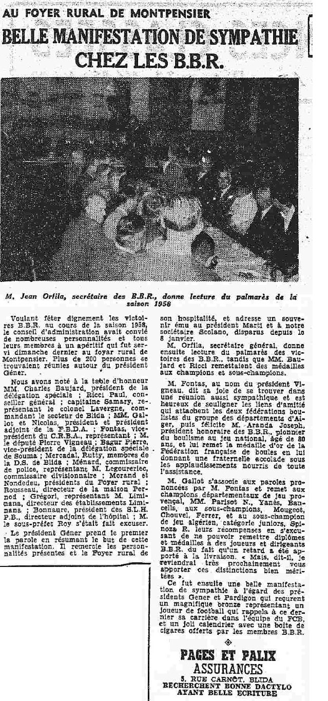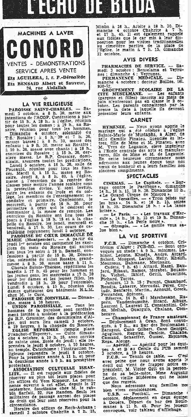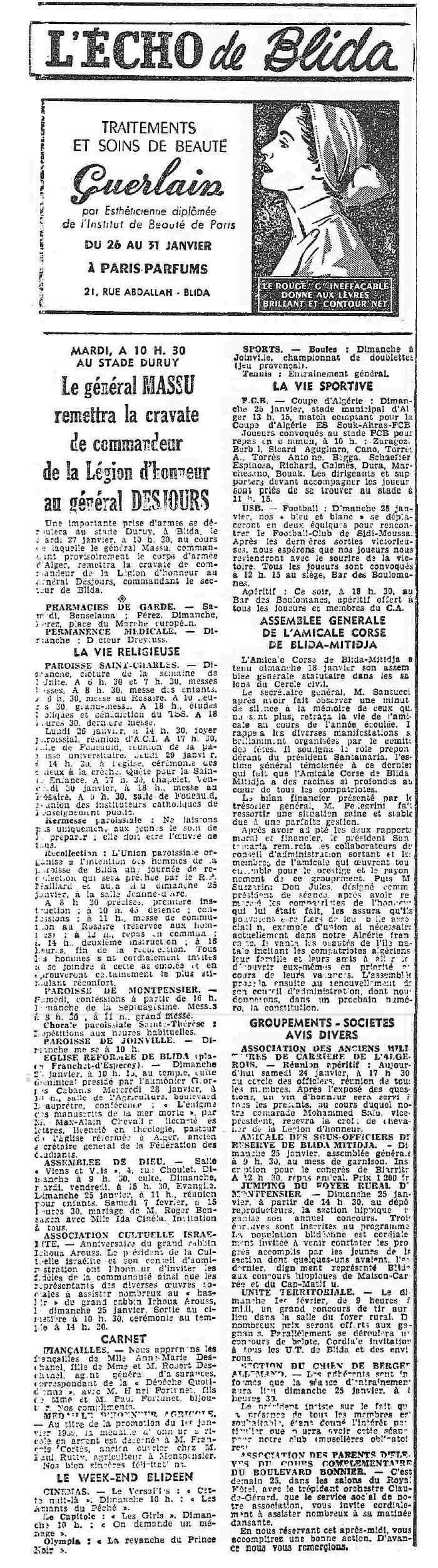 ANNEE 1959: Echos de BLIDA tirés de l'ECHO d'ALGER