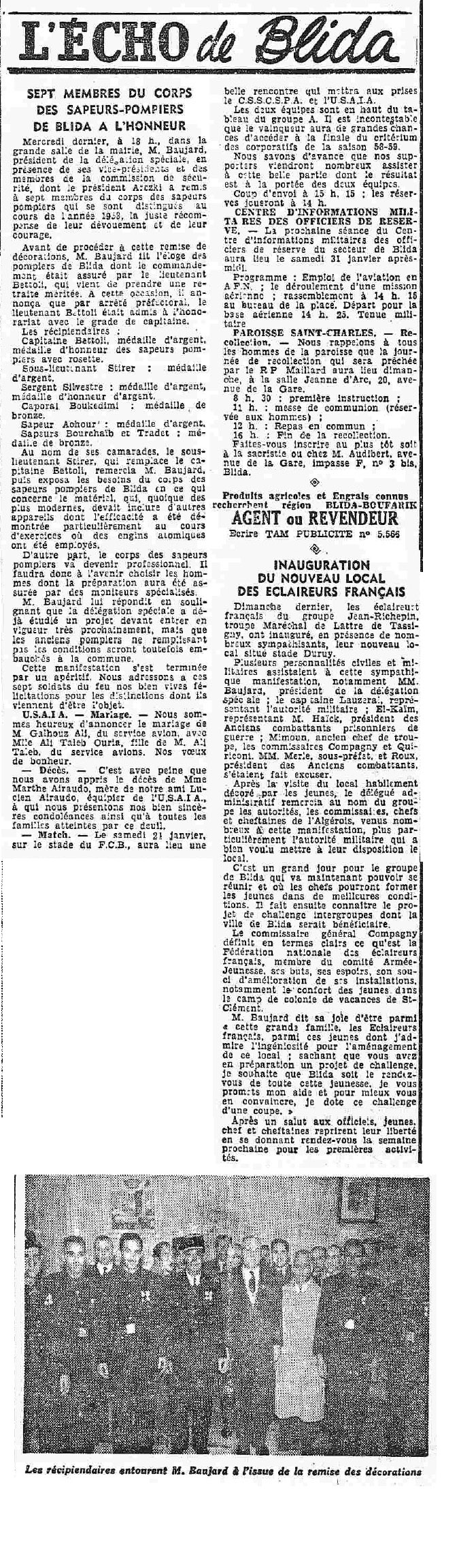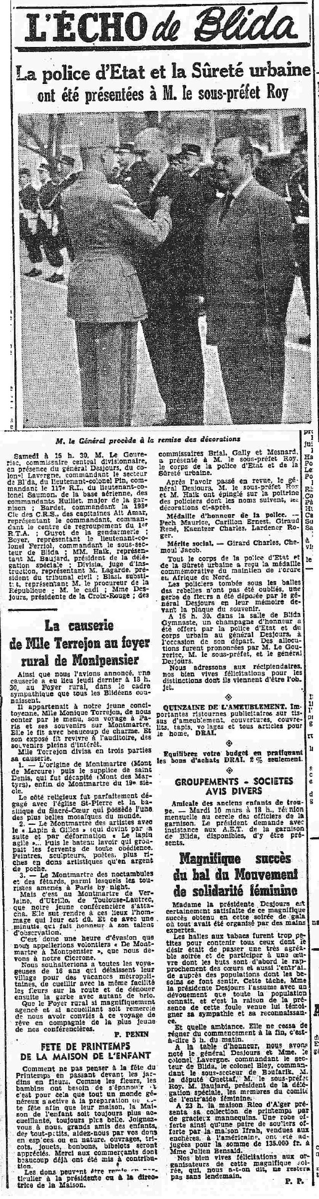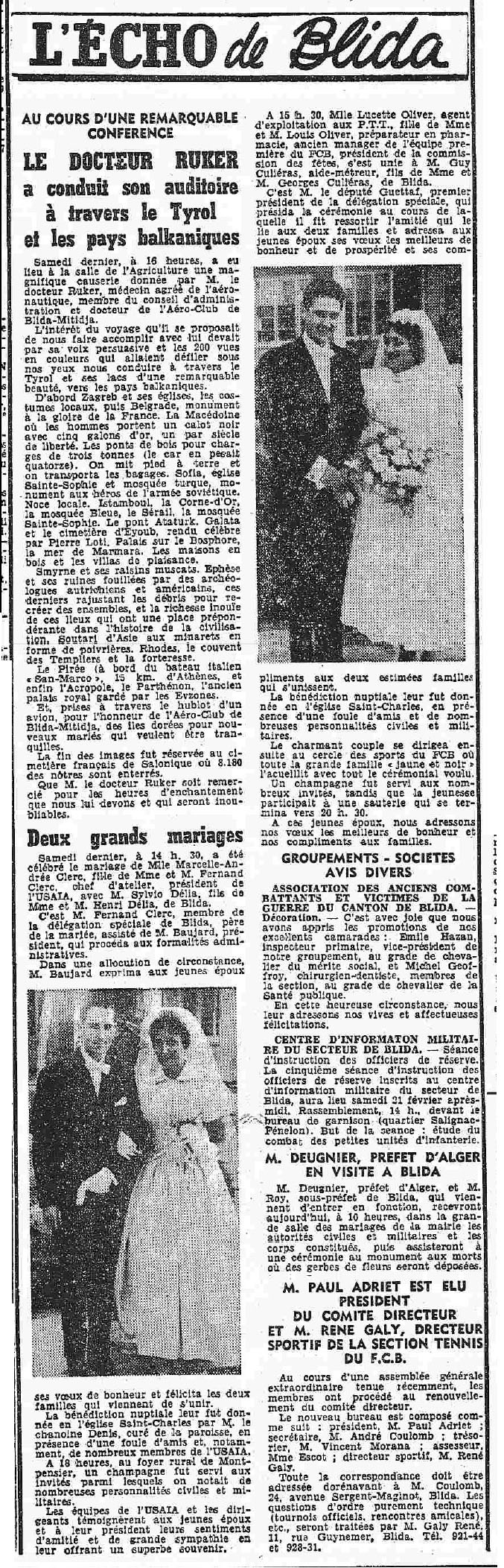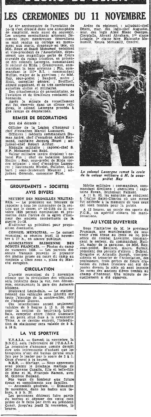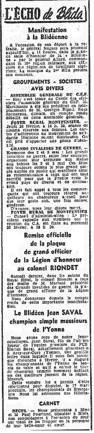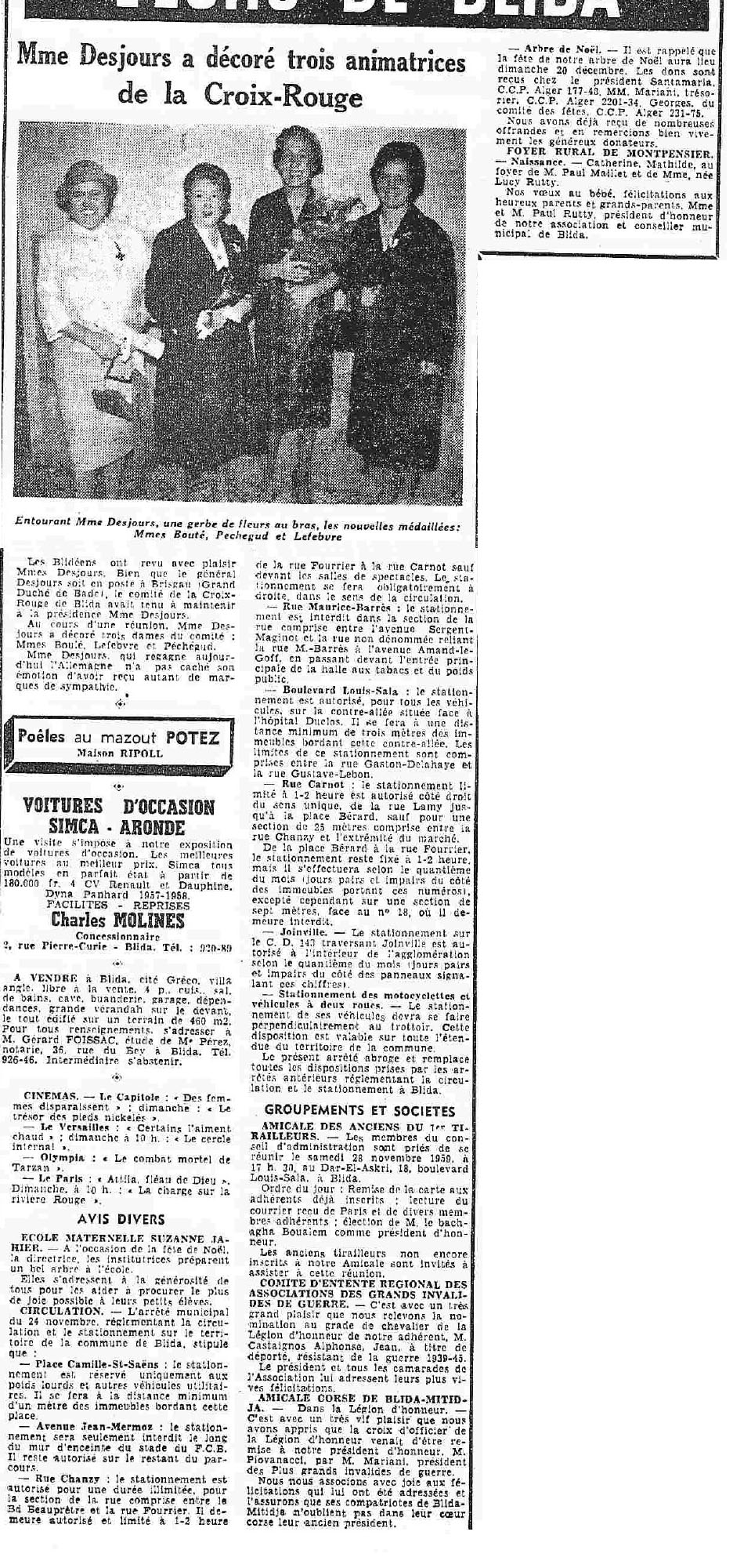 ANNEE 1959: Echos de BLIDA tirés de l'ECHO d'ALGER