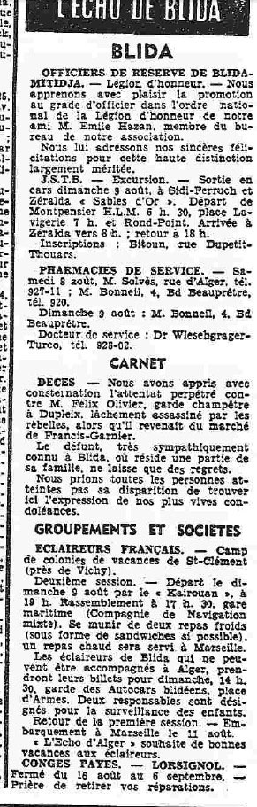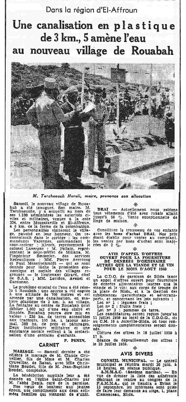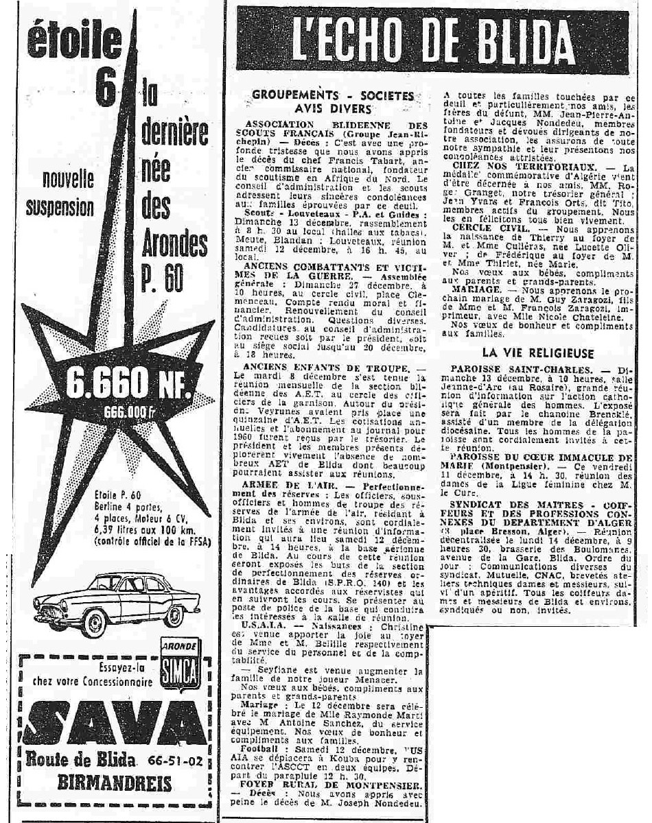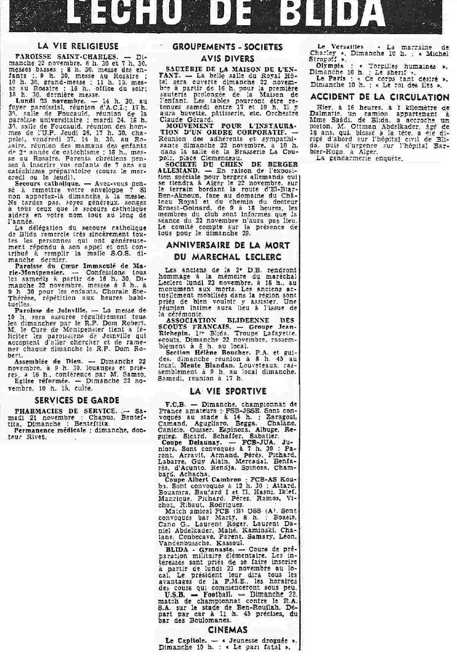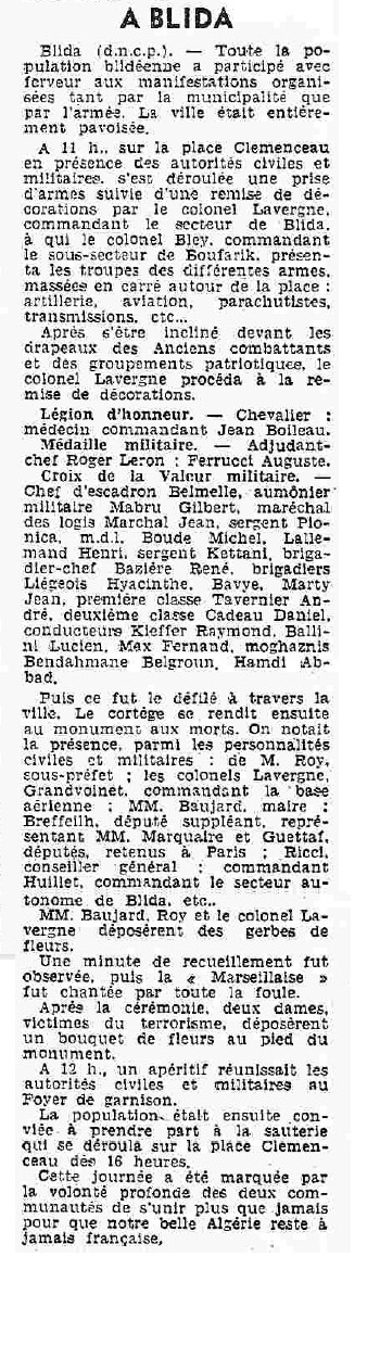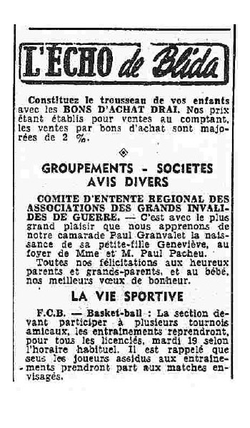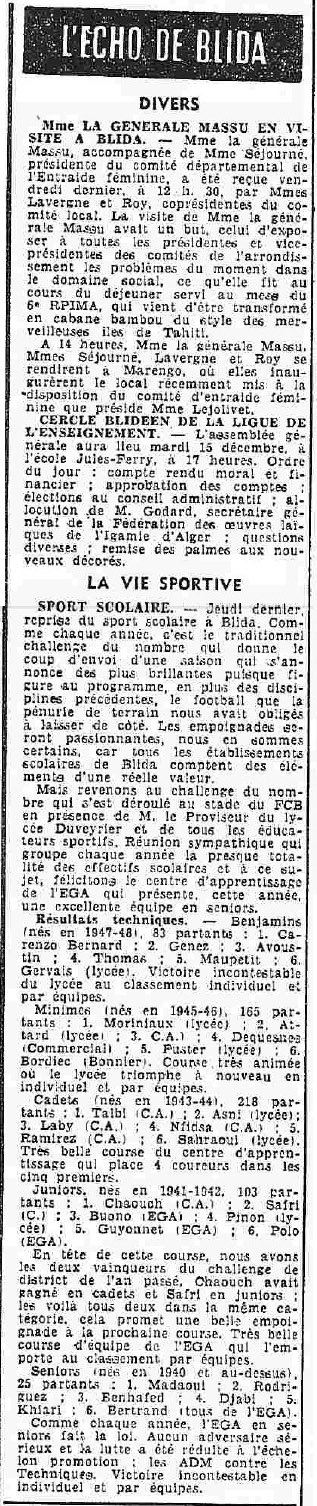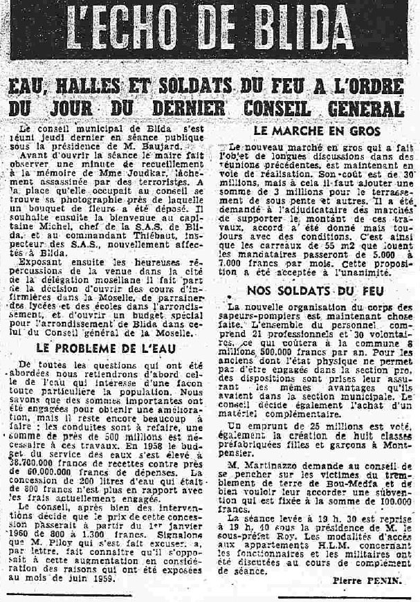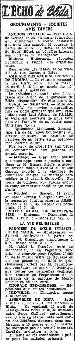 ANNEE 1959: Echos de BLIDA tirés de l'ECHO d'ALGER