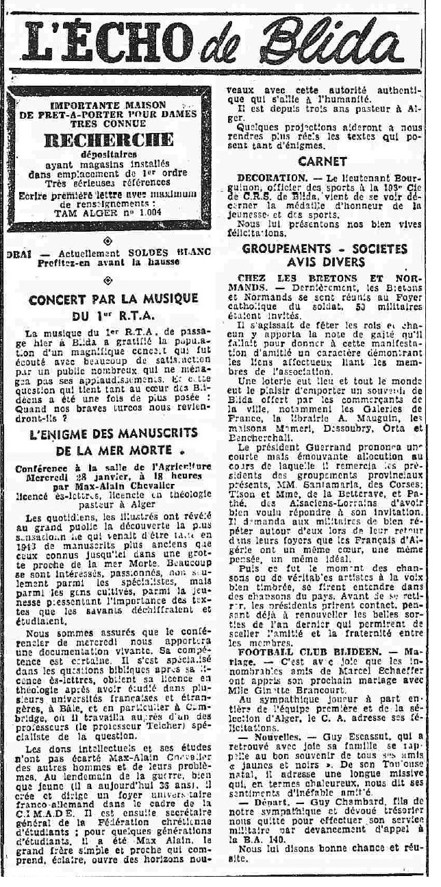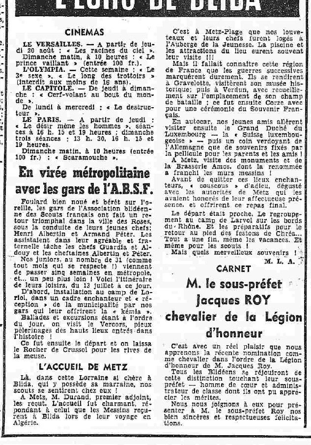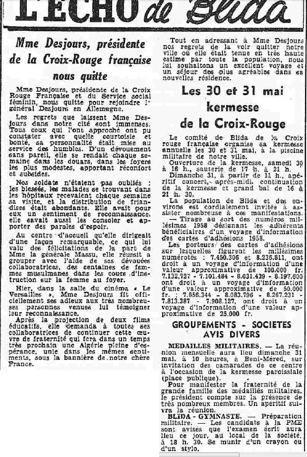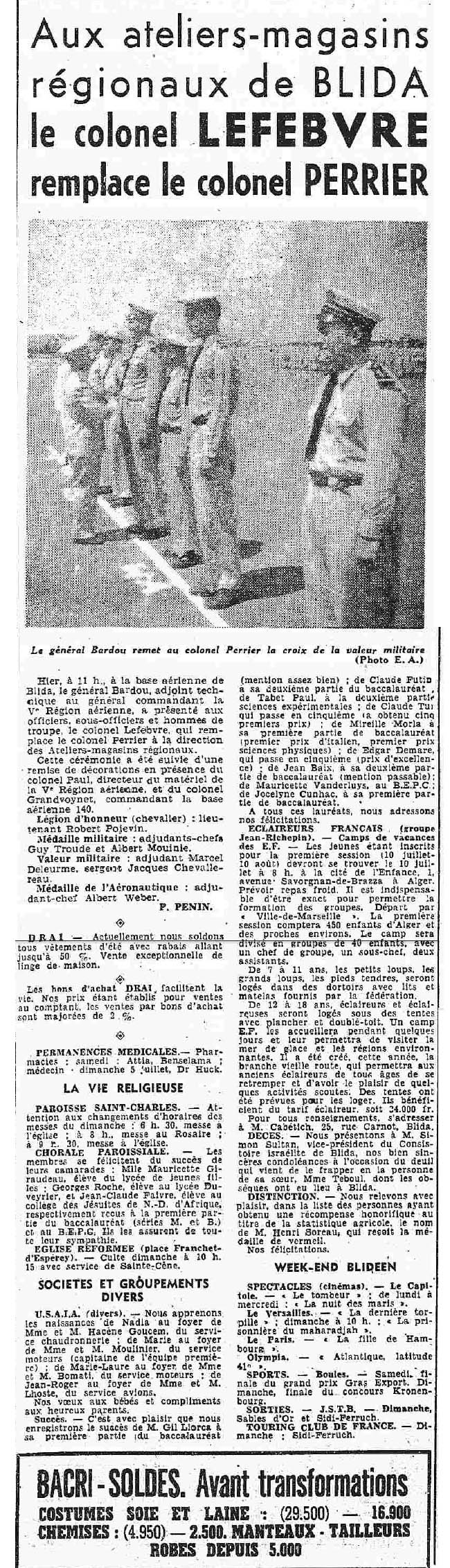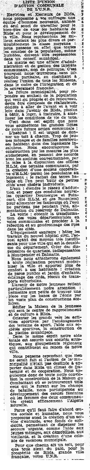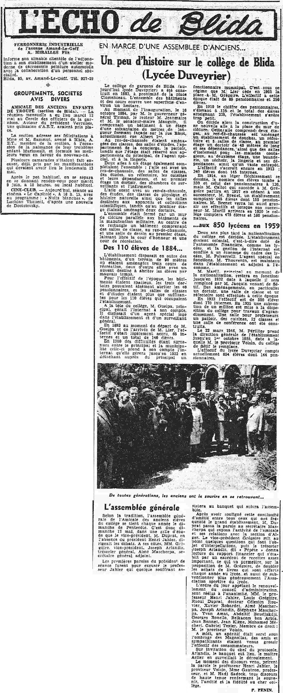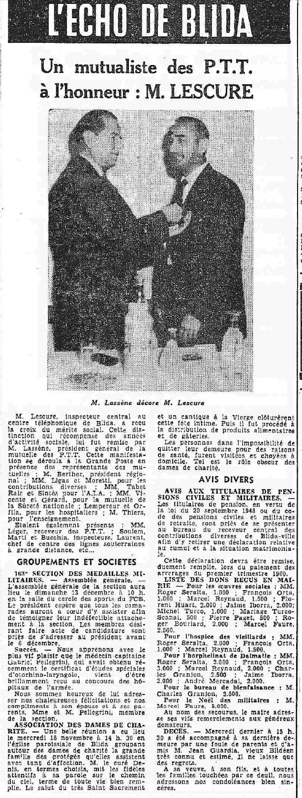 ANNEE 1959: Echos de BLIDA tirés de l'ECHO d'ALGER