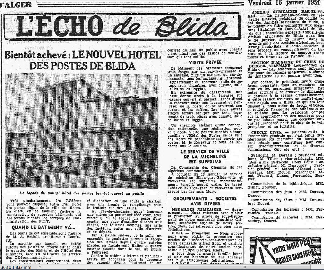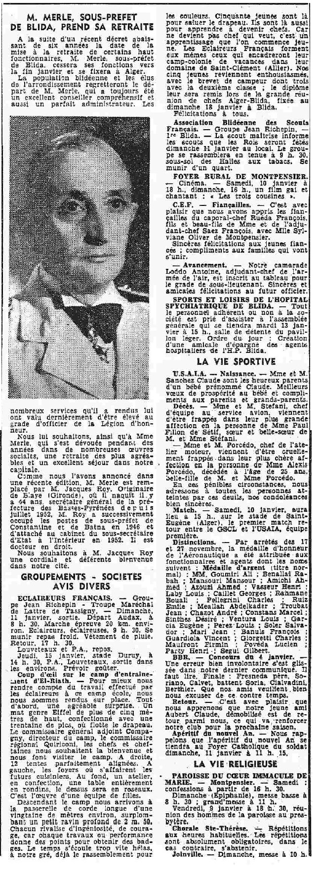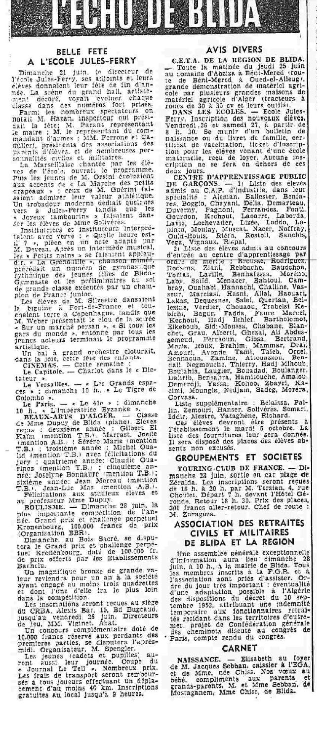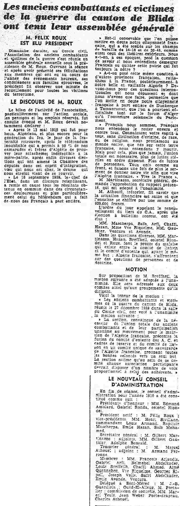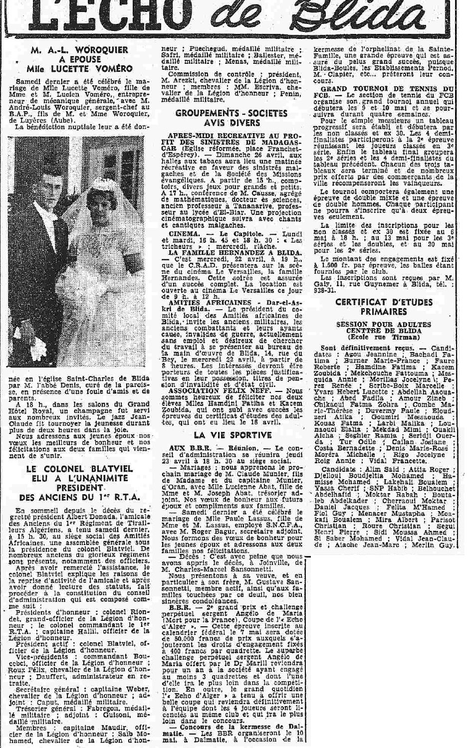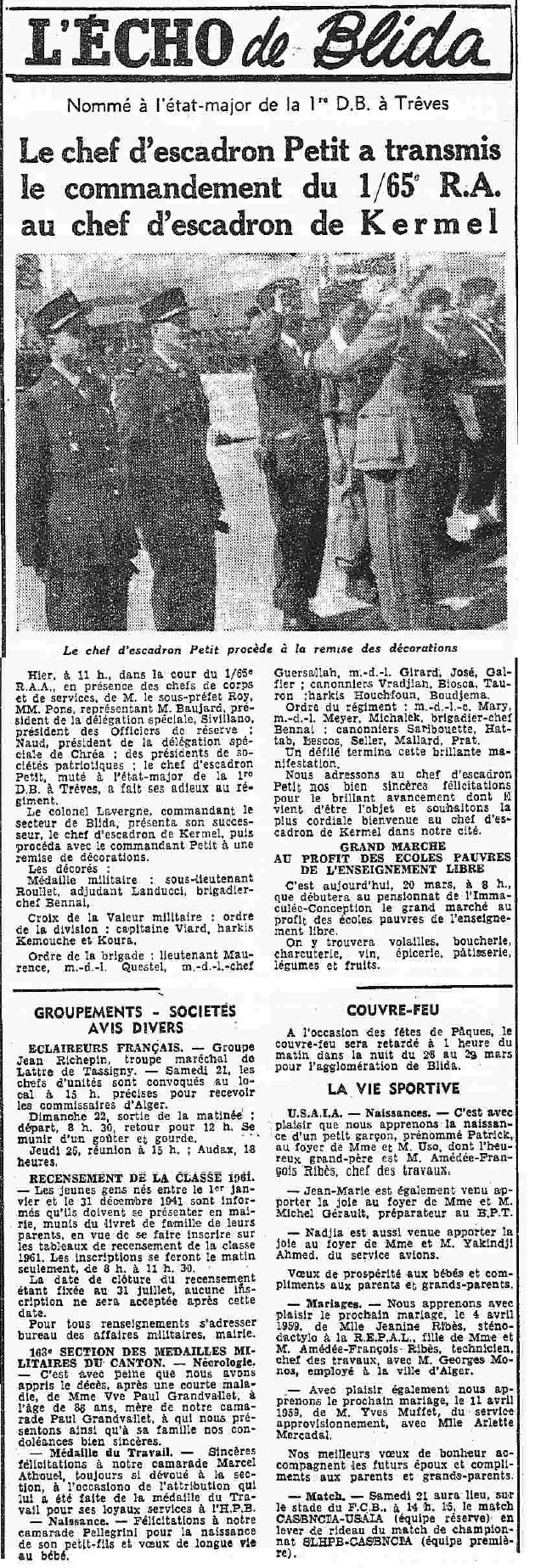 ANNEE 1959: Echos de BLIDA tirés de l'ECHO d'ALGER
