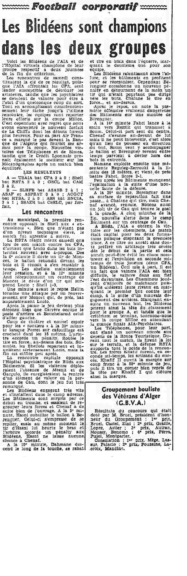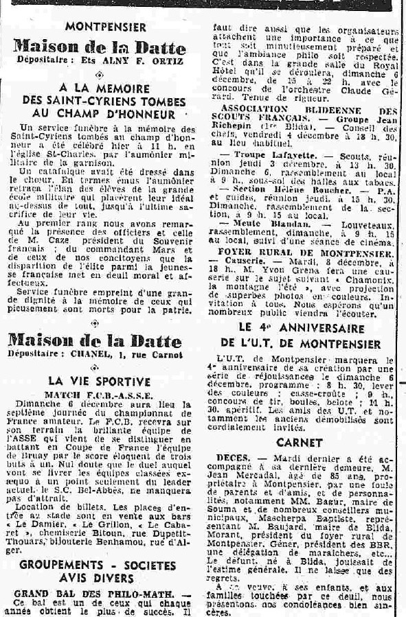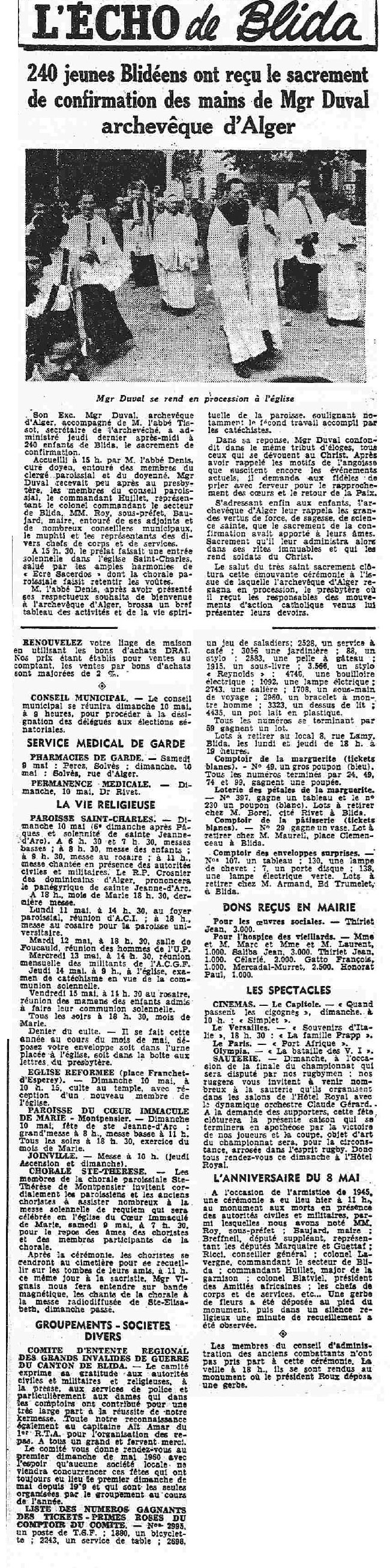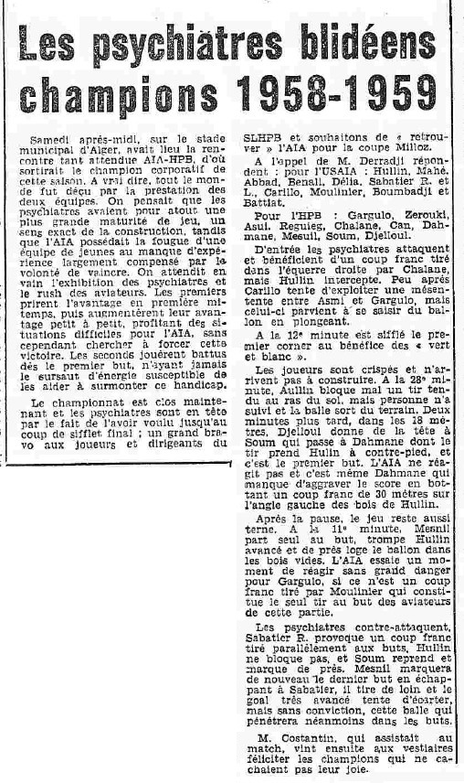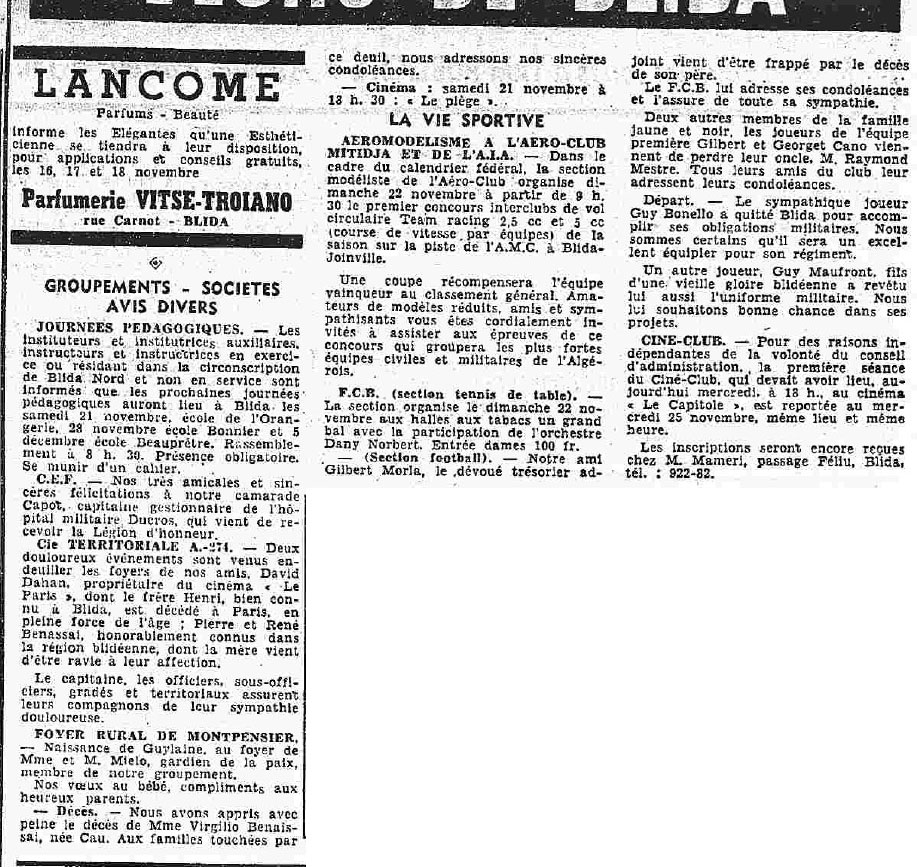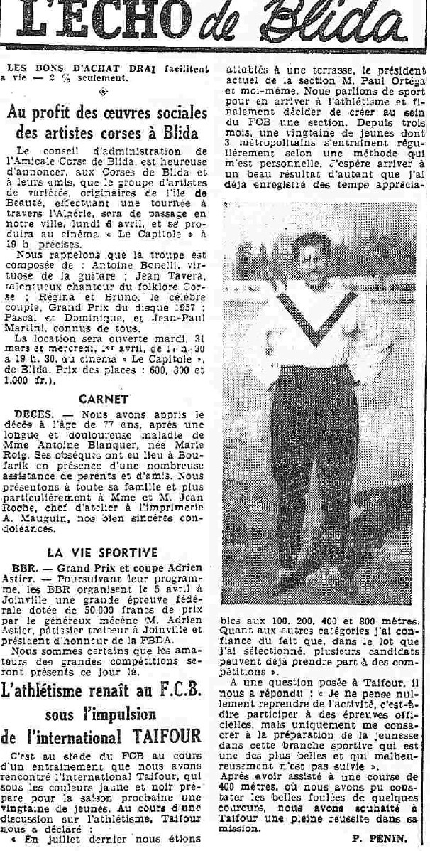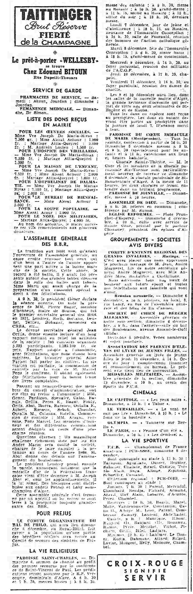 ANNEE 1959: Echos de BLIDA tirés de l'ECHO d'ALGER