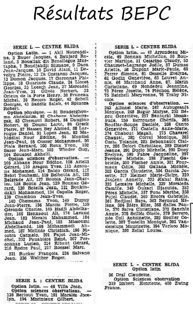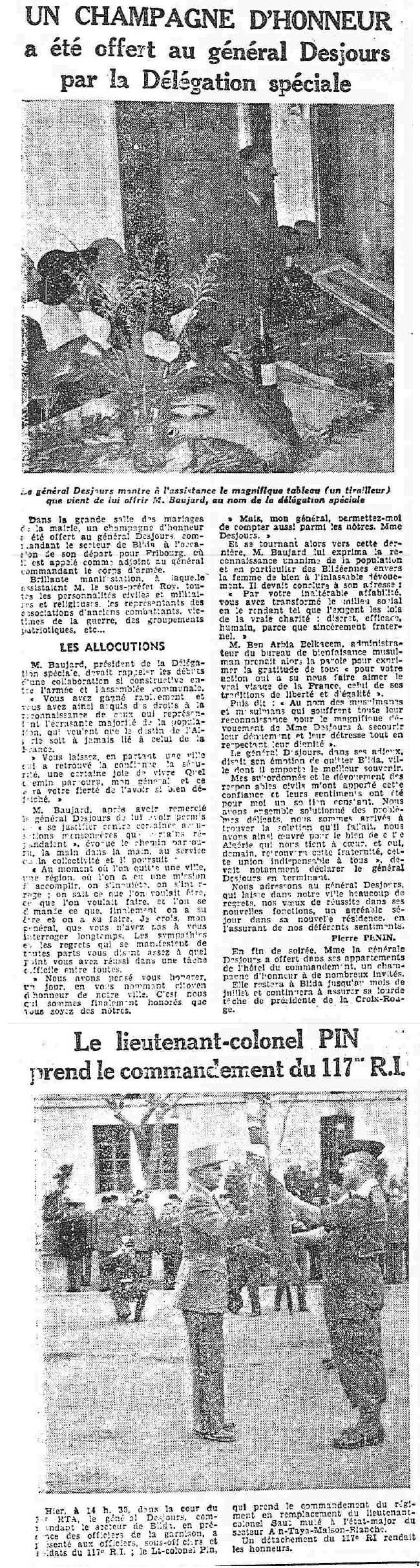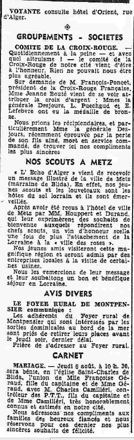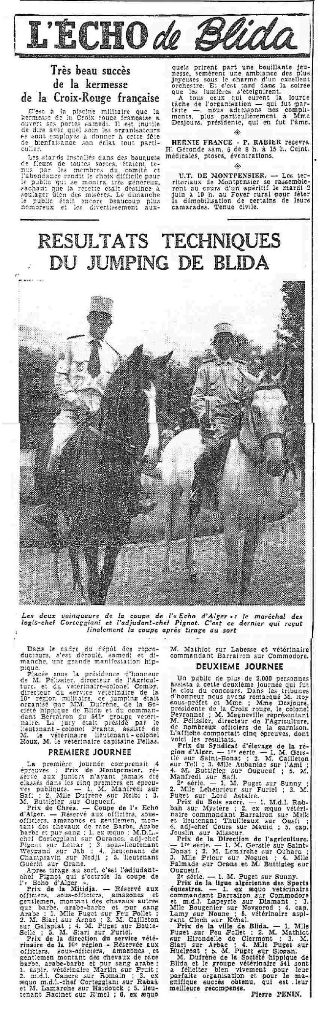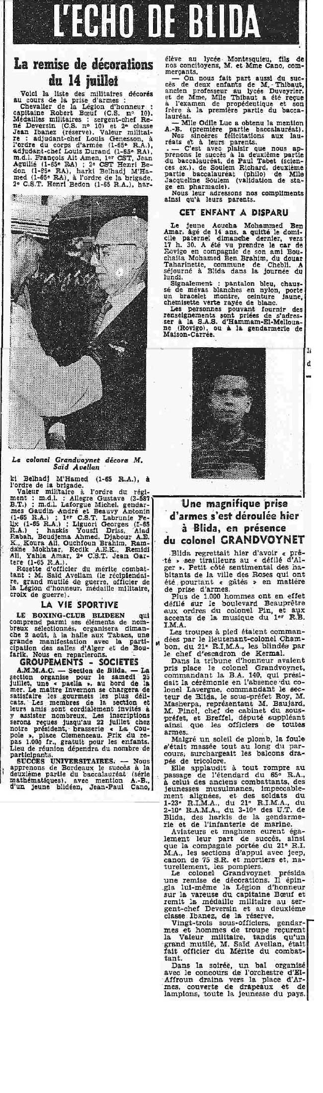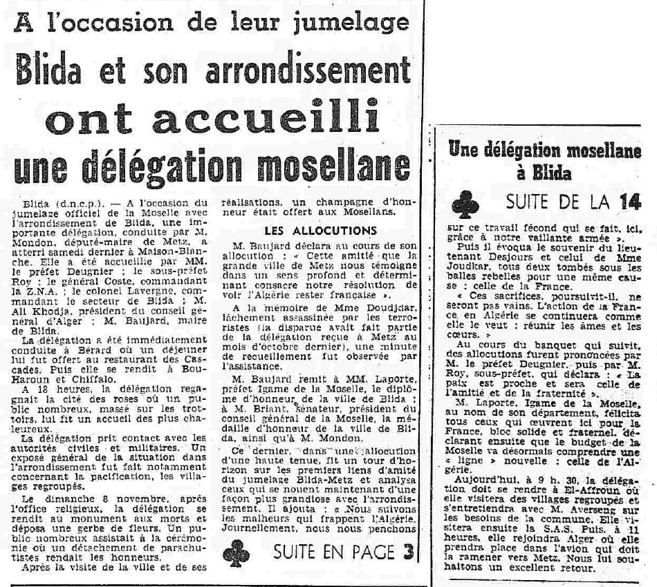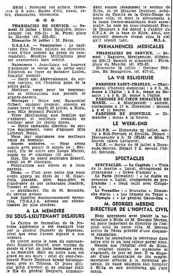 ANNEE 1959: Echos de BLIDA tirés de l'ECHO d'ALGER