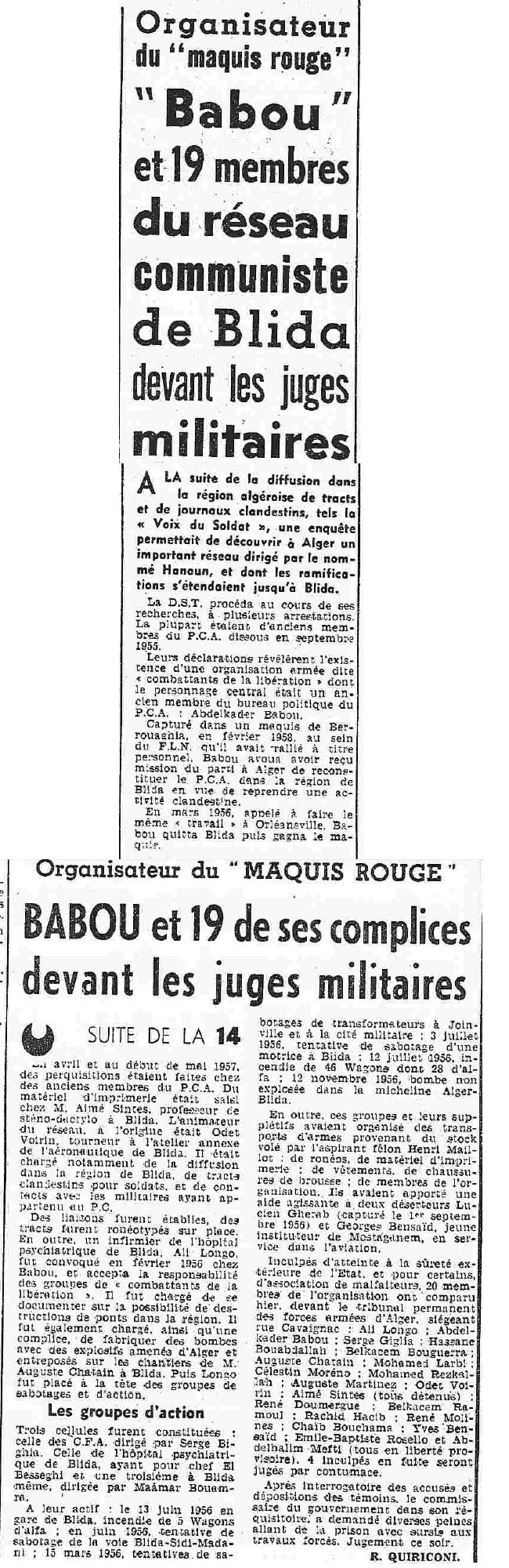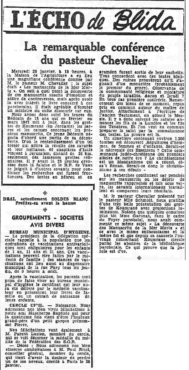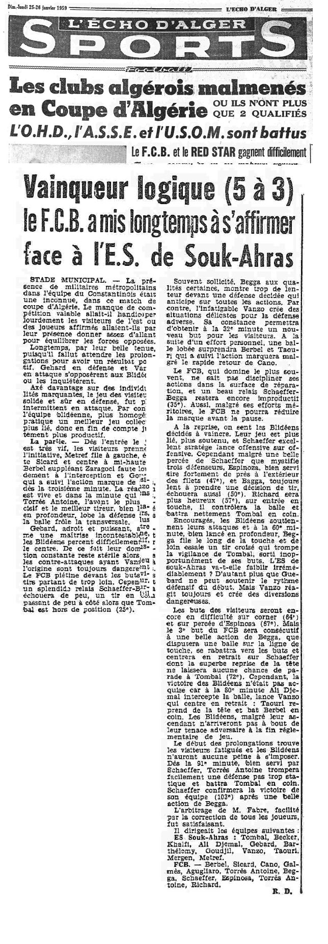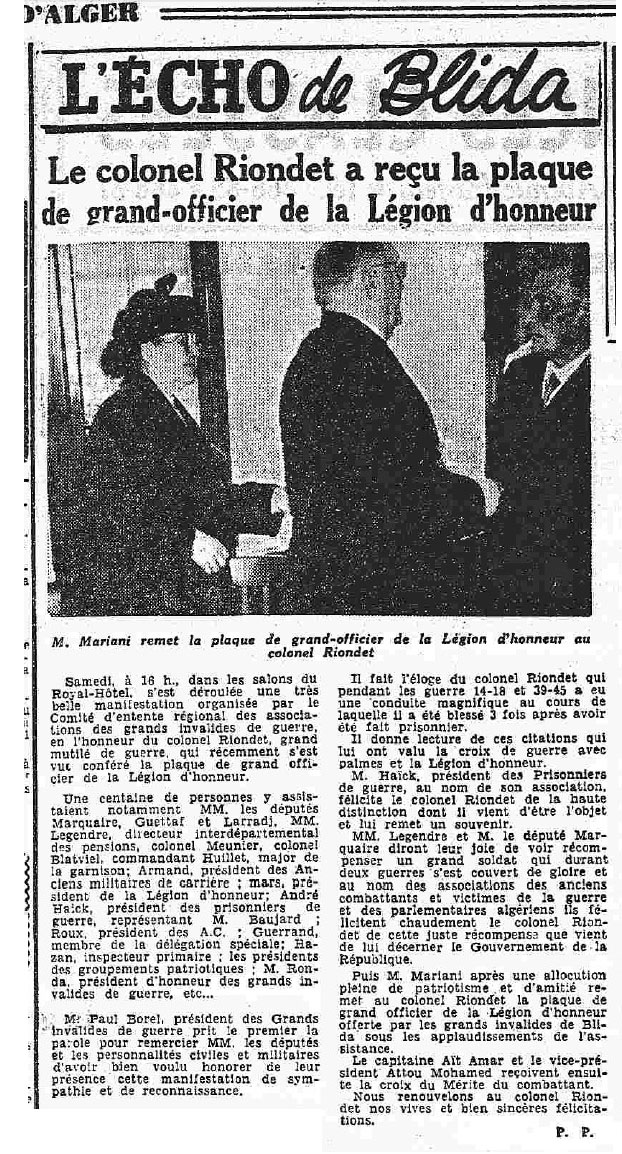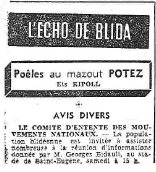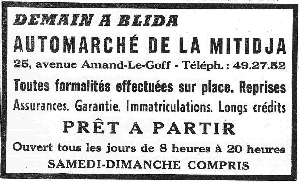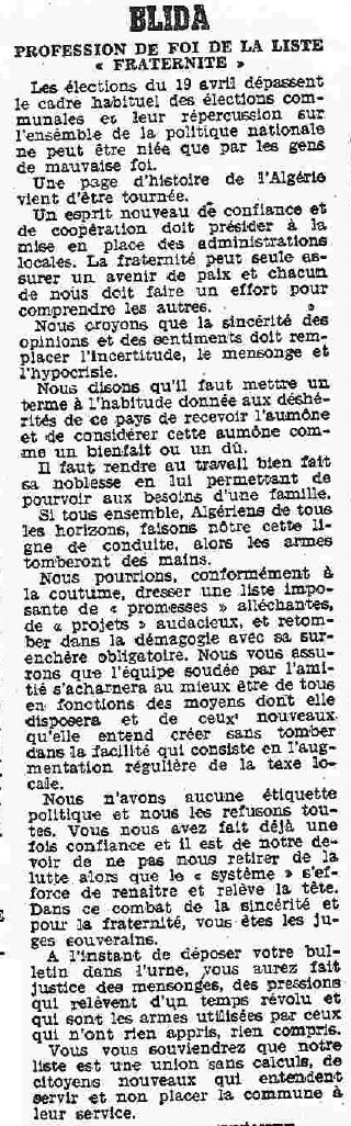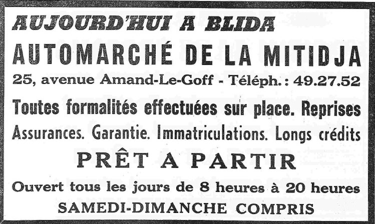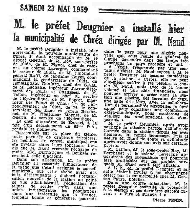 ANNEE 1959: Echos de BLIDA tirés de l'ECHO d'ALGER