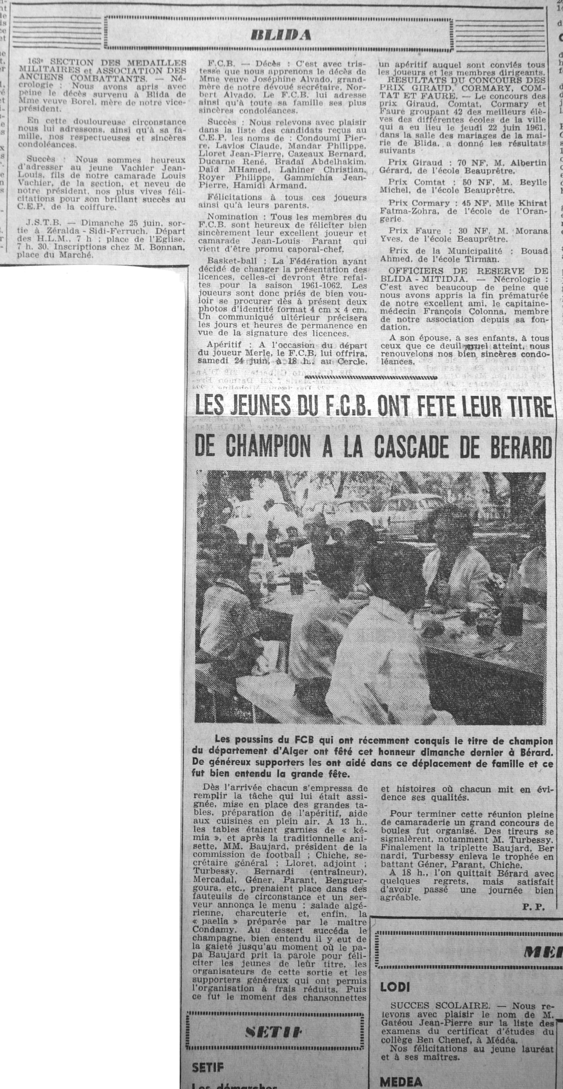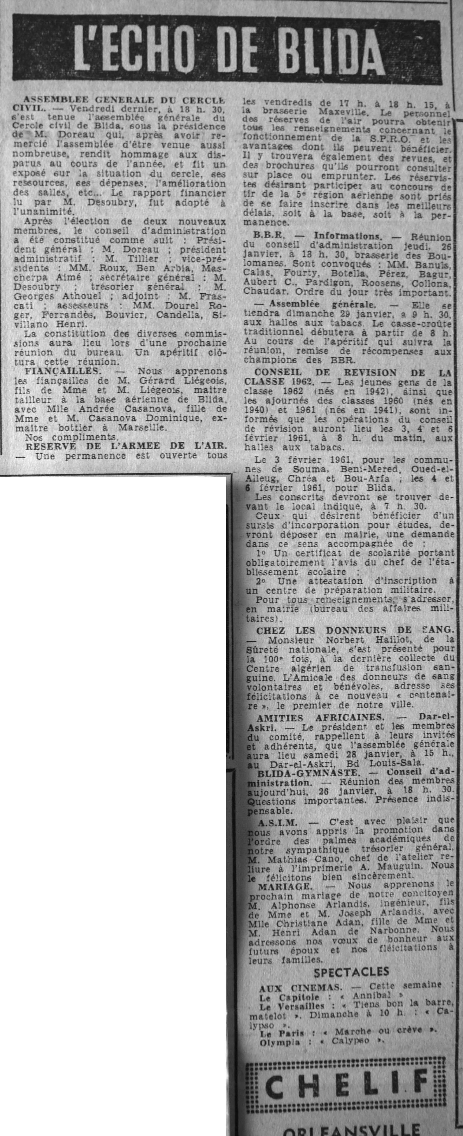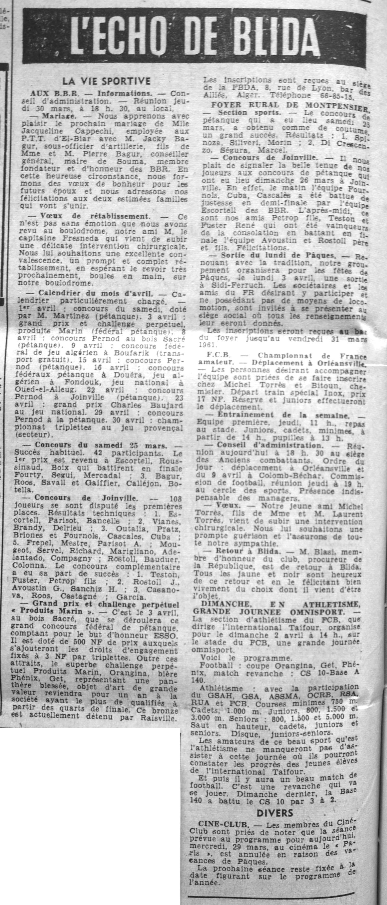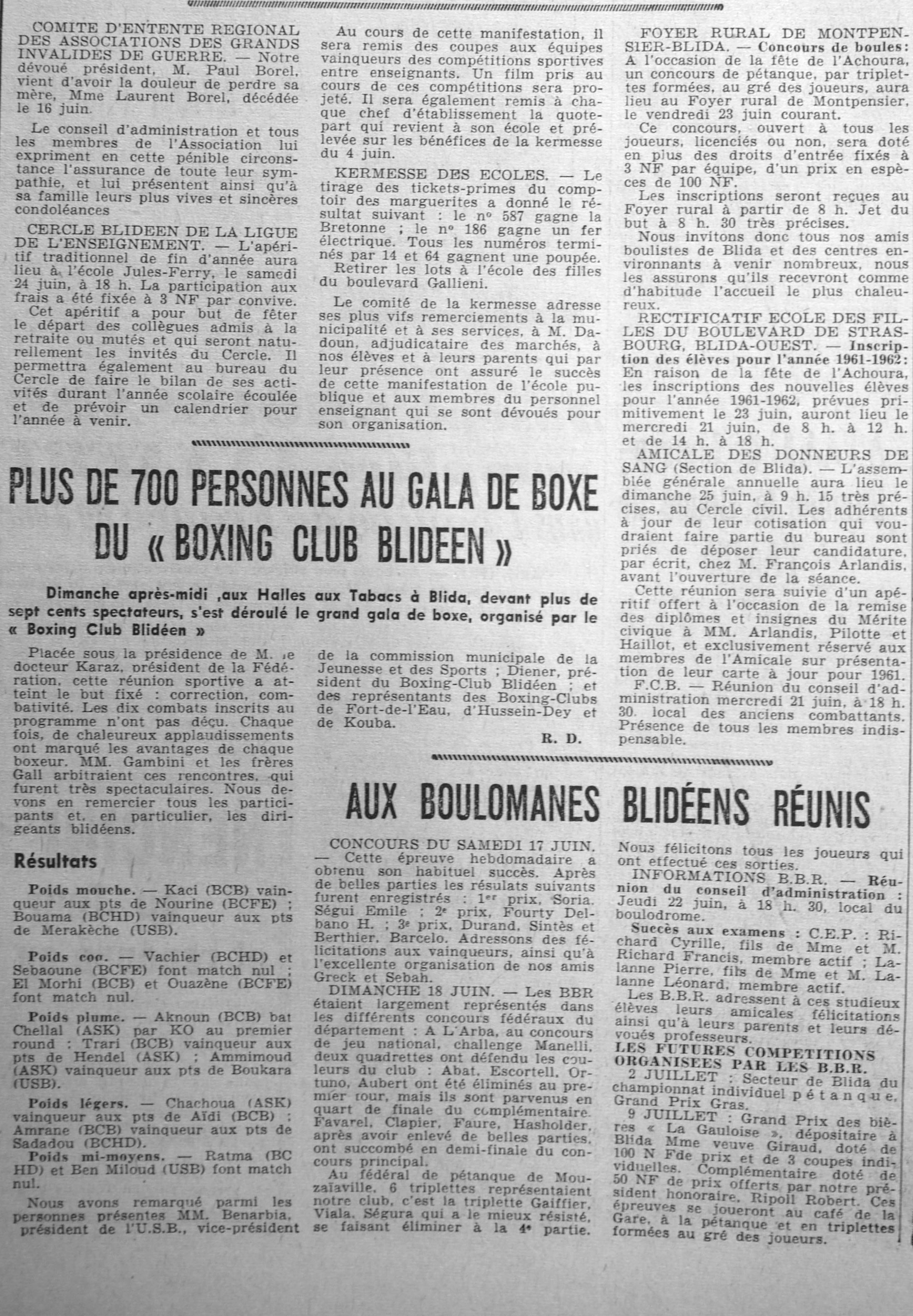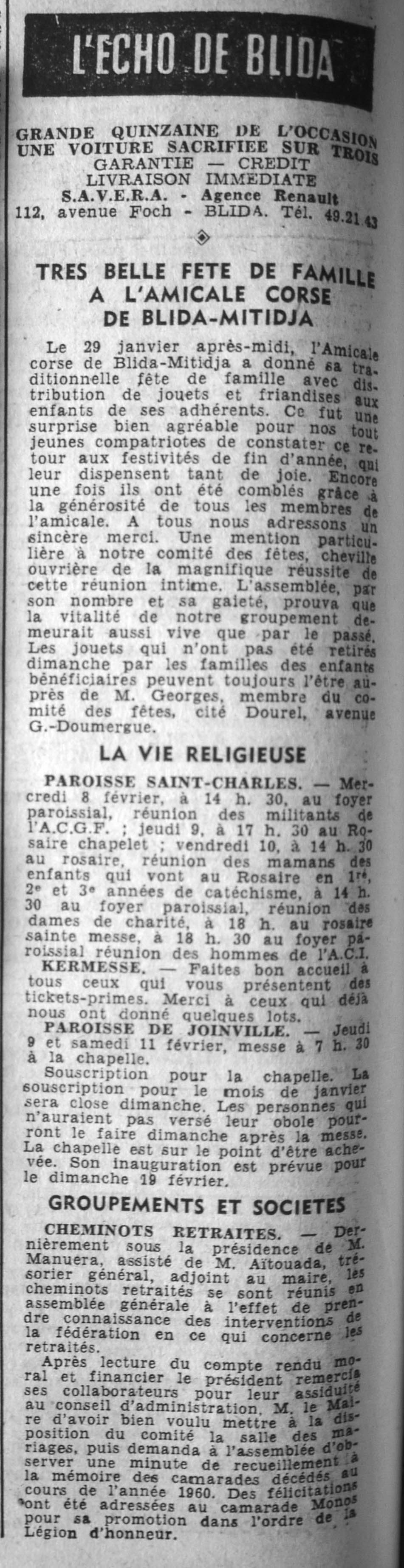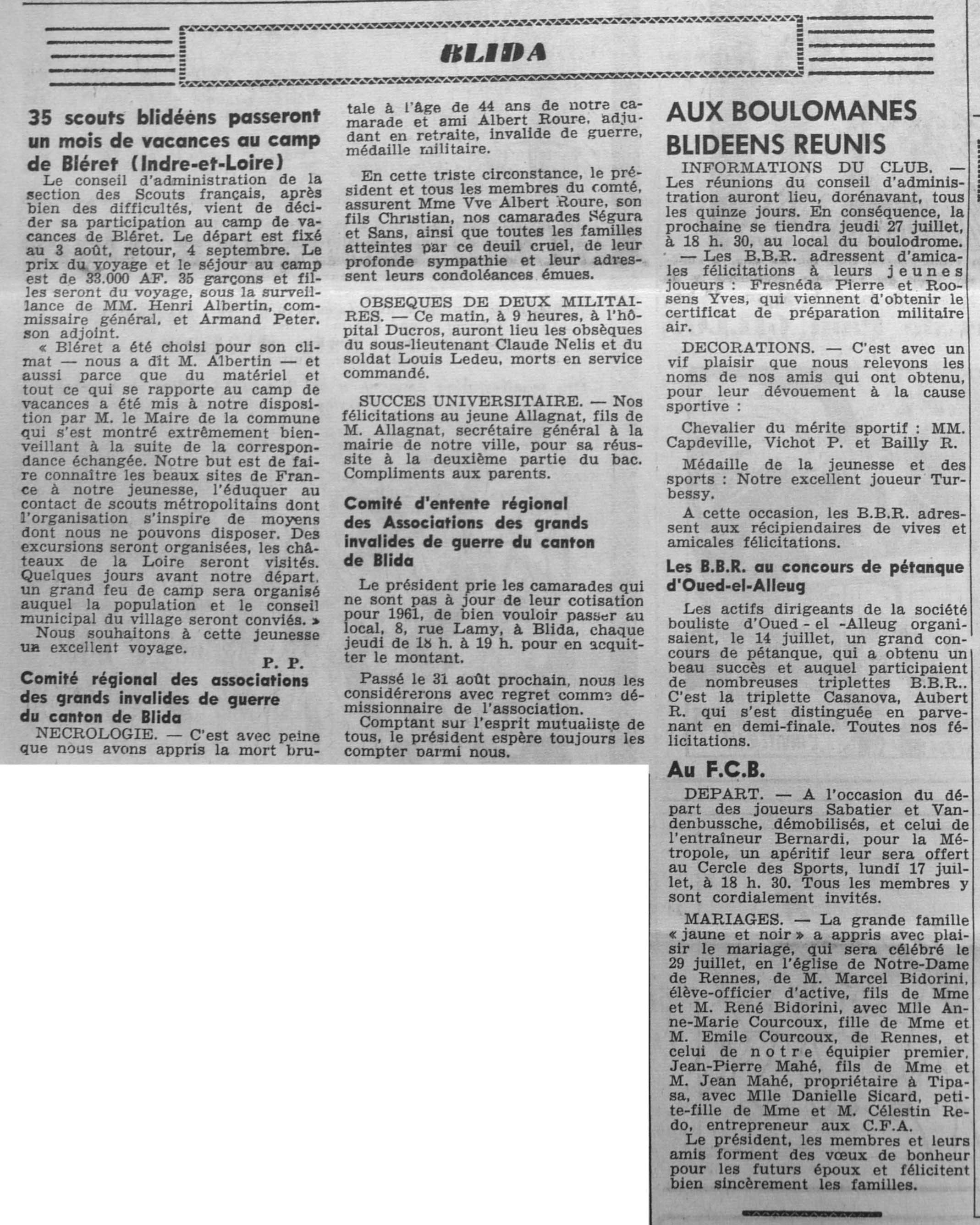ANNEE 1961 Echos de BLIDA tirés de l'ECHO d'ALGER (janvier-avril) et de la Dépêche Quotidienne (mai-décembre) |