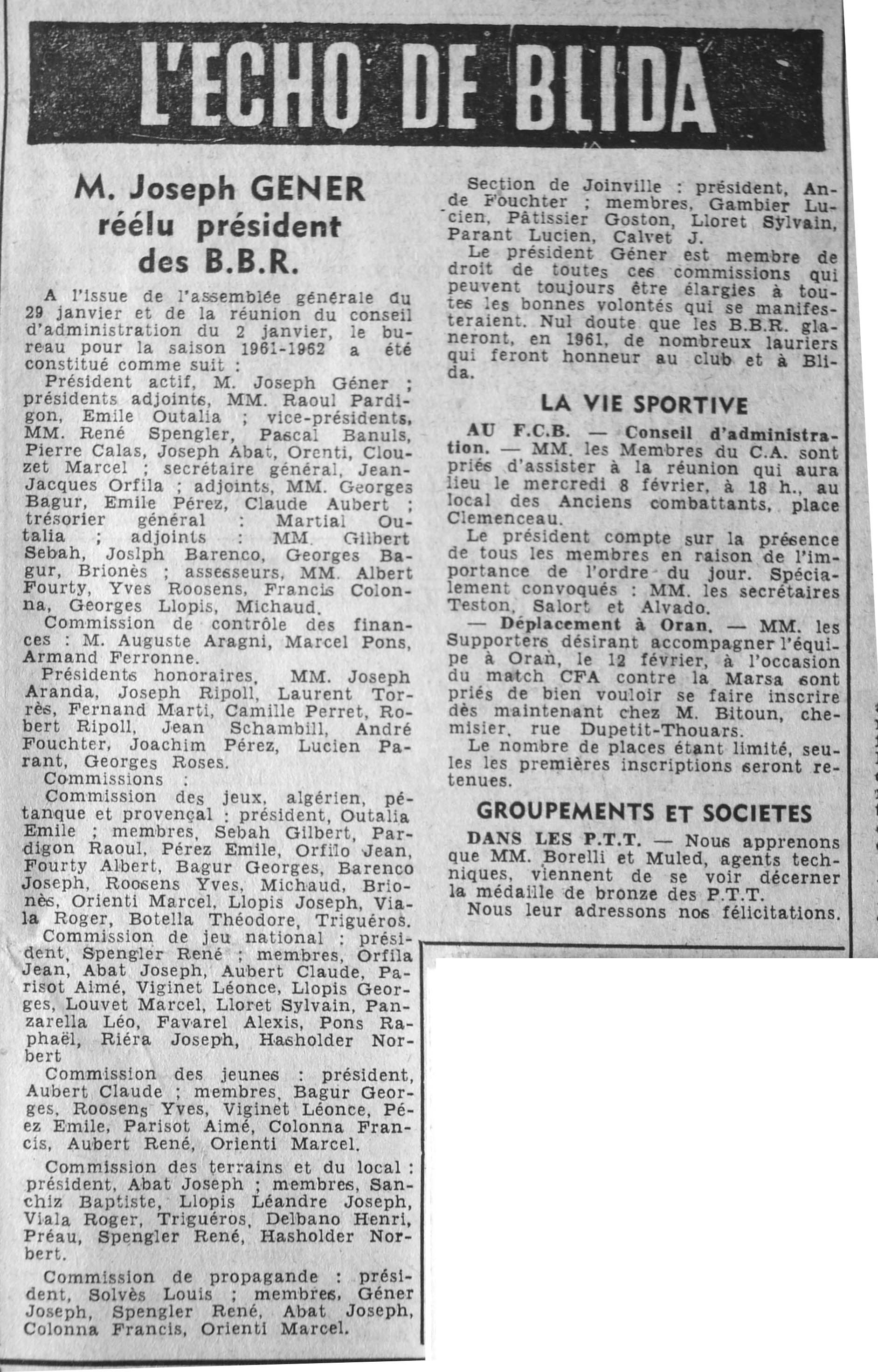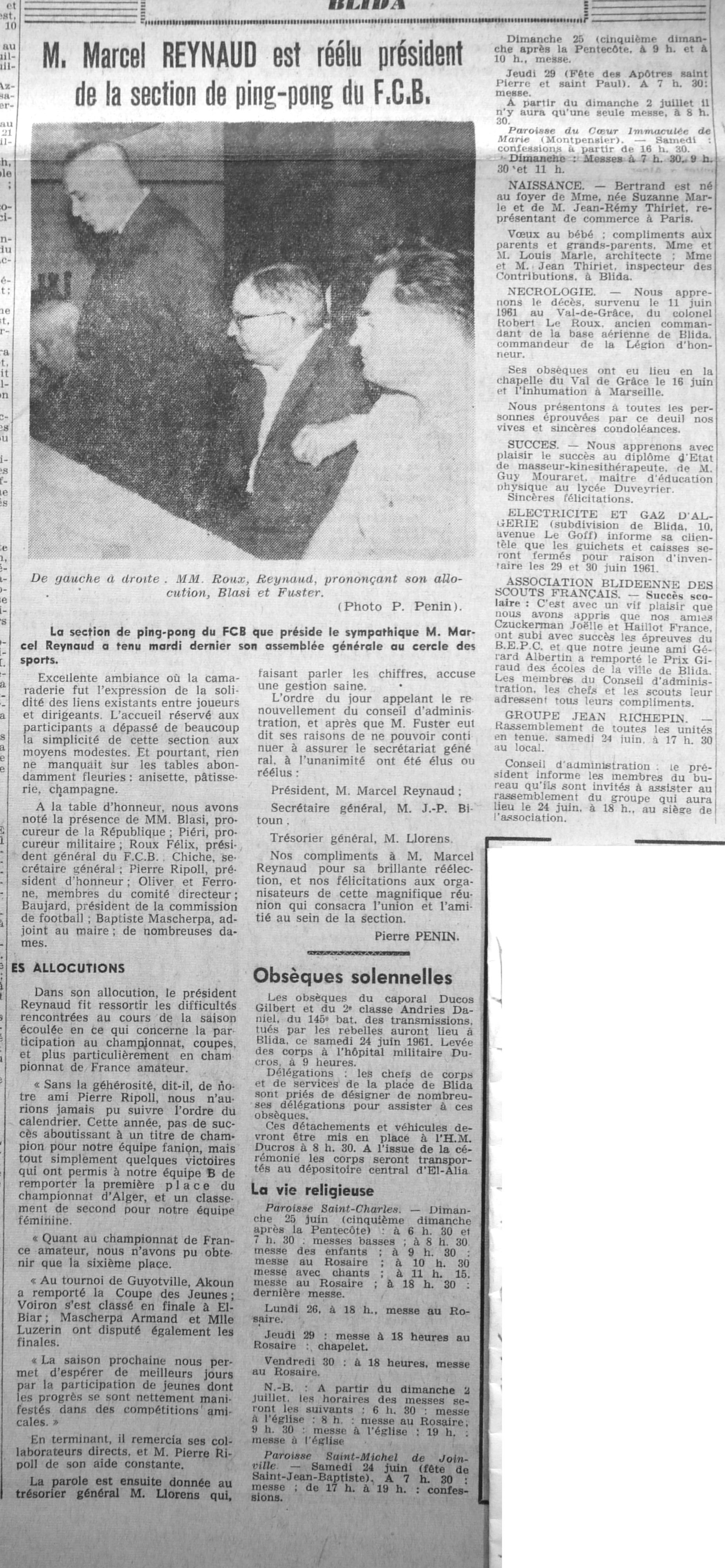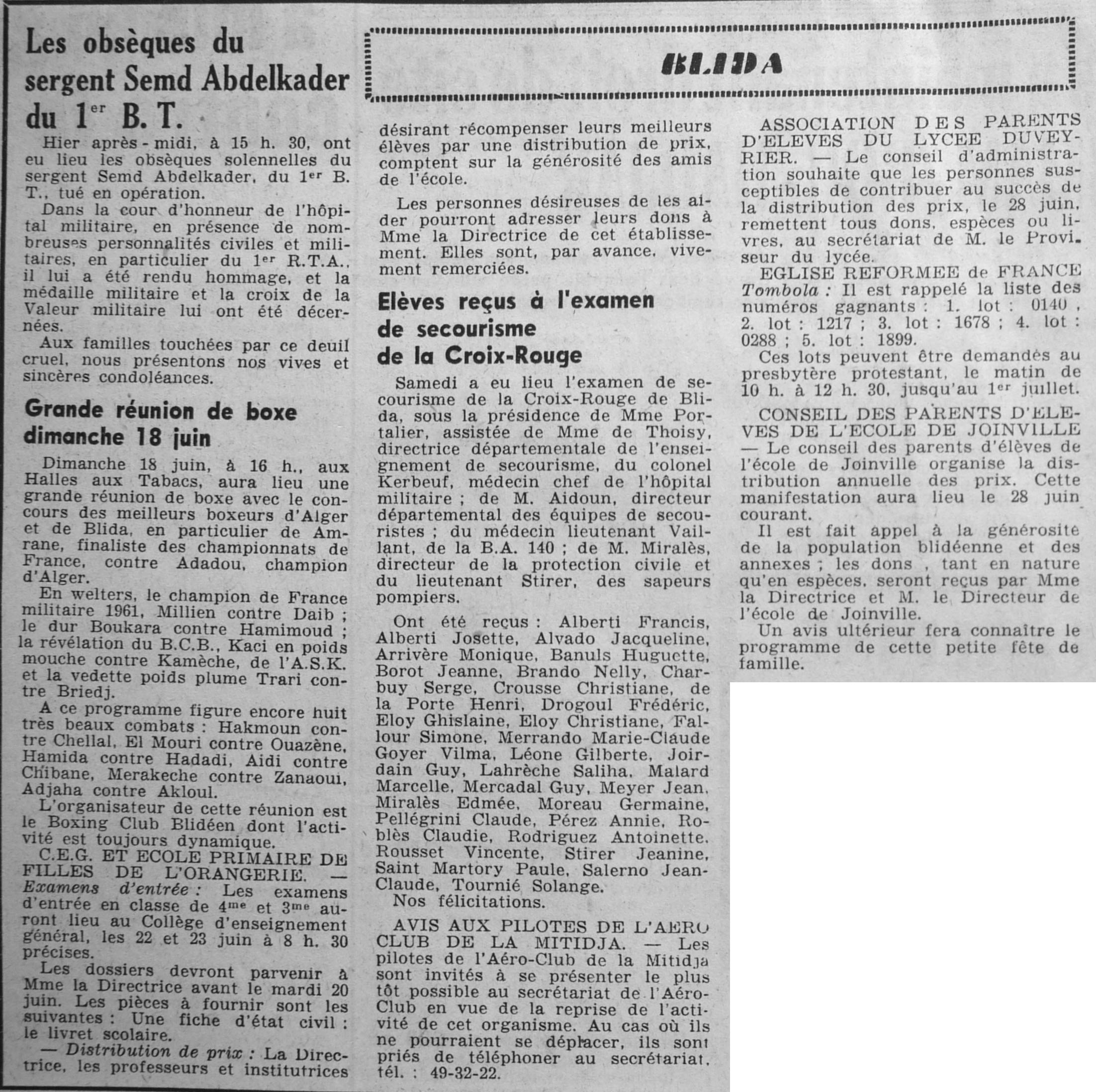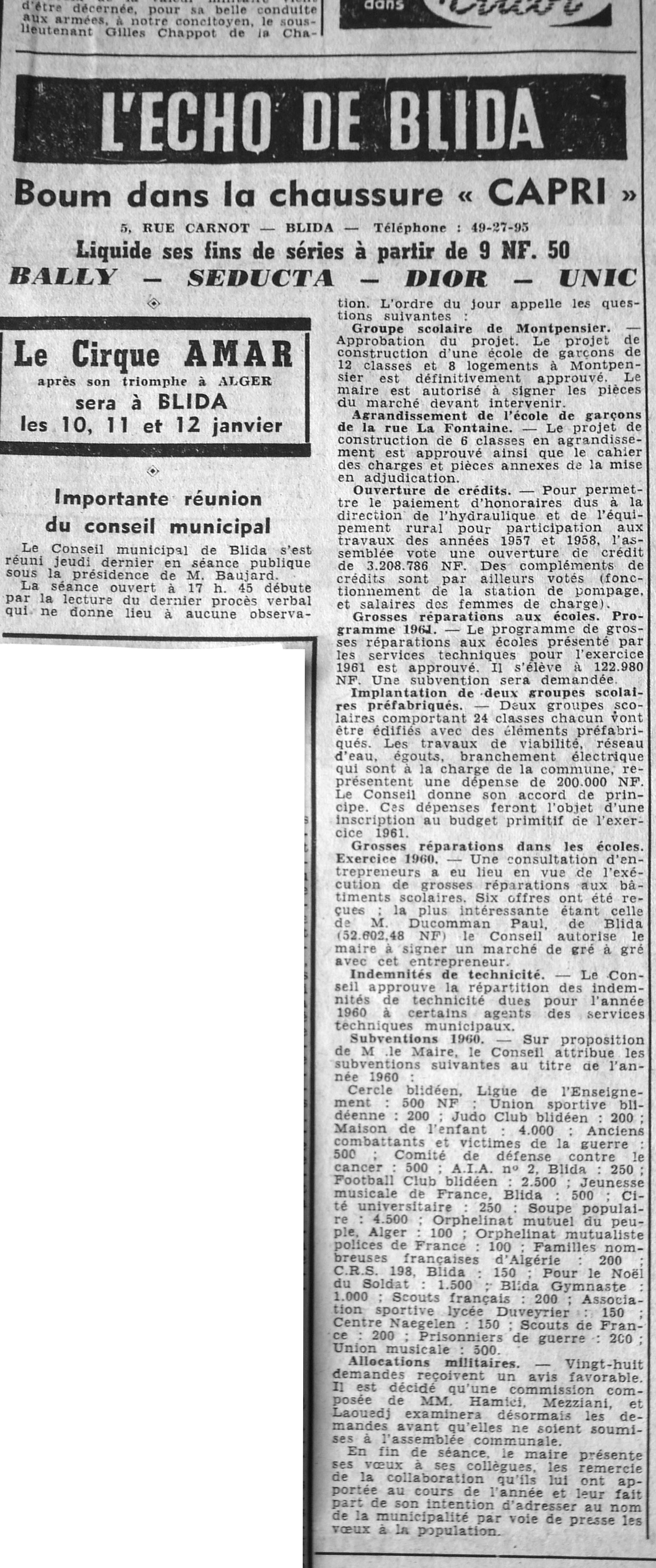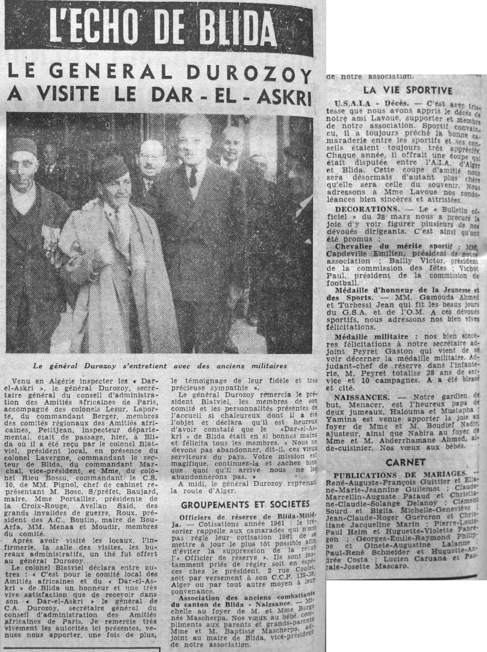 ANNEE 1961 Echos de BLIDA tirés de l'ECHO d'ALGER (janvier-avril) et de la Dépêche Quotidienne (mai-décembre) |