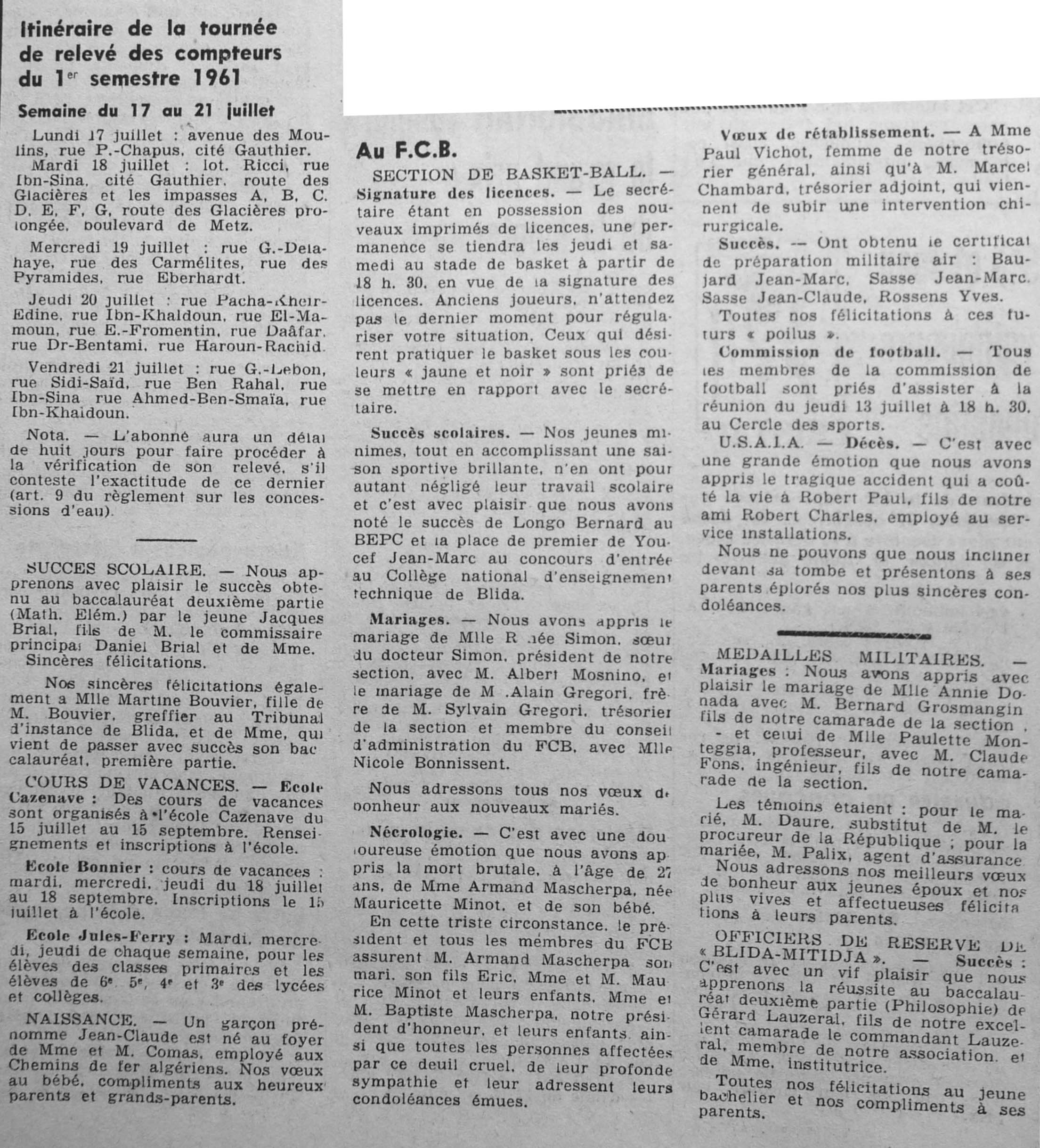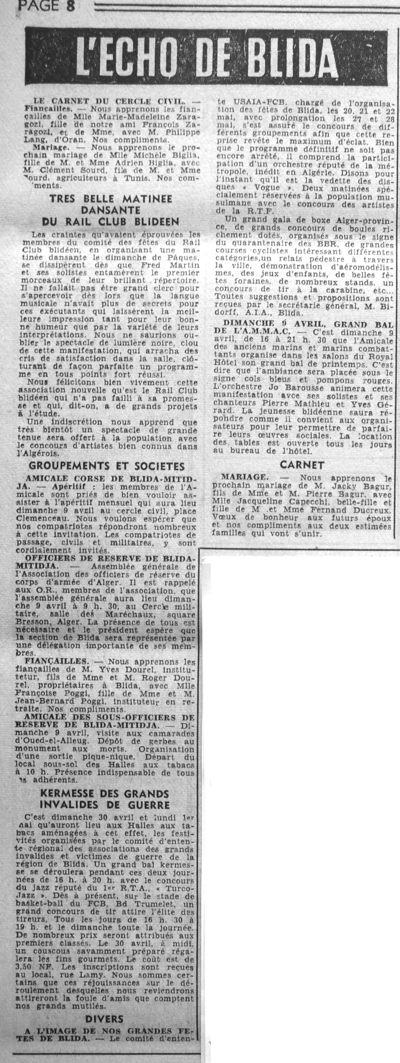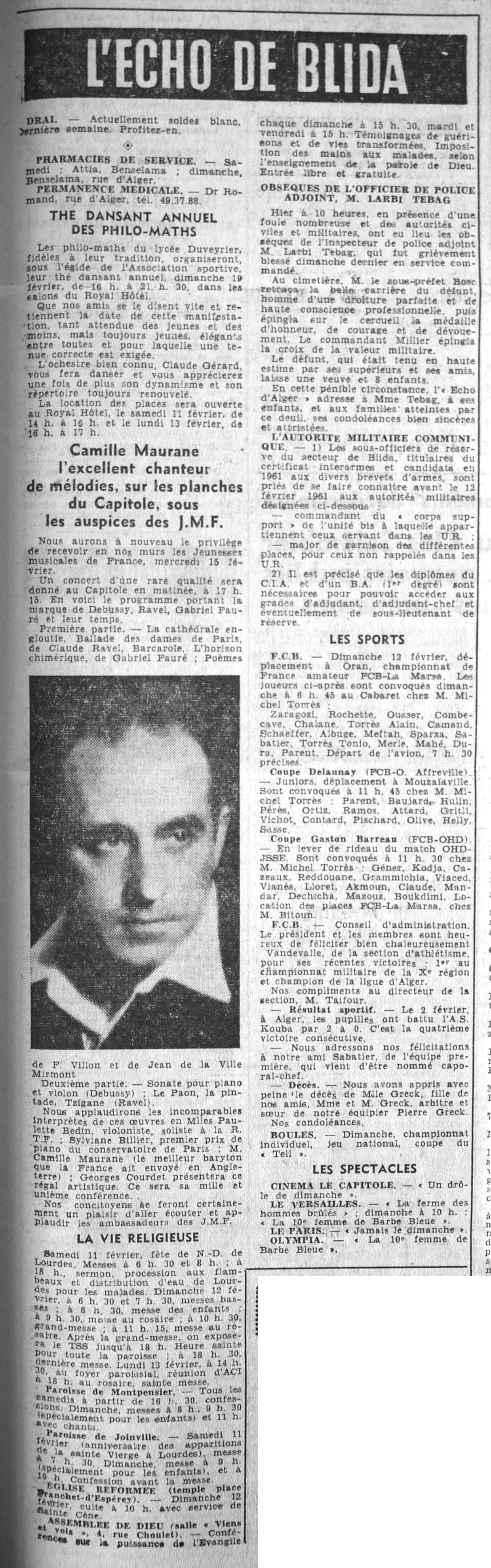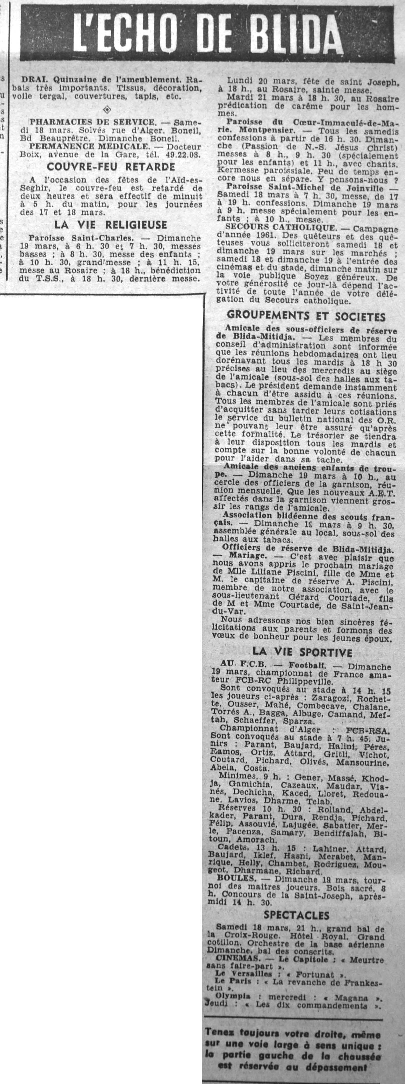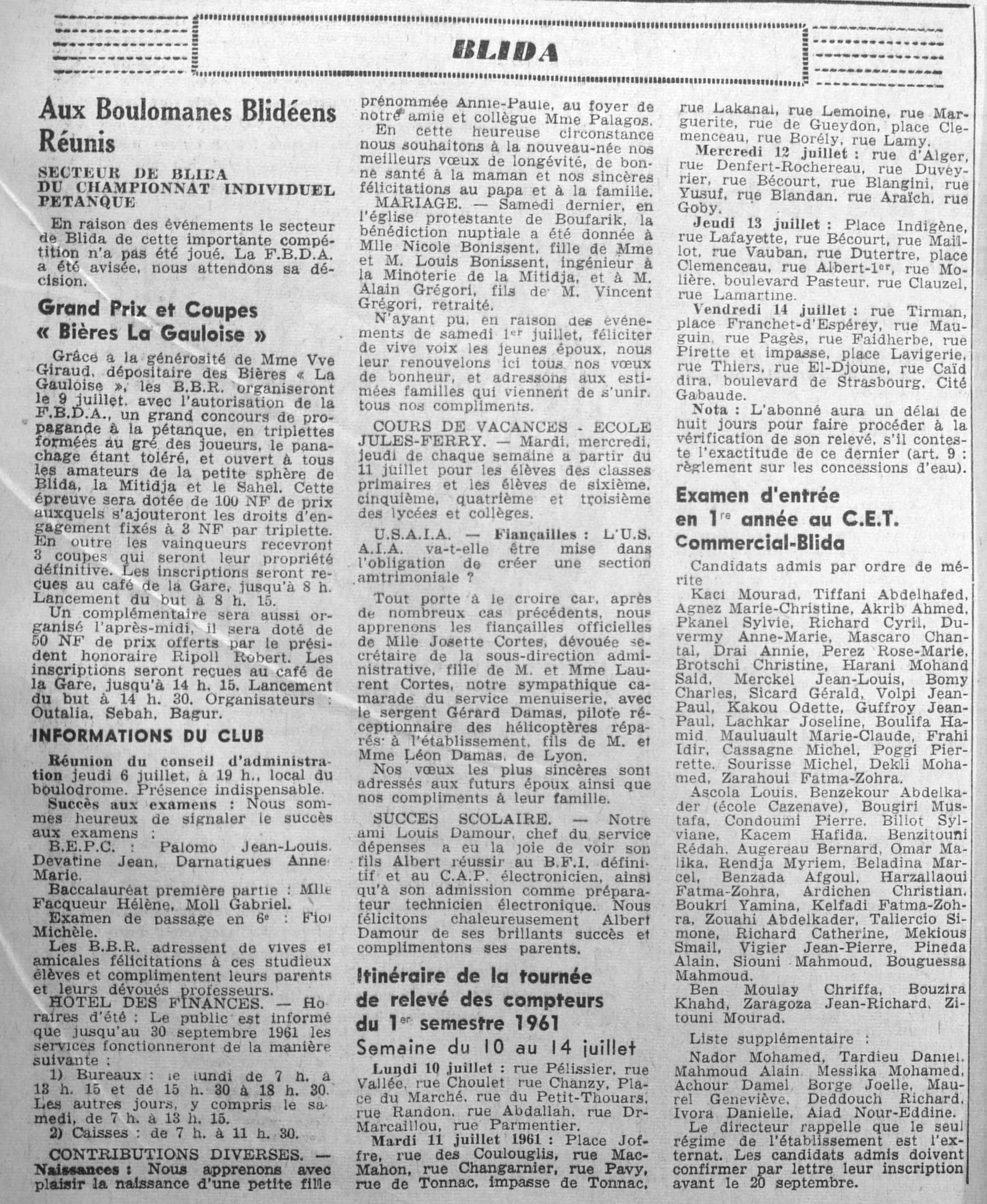 ANNEE 1961 Echos de BLIDA tirés de l'ECHO d'ALGER (janvier-avril) et de la Dépêche Quotidienne (mai-décembre) |
