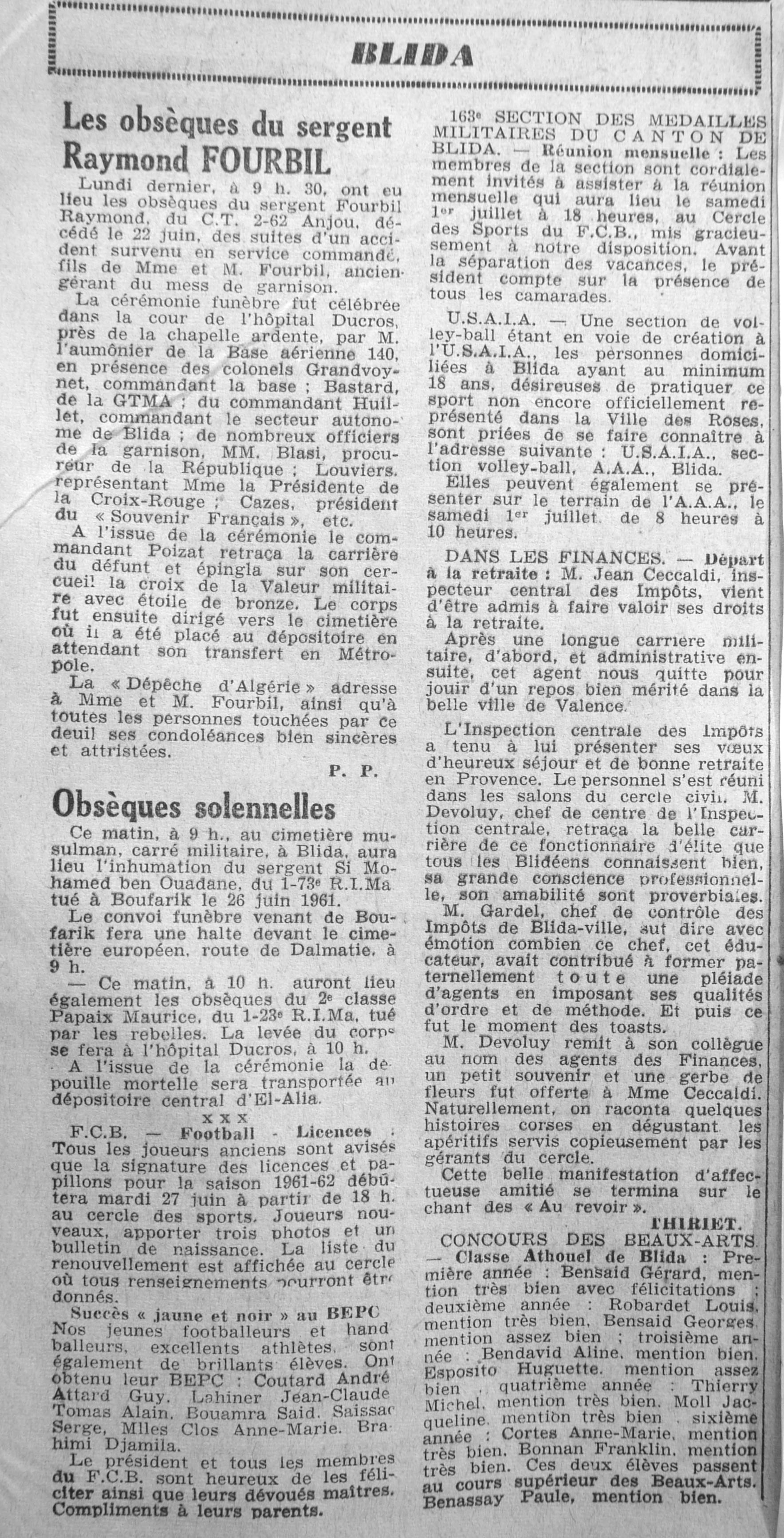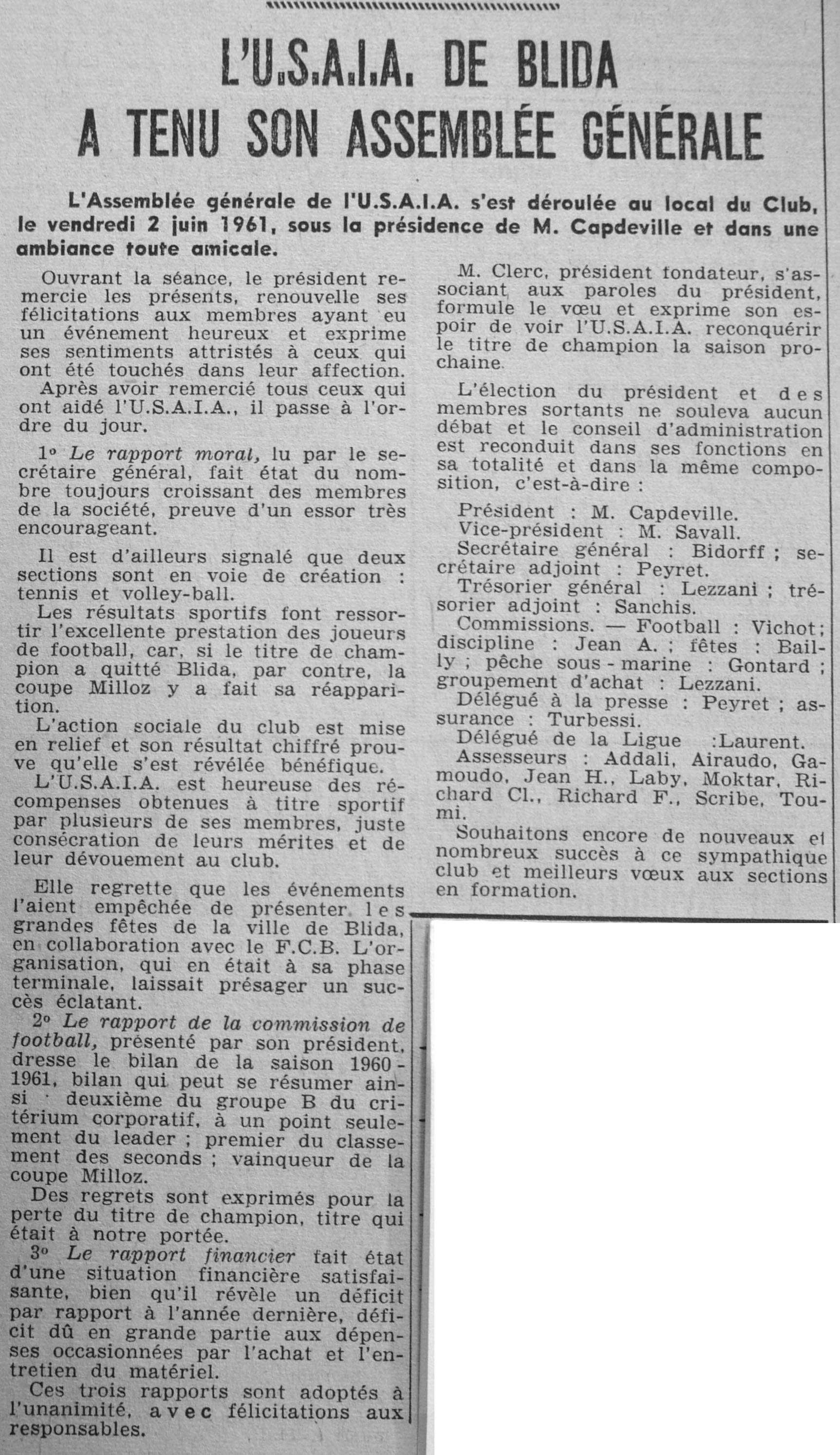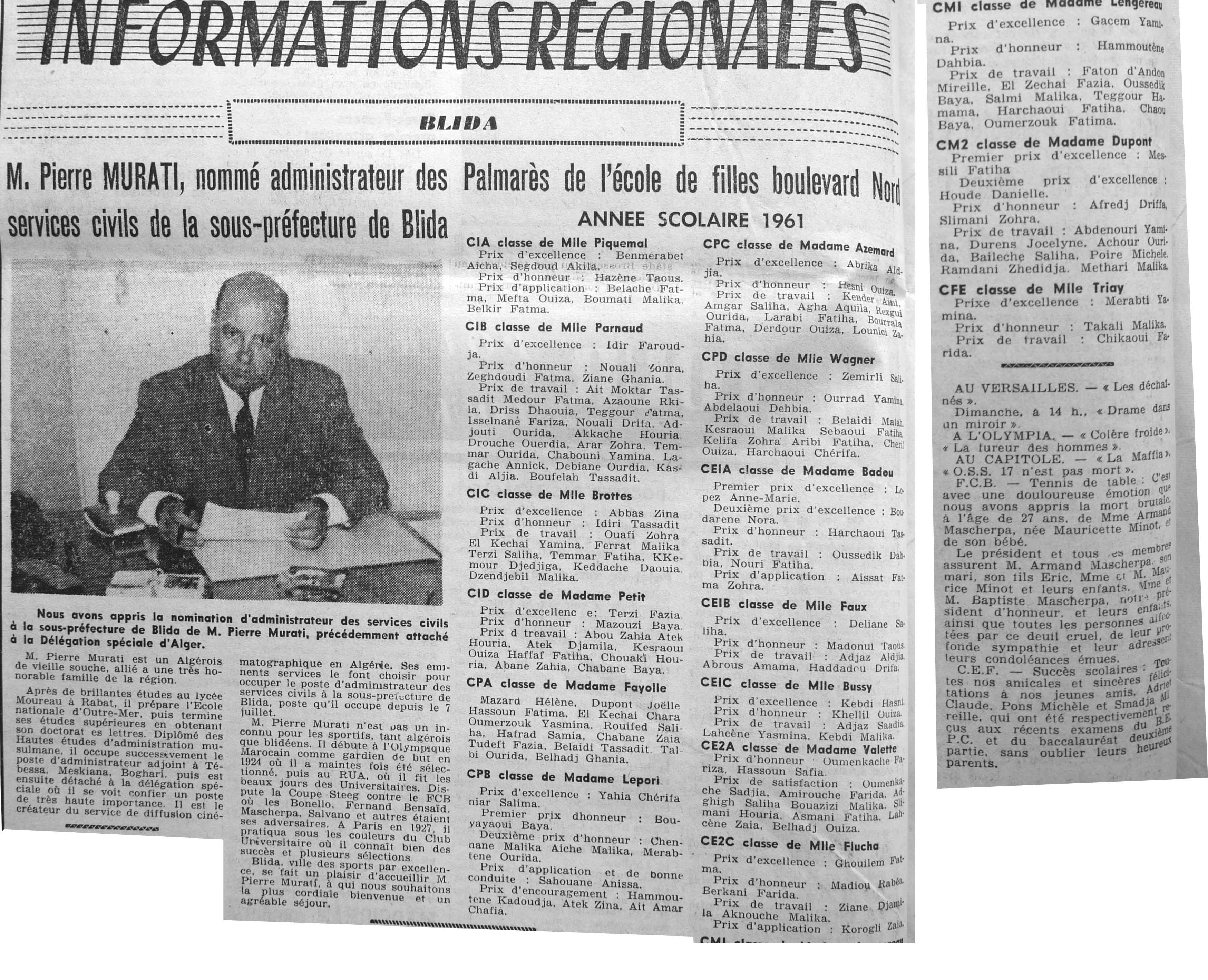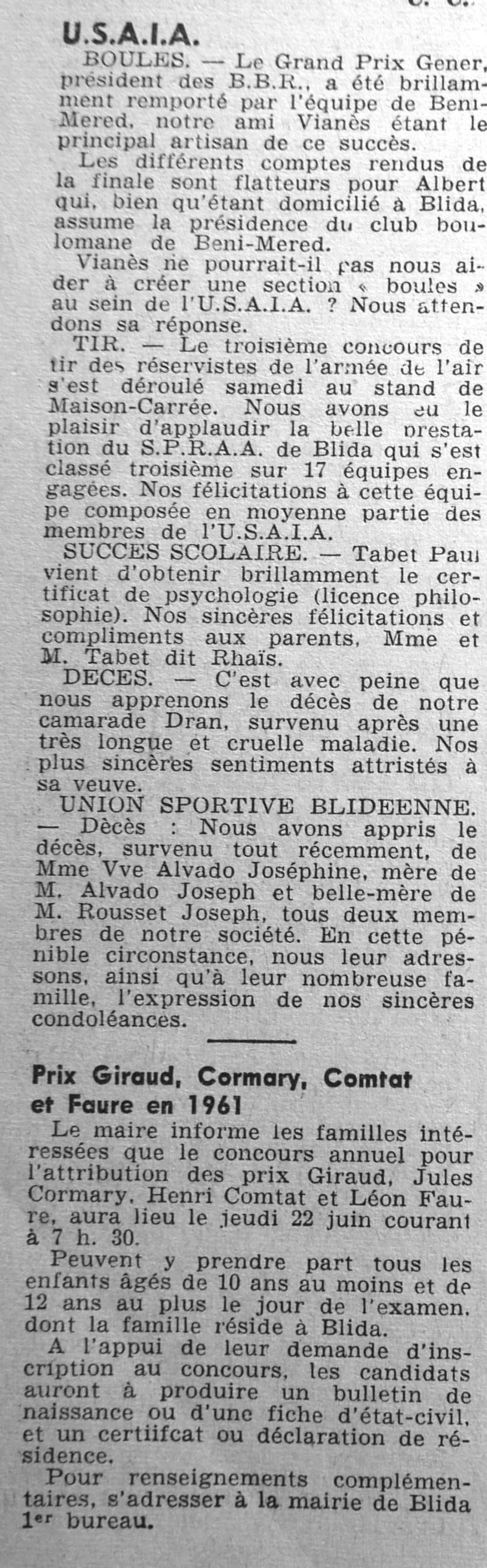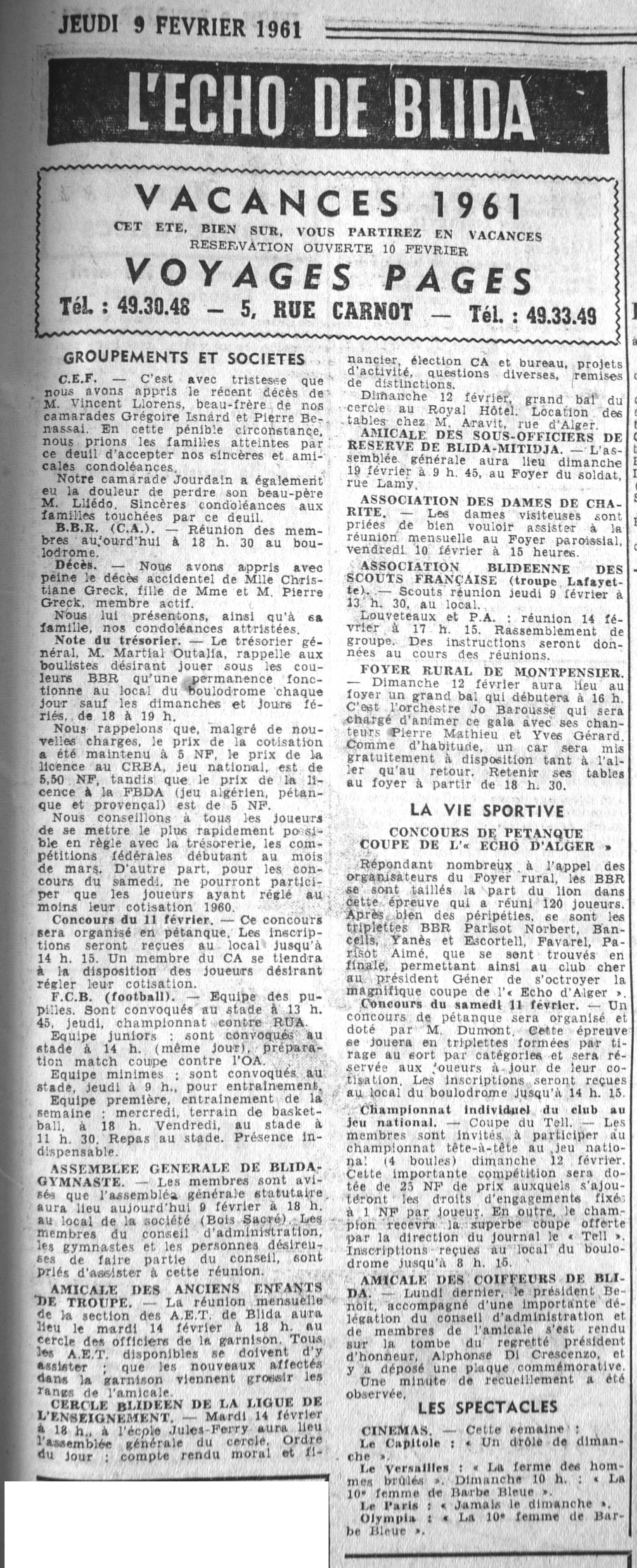 ANNEE 1961 Echos de BLIDA tirés de l'ECHO d'ALGER (janvier-avril) et de la Dépêche Quotidienne (mai-décembre) |