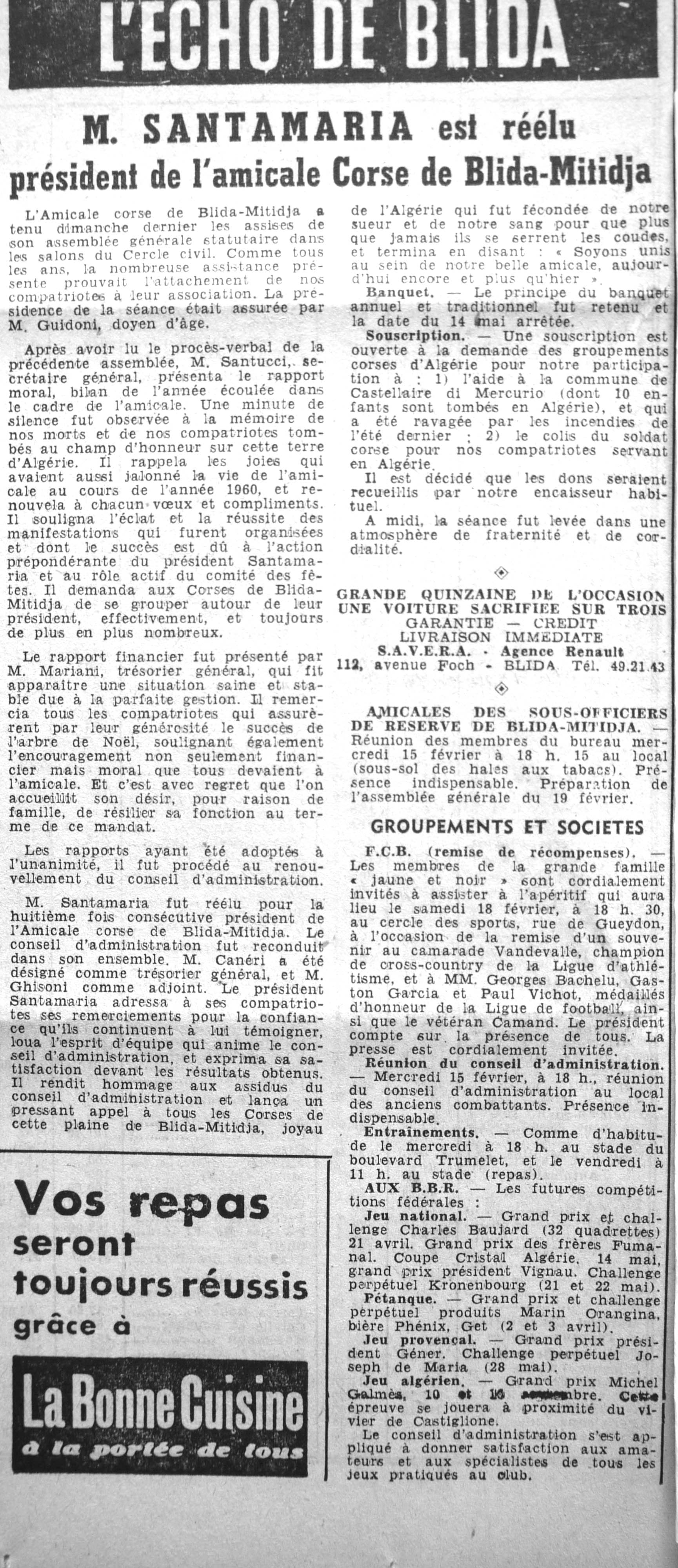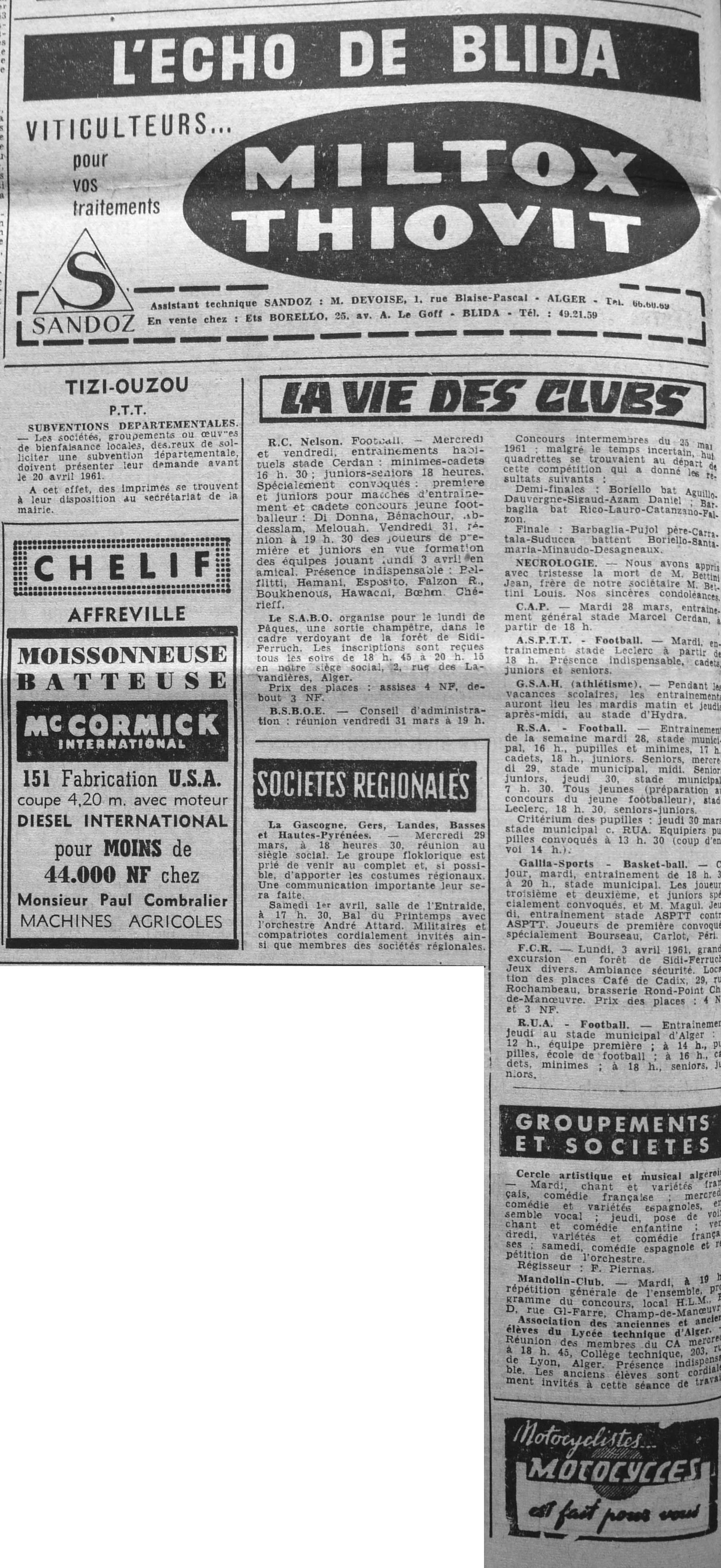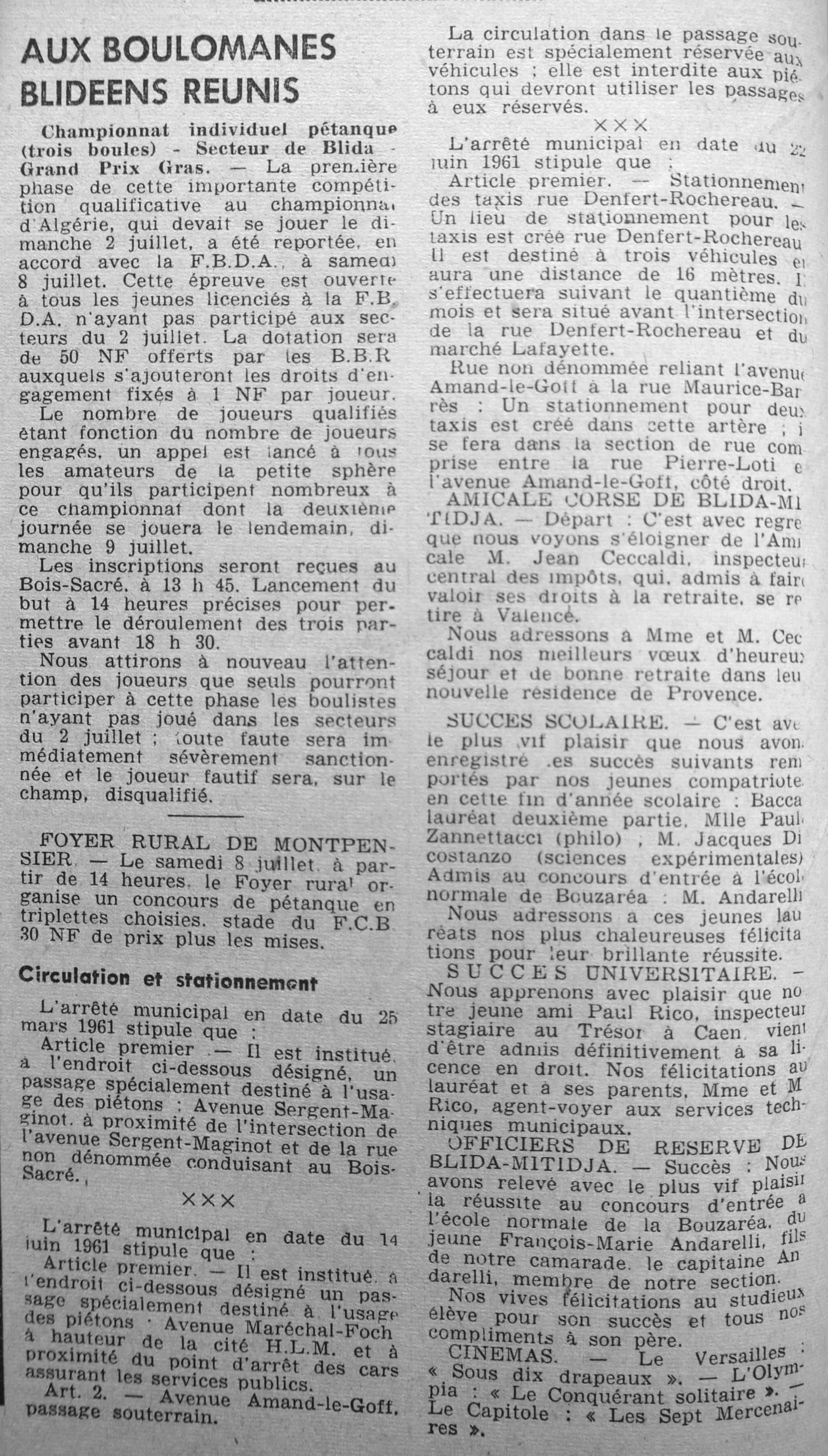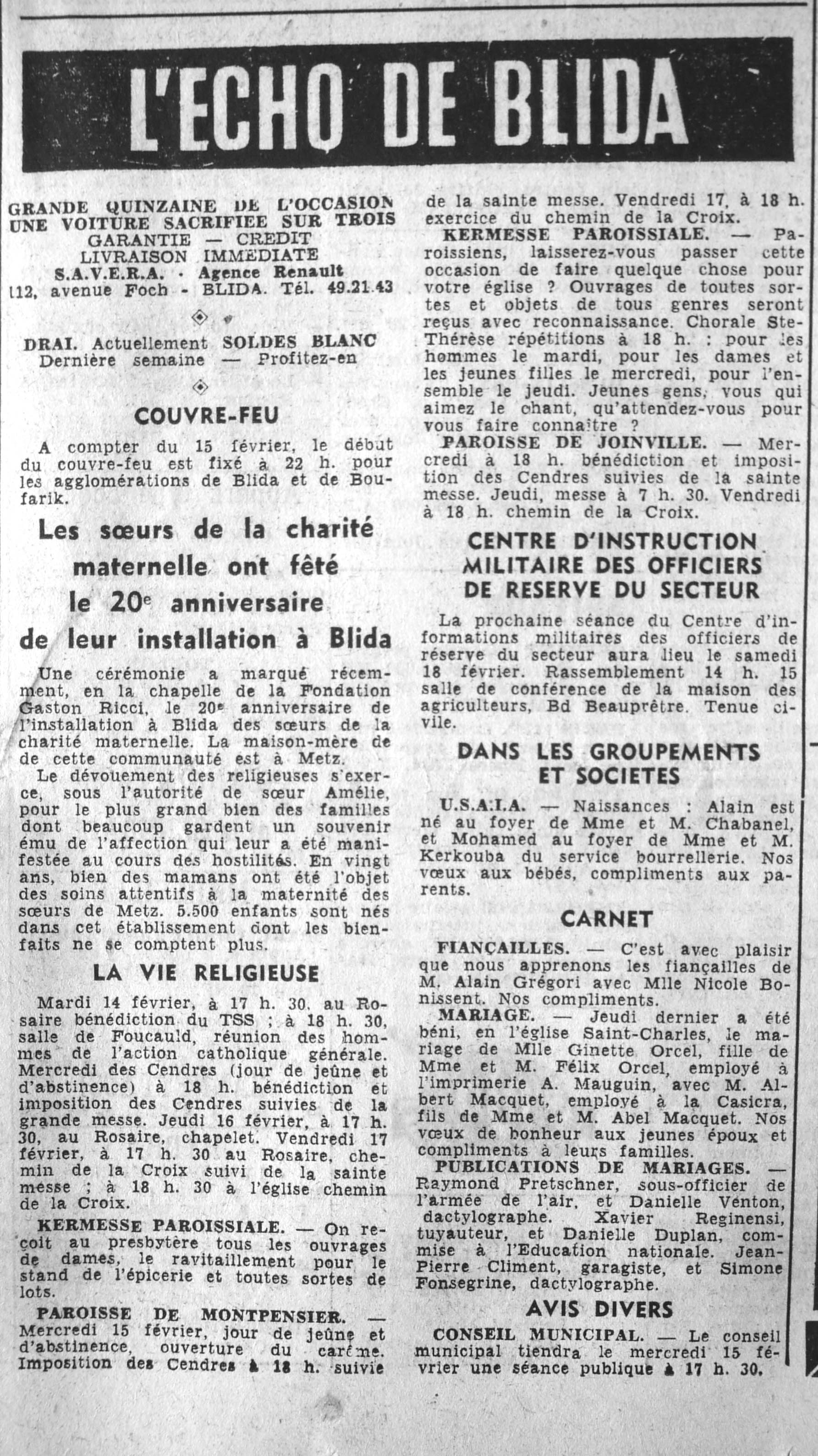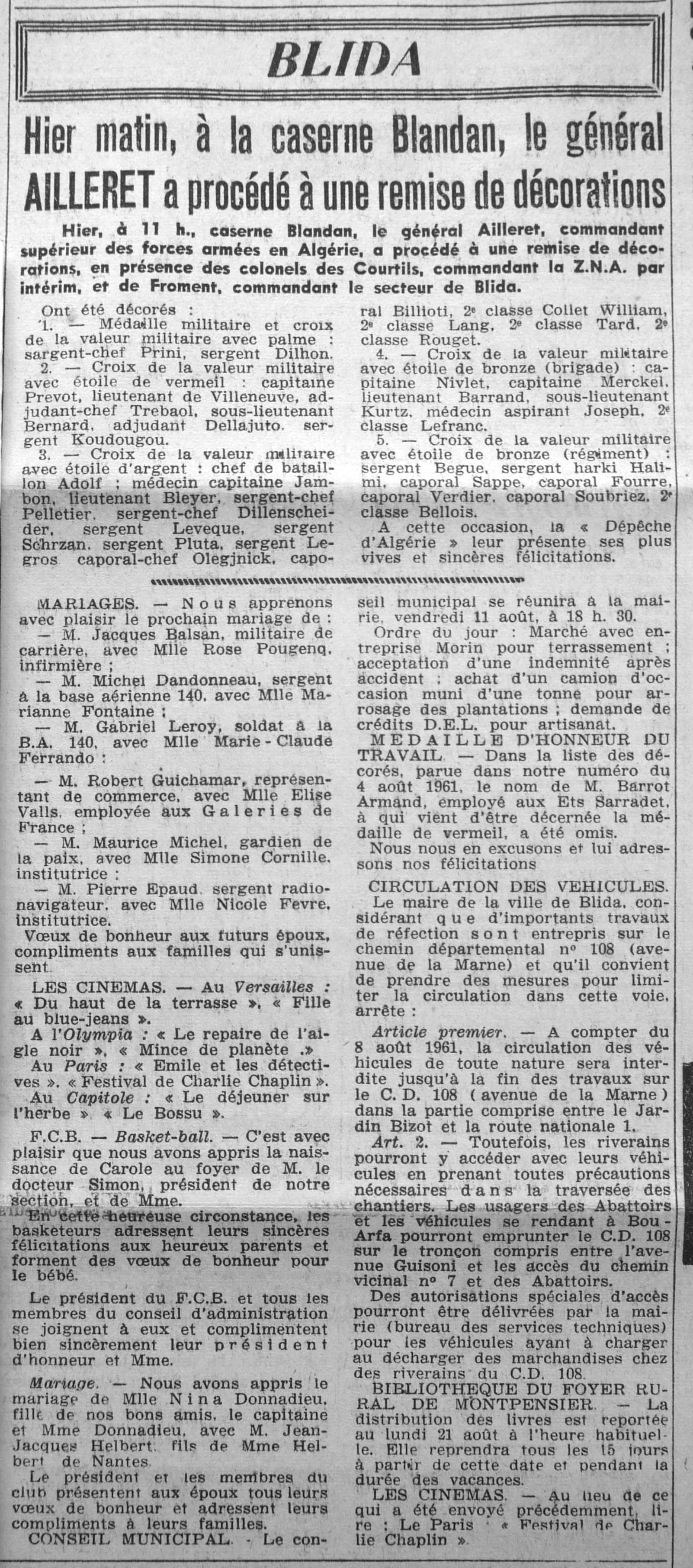 ANNEE 1961 Echos de BLIDA tirés de l'ECHO d'ALGER (janvier-avril) et de la Dépêche Quotidienne (mai-décembre) |