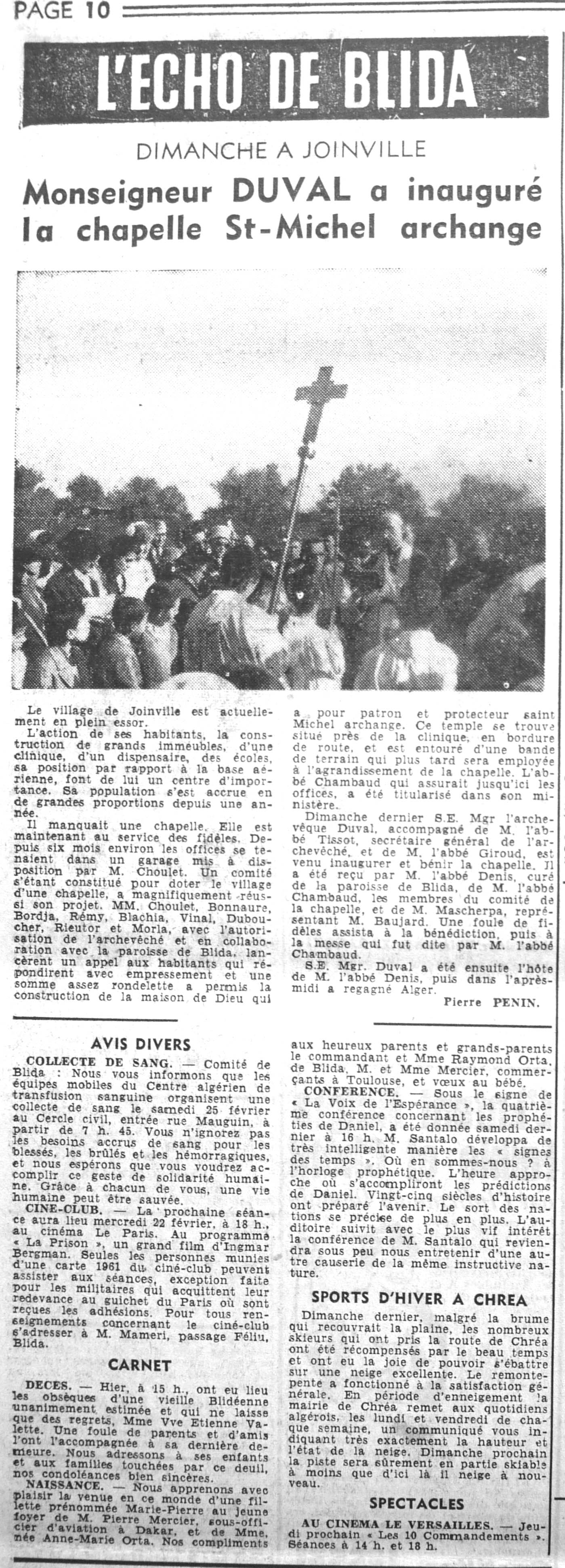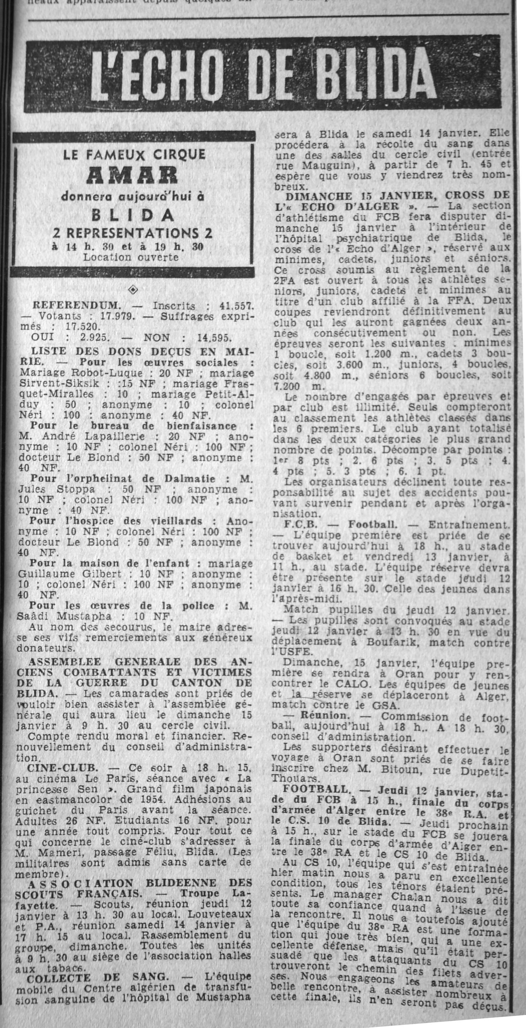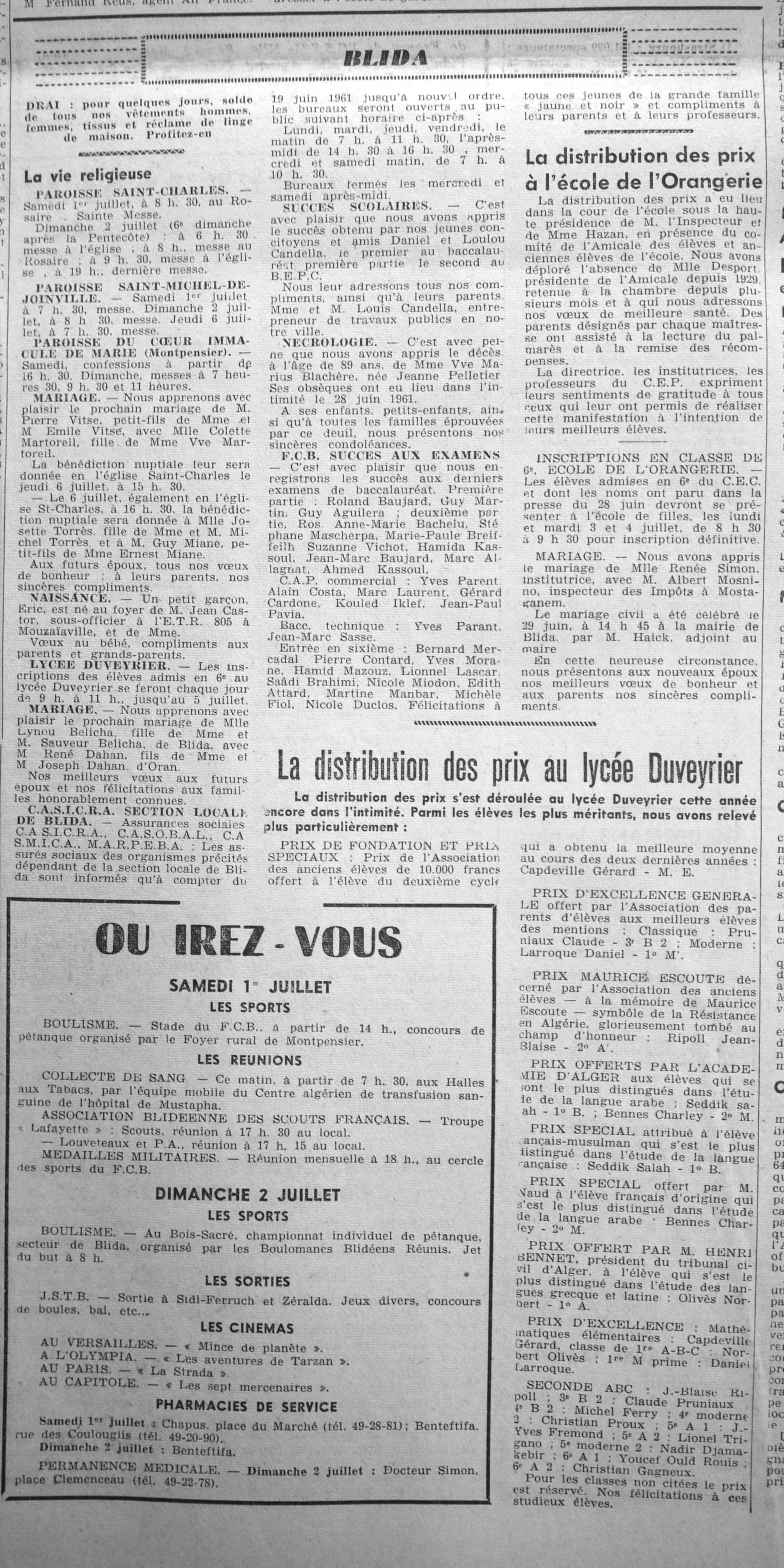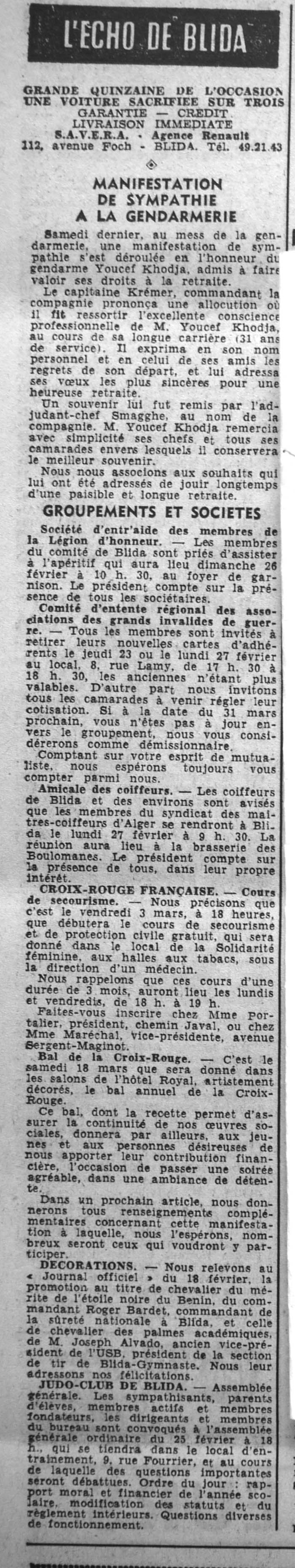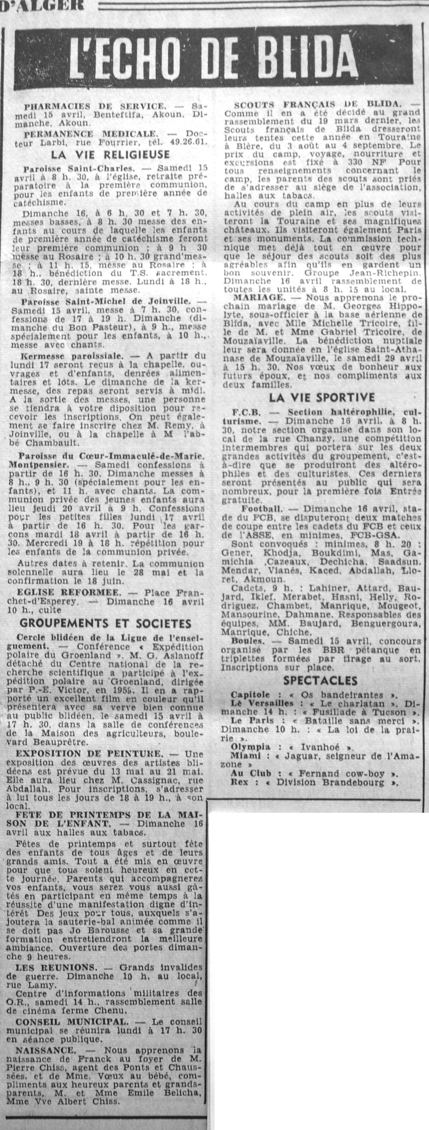 ANNEE 1961 Echos de BLIDA tirés de l'ECHO d'ALGER (janvier-avril) et de la Dépêche Quotidienne (mai-décembre) |