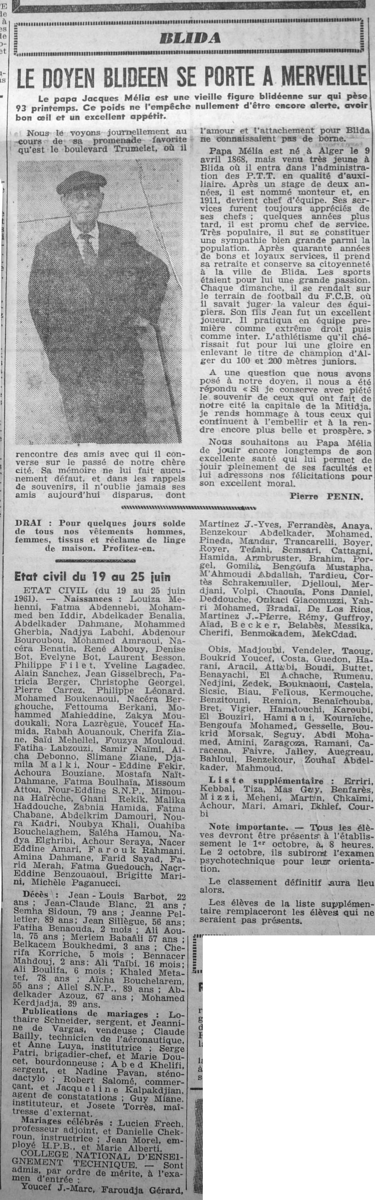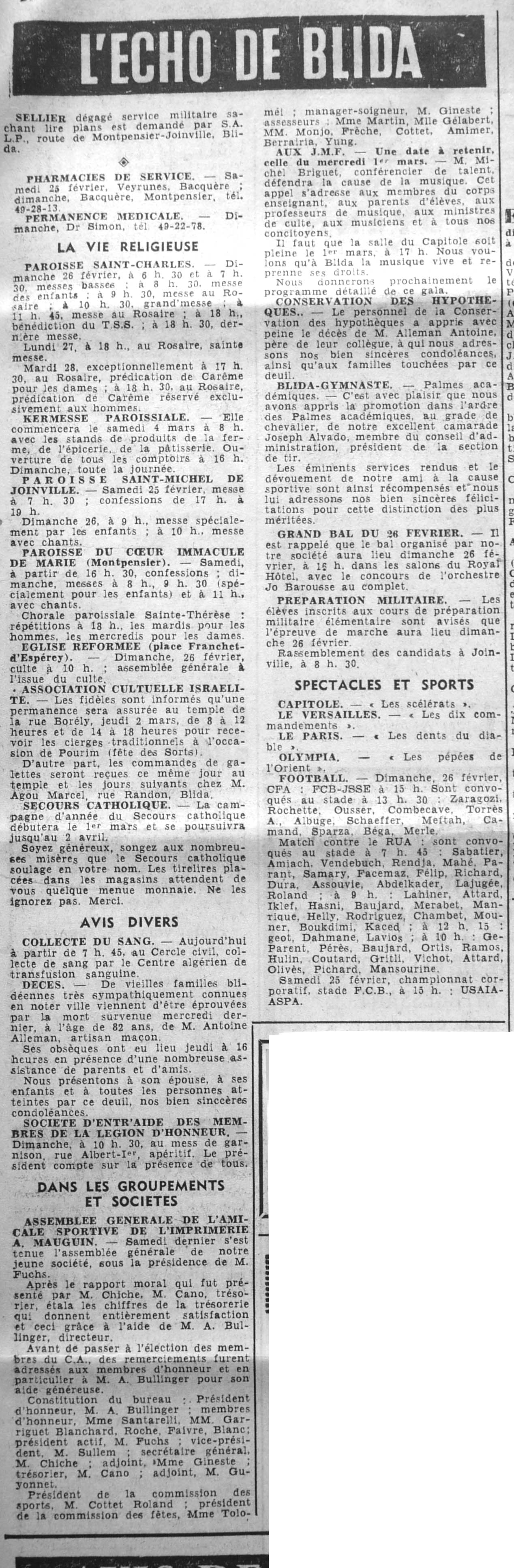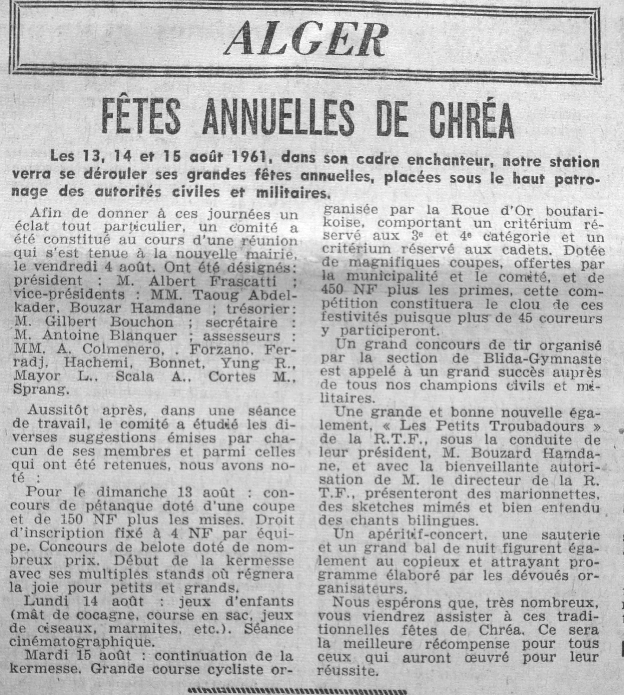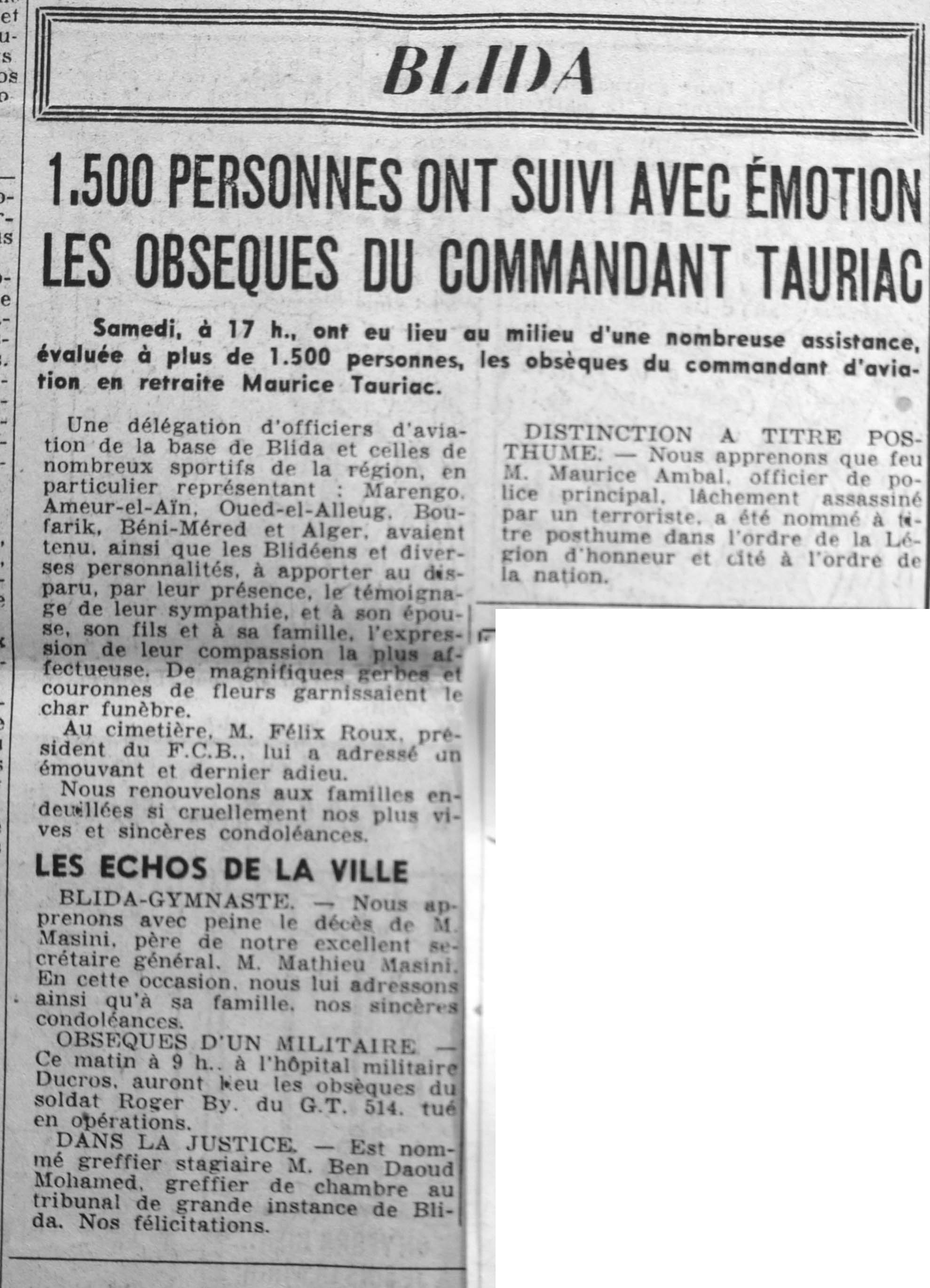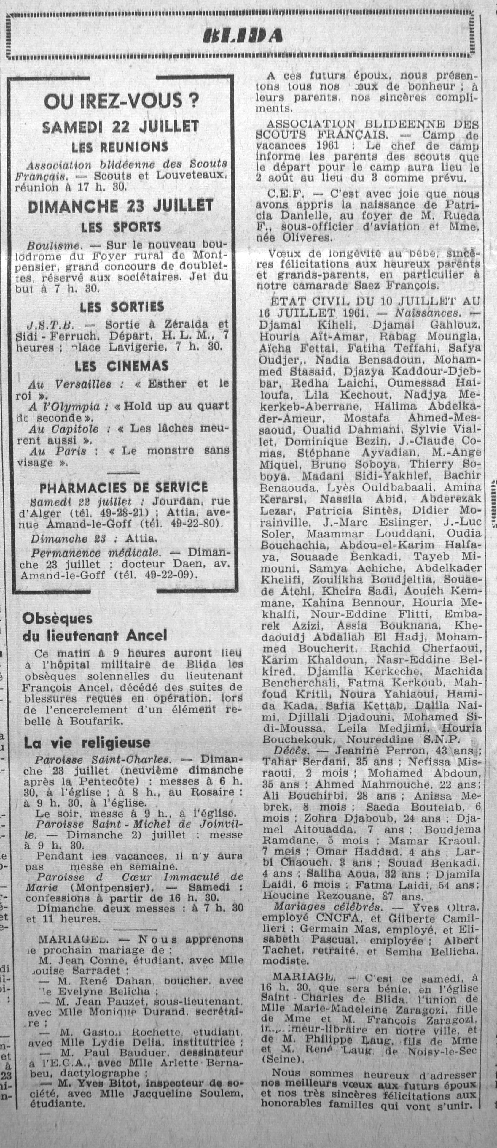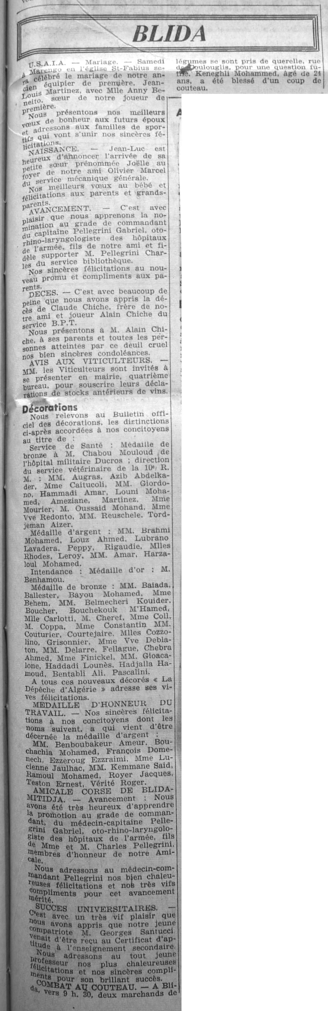 ANNEE 1961 Echos de BLIDA tirés de l'ECHO d'ALGER (janvier-avril) et de la Dépêche Quotidienne (mai-décembre) |