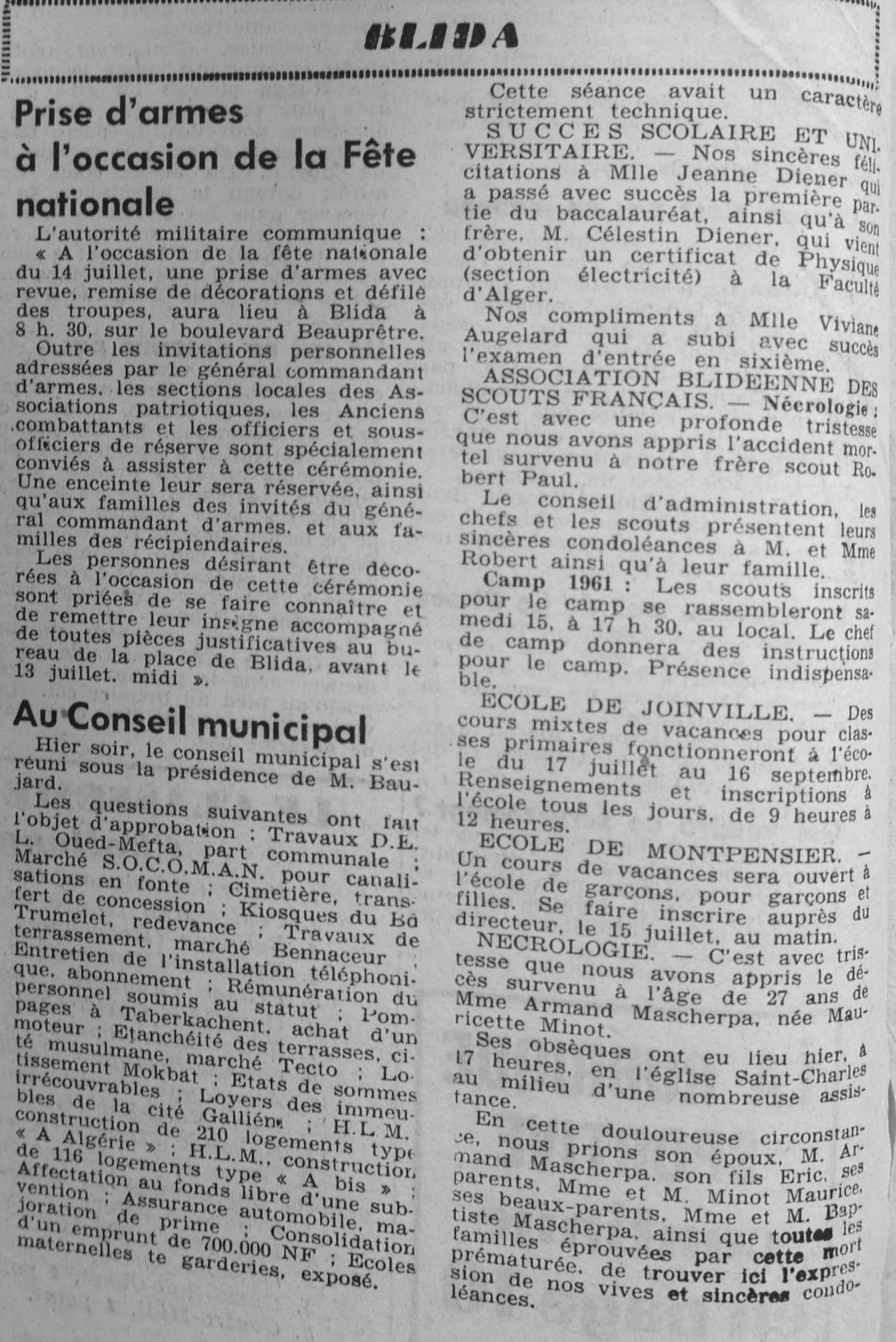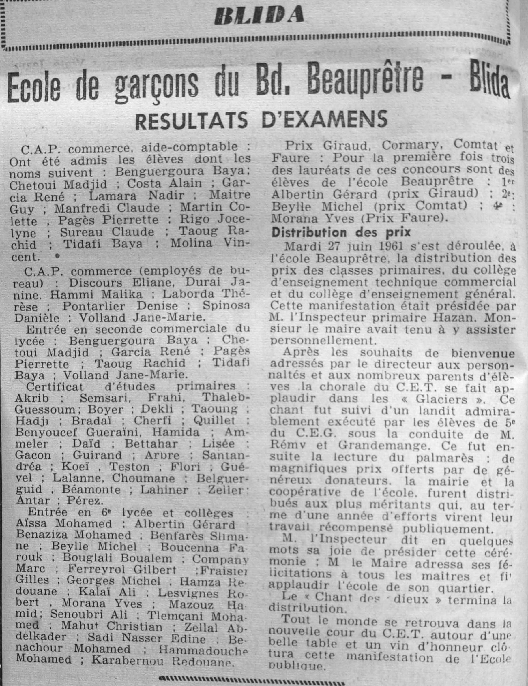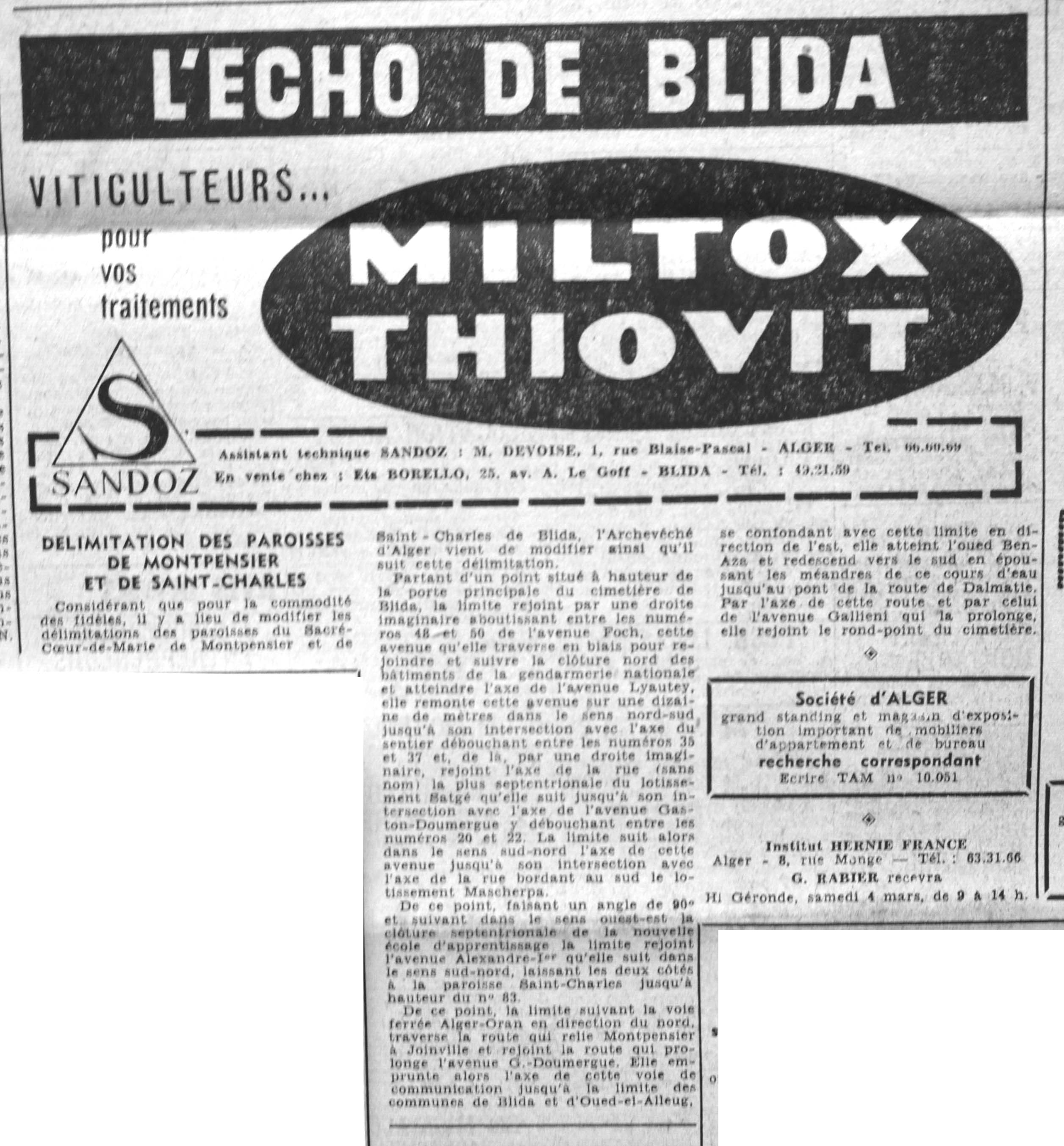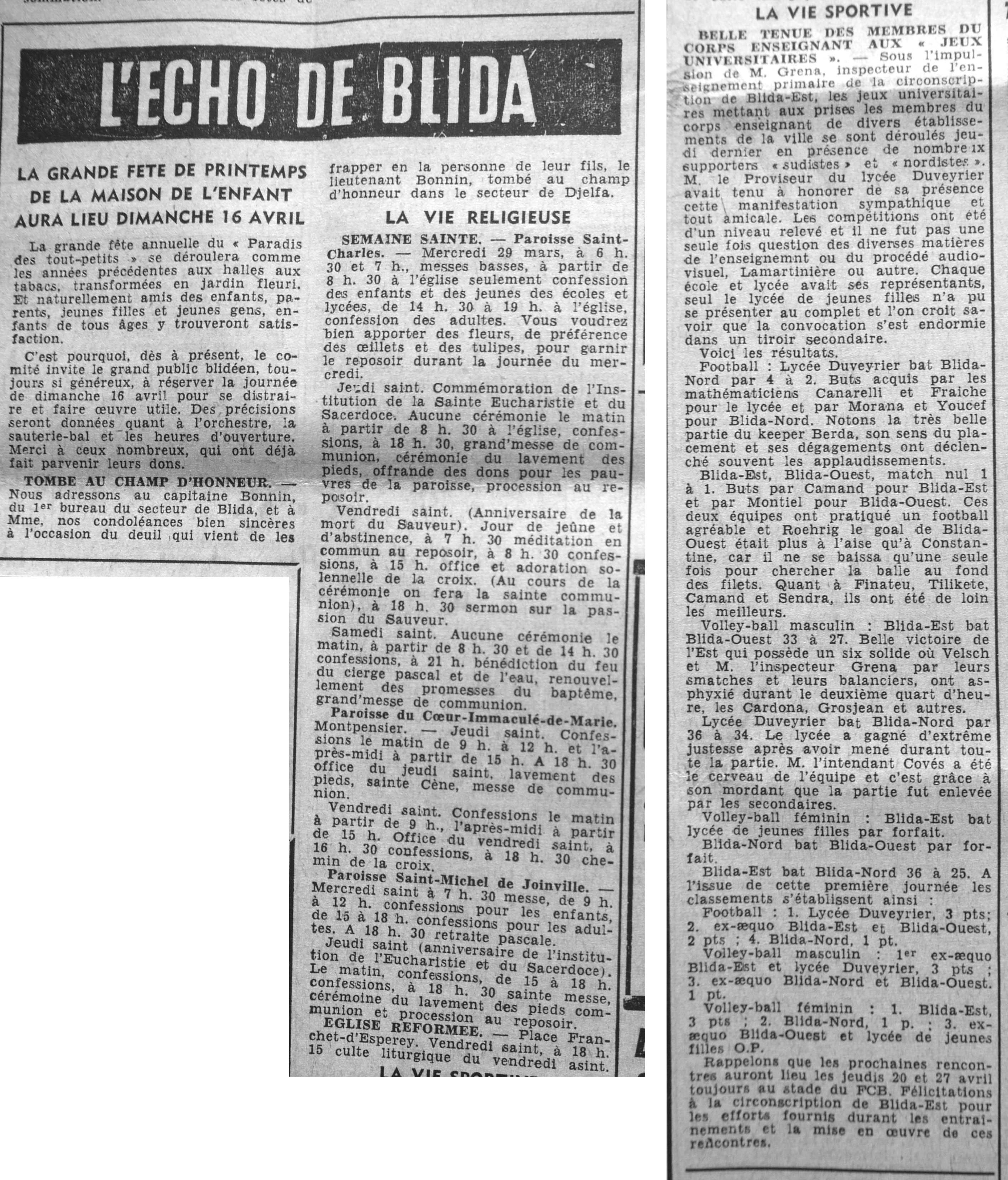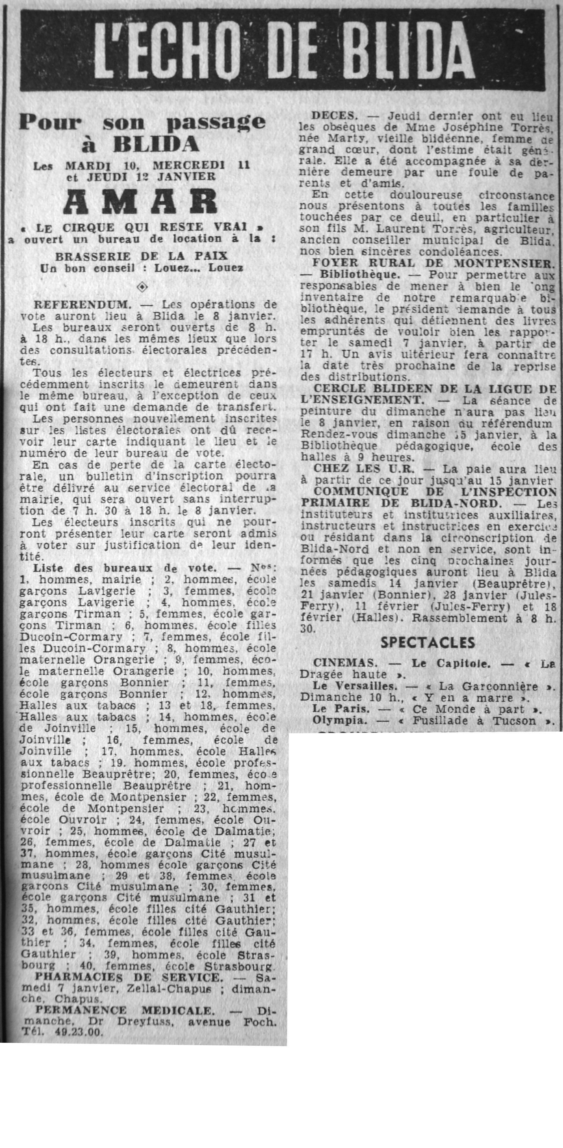 ANNEE 1961 Echos de BLIDA tirés de l'ECHO d'ALGER (janvier-avril) et de la Dépêche Quotidienne (mai-décembre) |