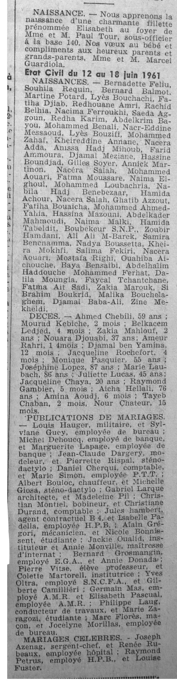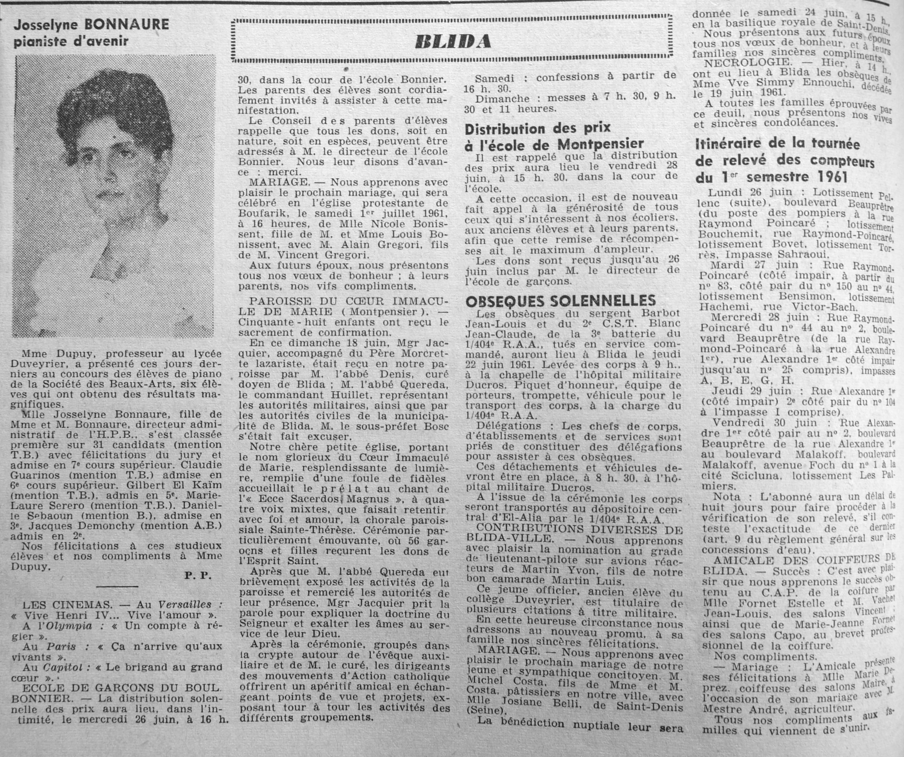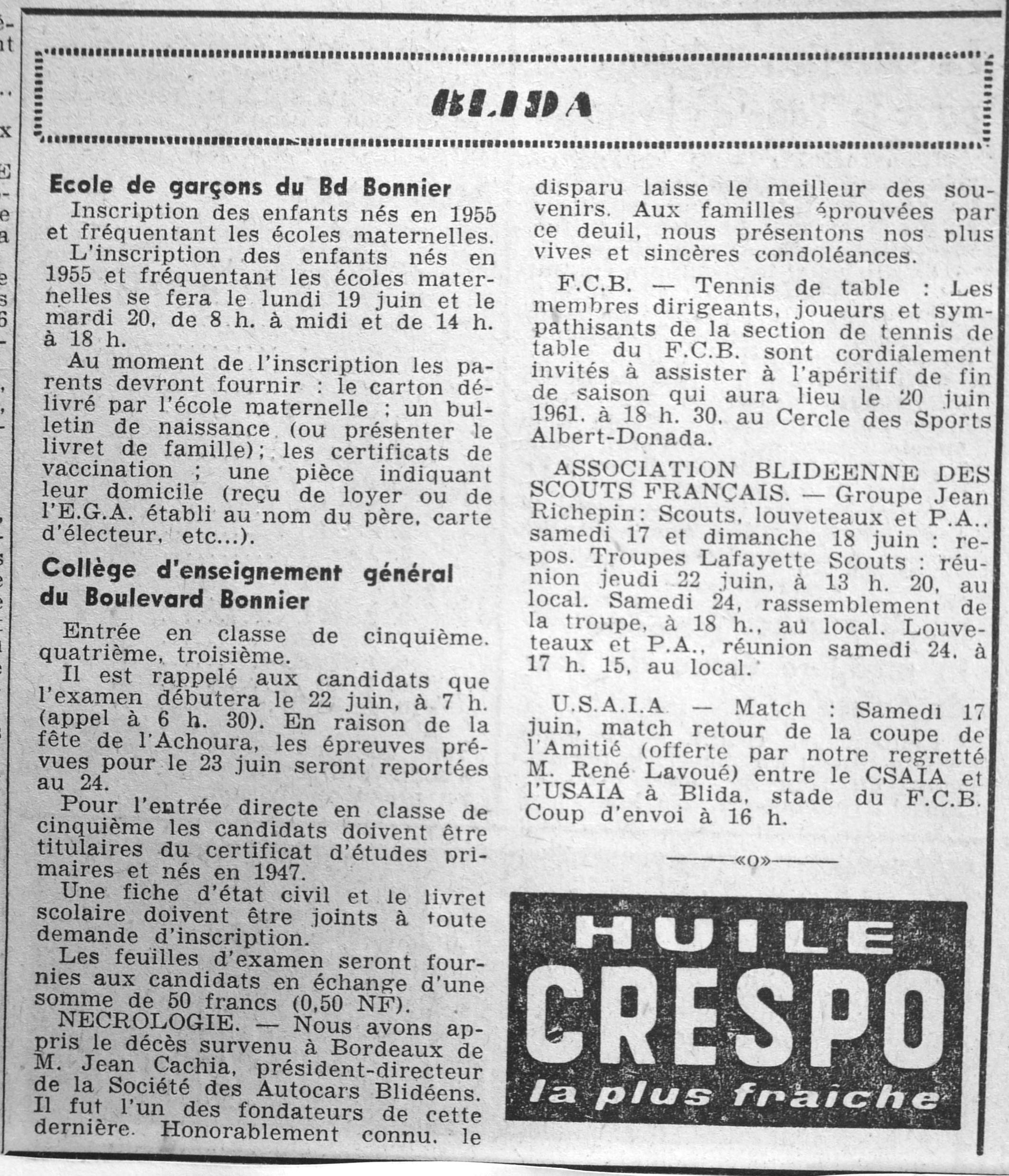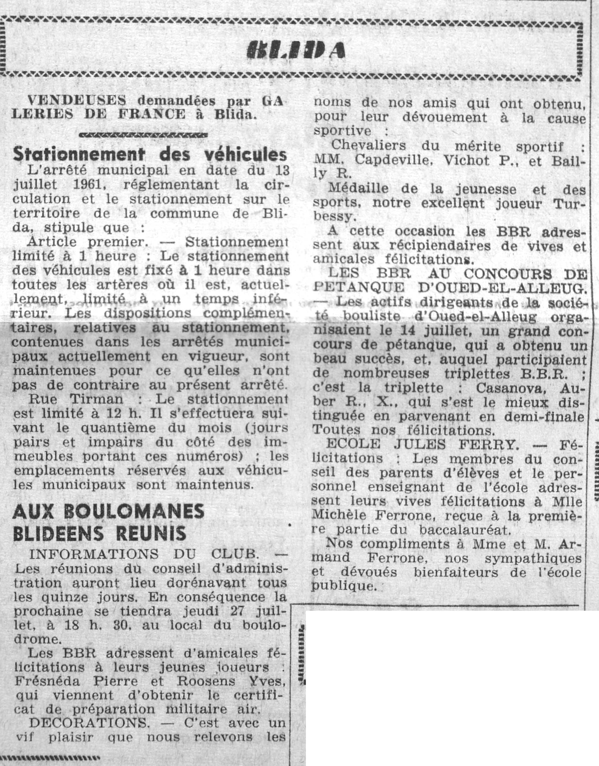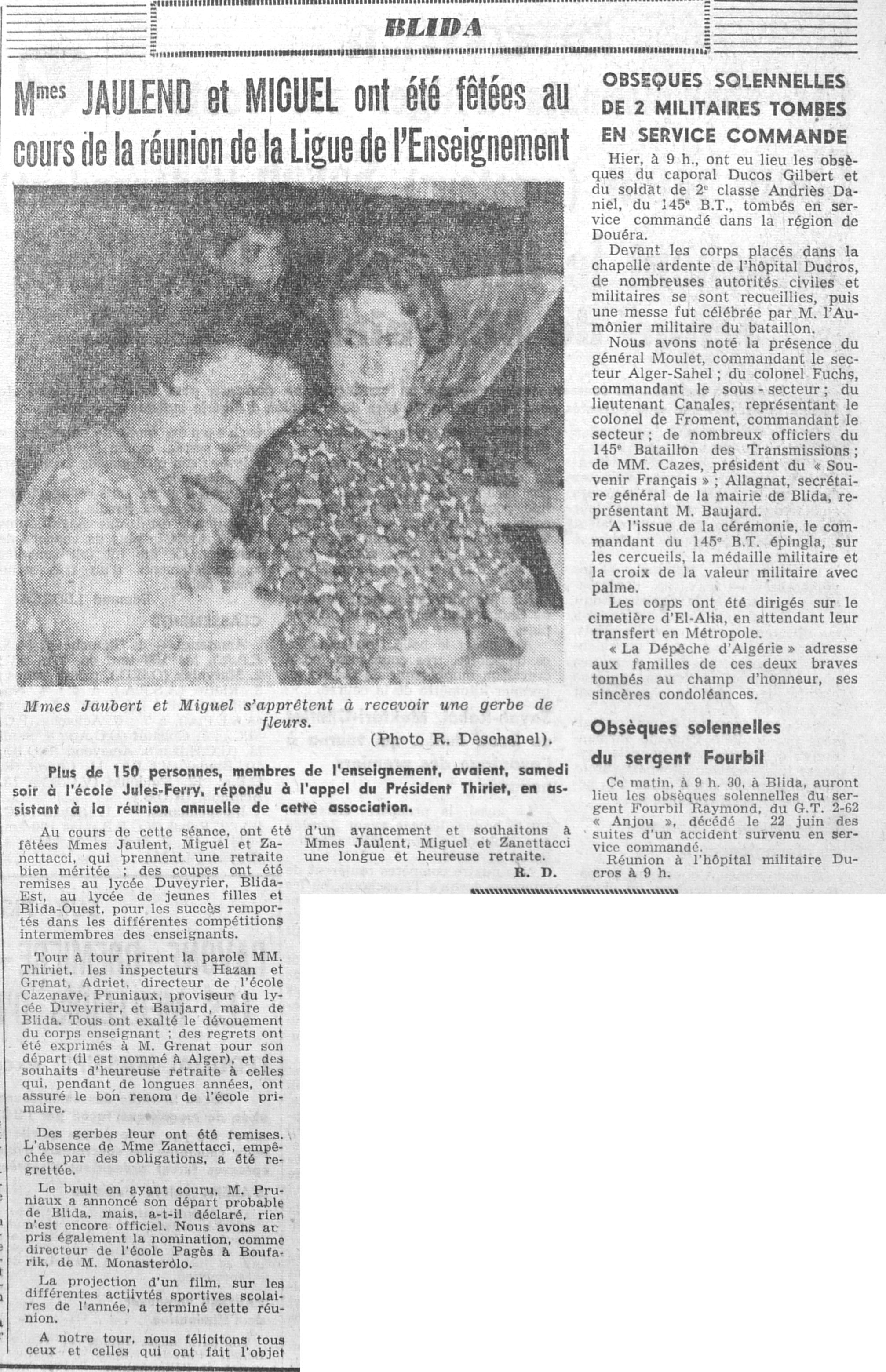 ANNEE 1961 Echos de BLIDA tirés de l'ECHO d'ALGER (janvier-avril) et de la Dépêche Quotidienne (mai-décembre) |