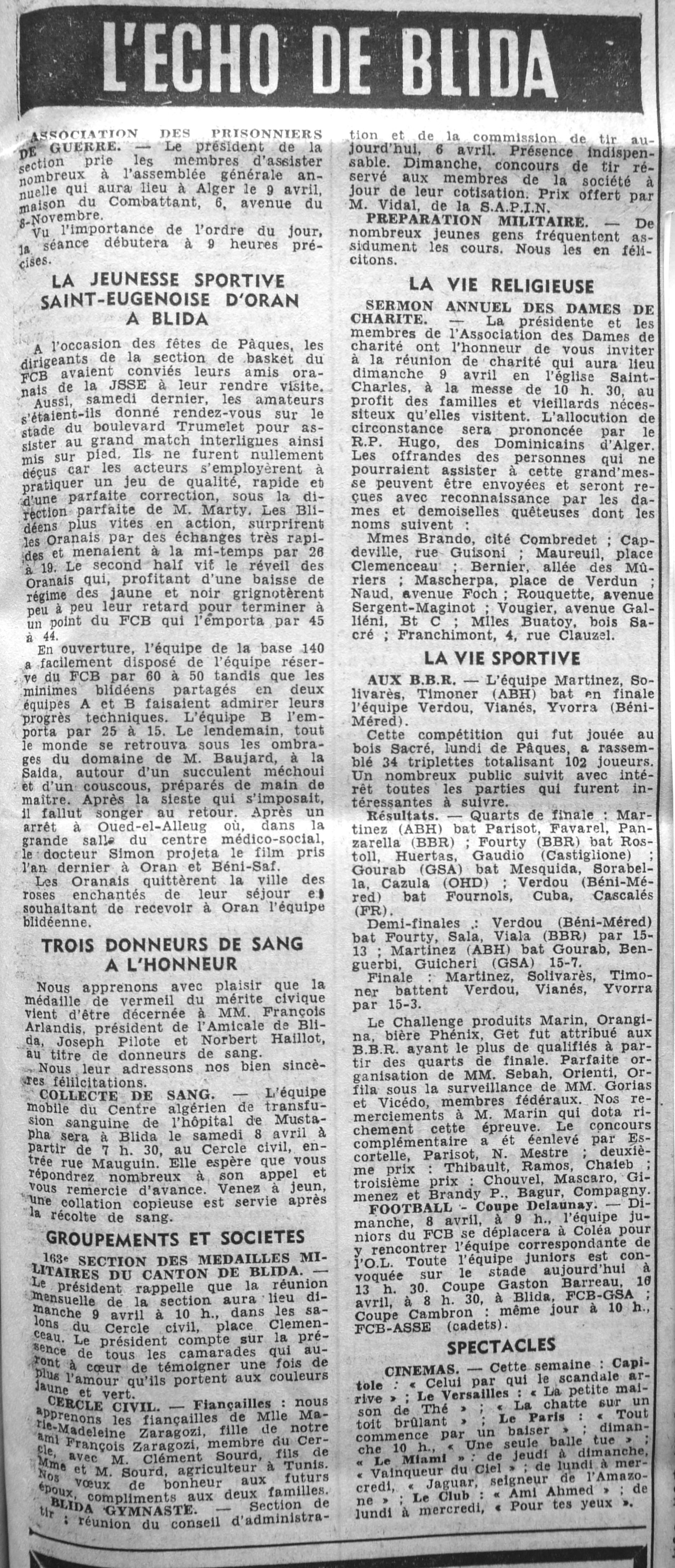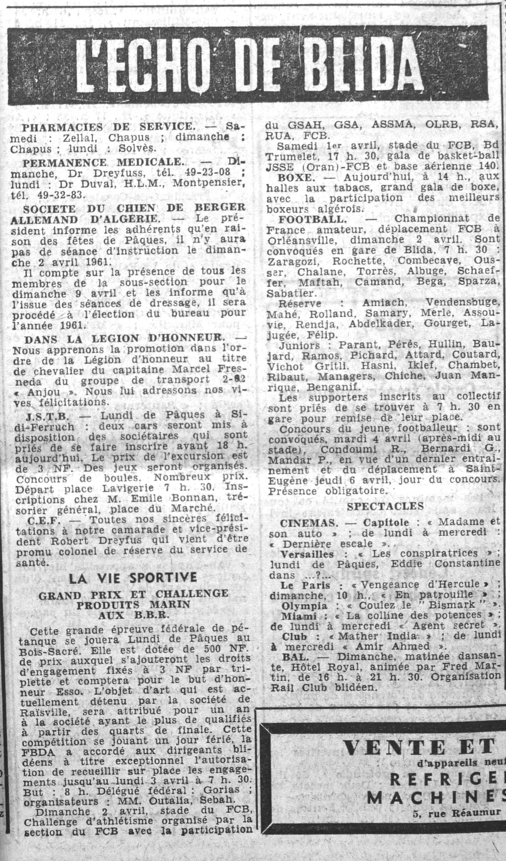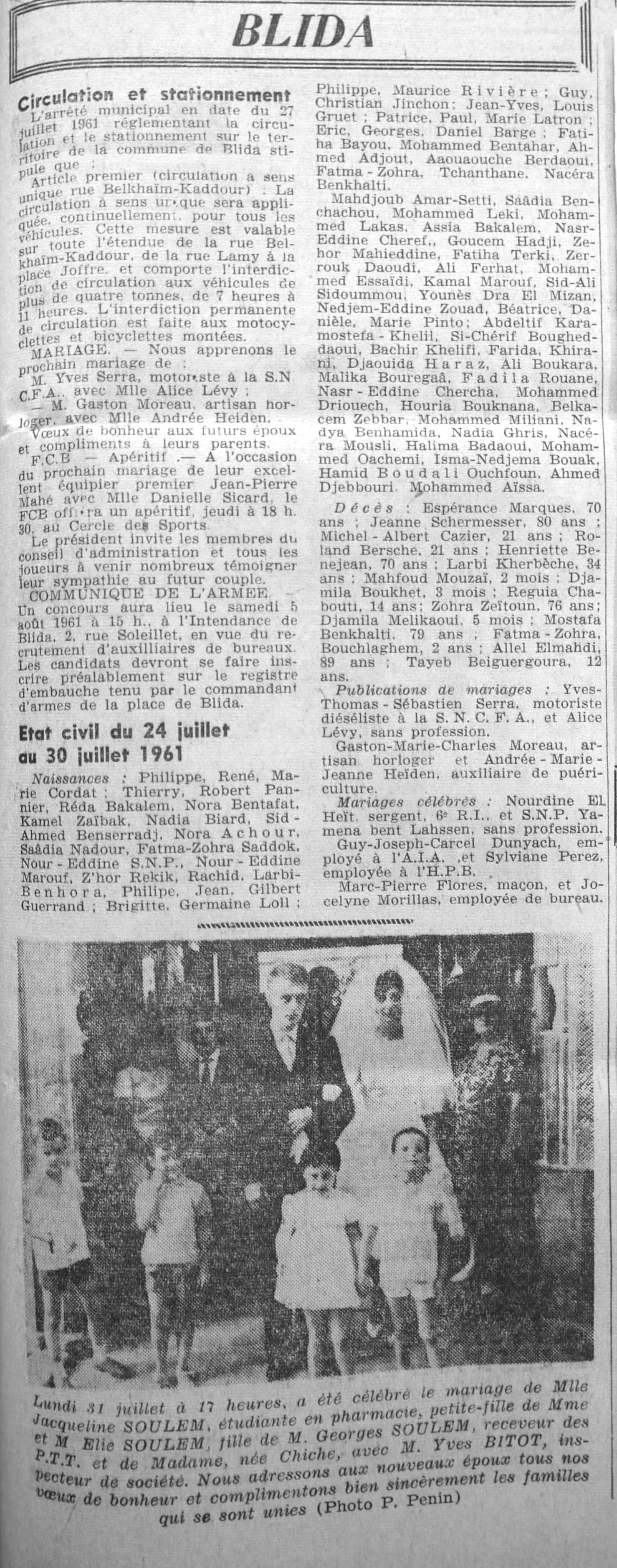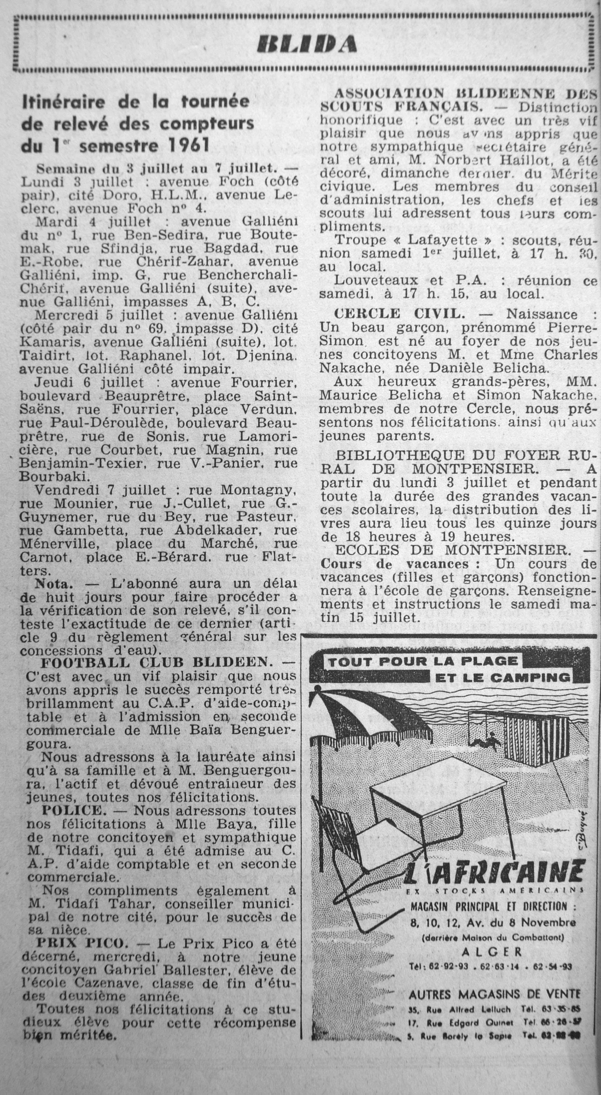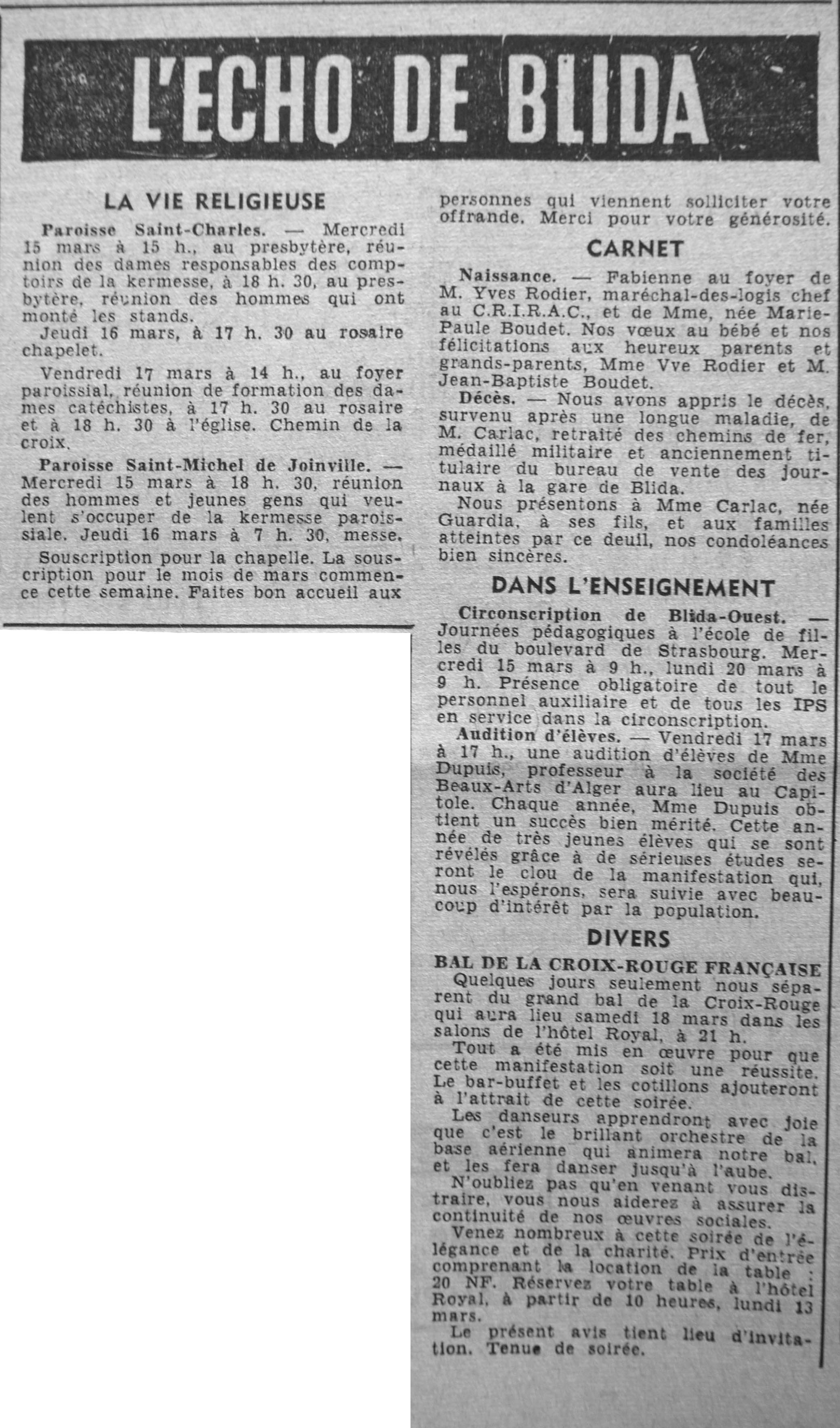 ANNEE 1961 Echos de BLIDA tirés de l'ECHO d'ALGER (janvier-avril) et de la Dépêche Quotidienne (mai-décembre) |