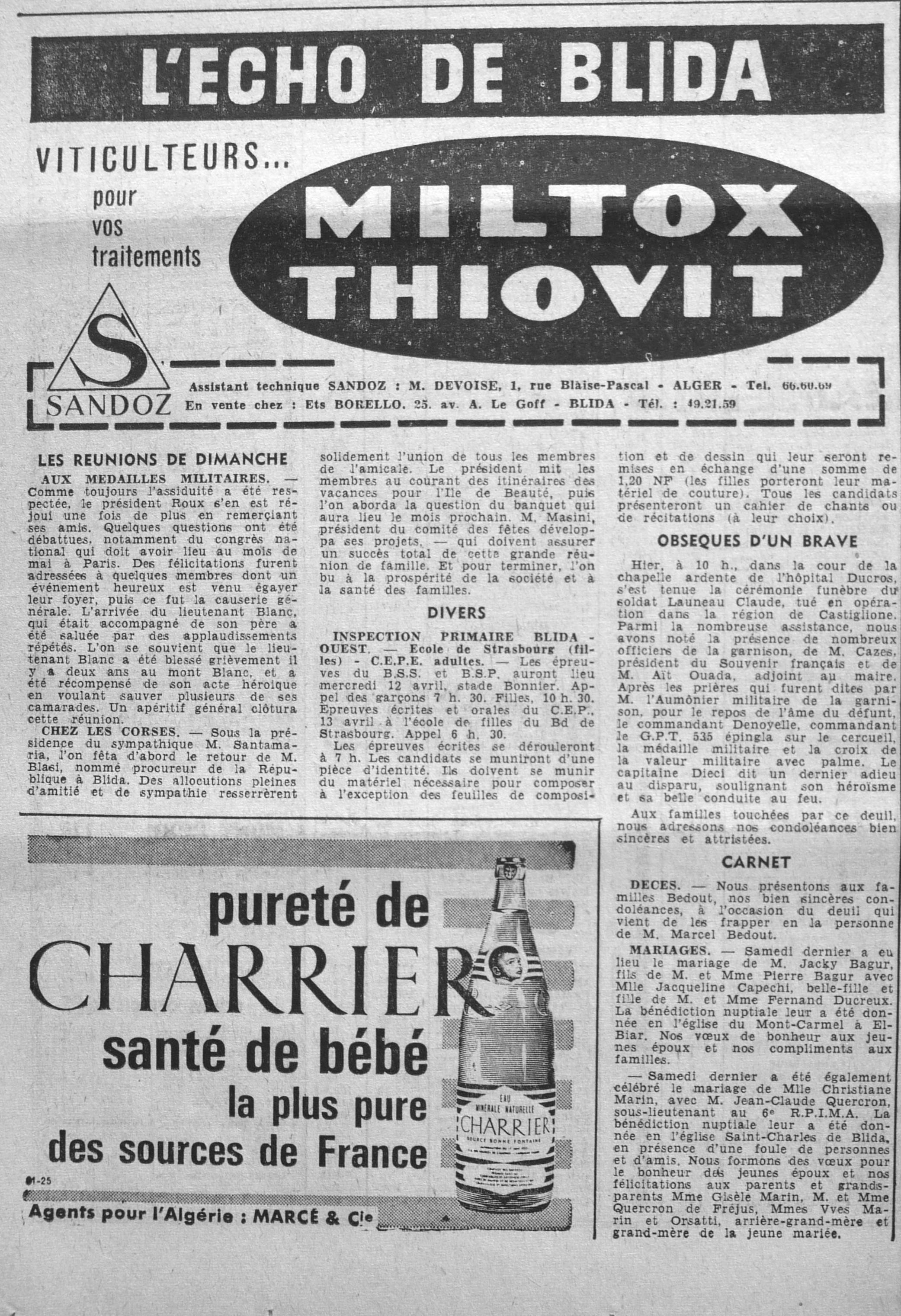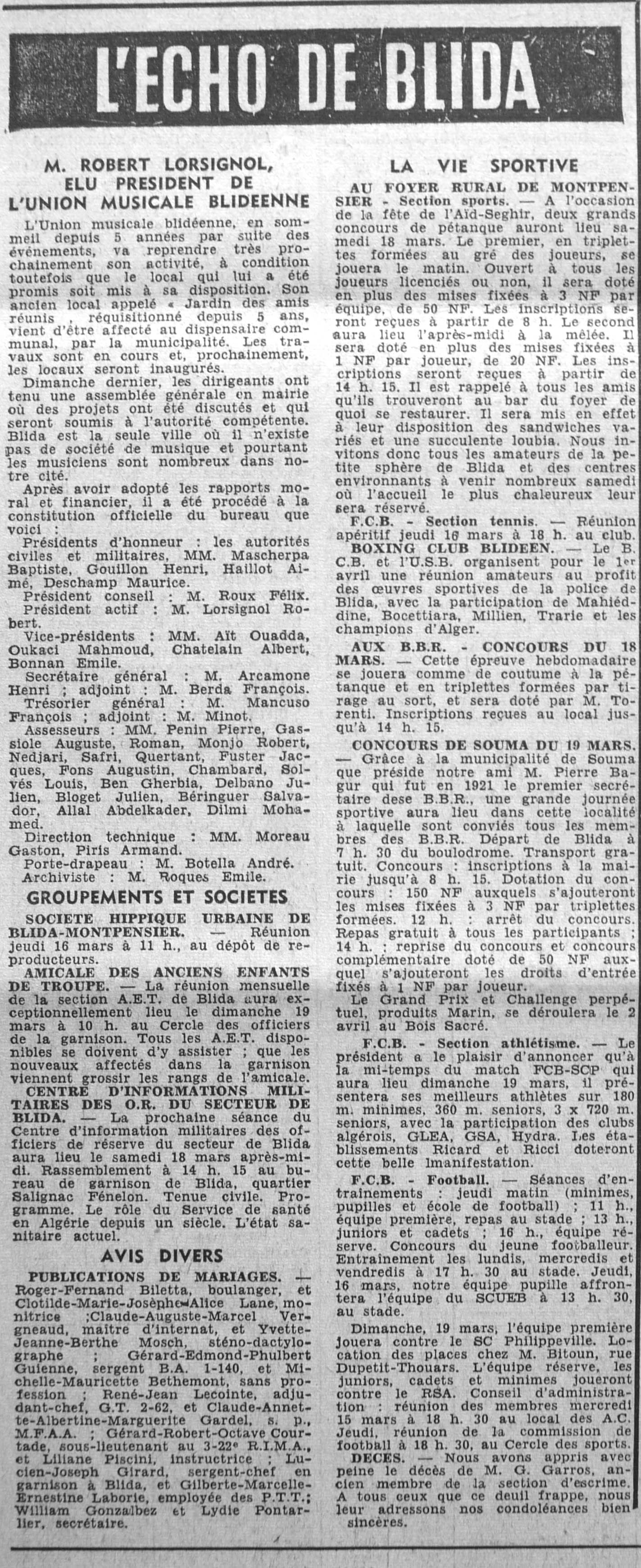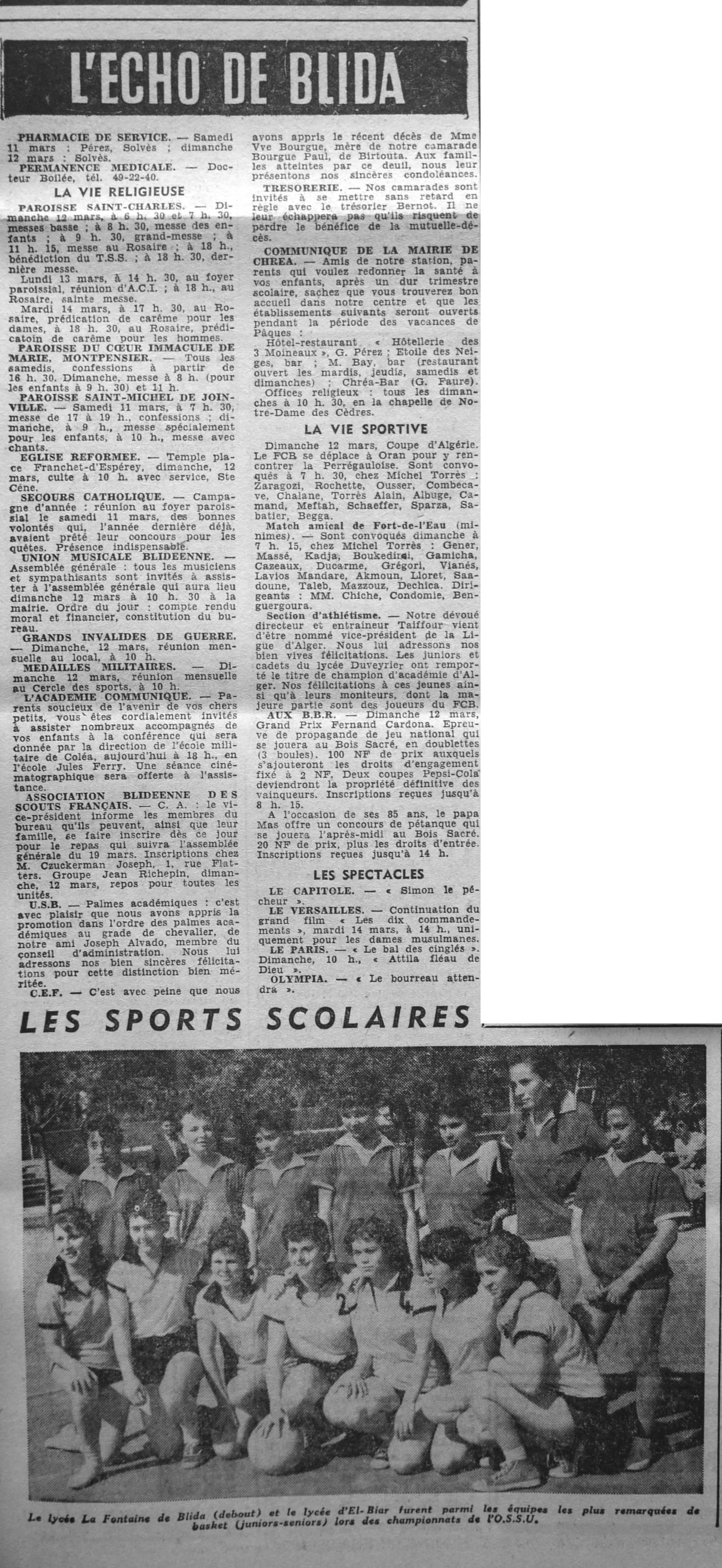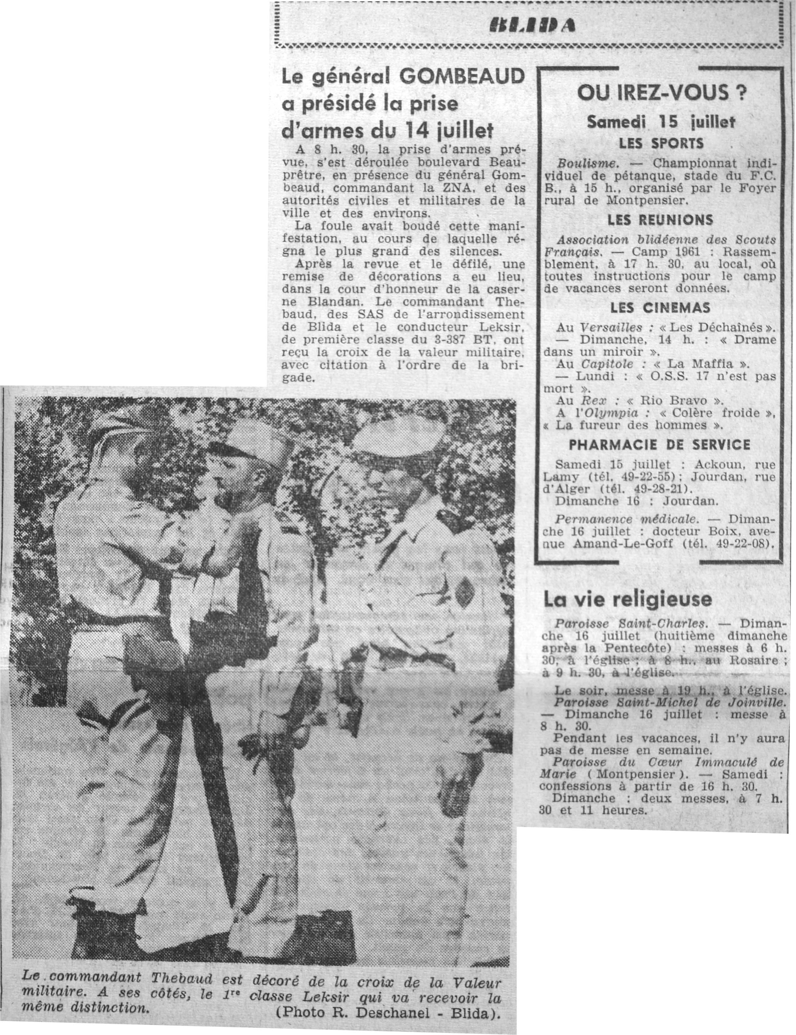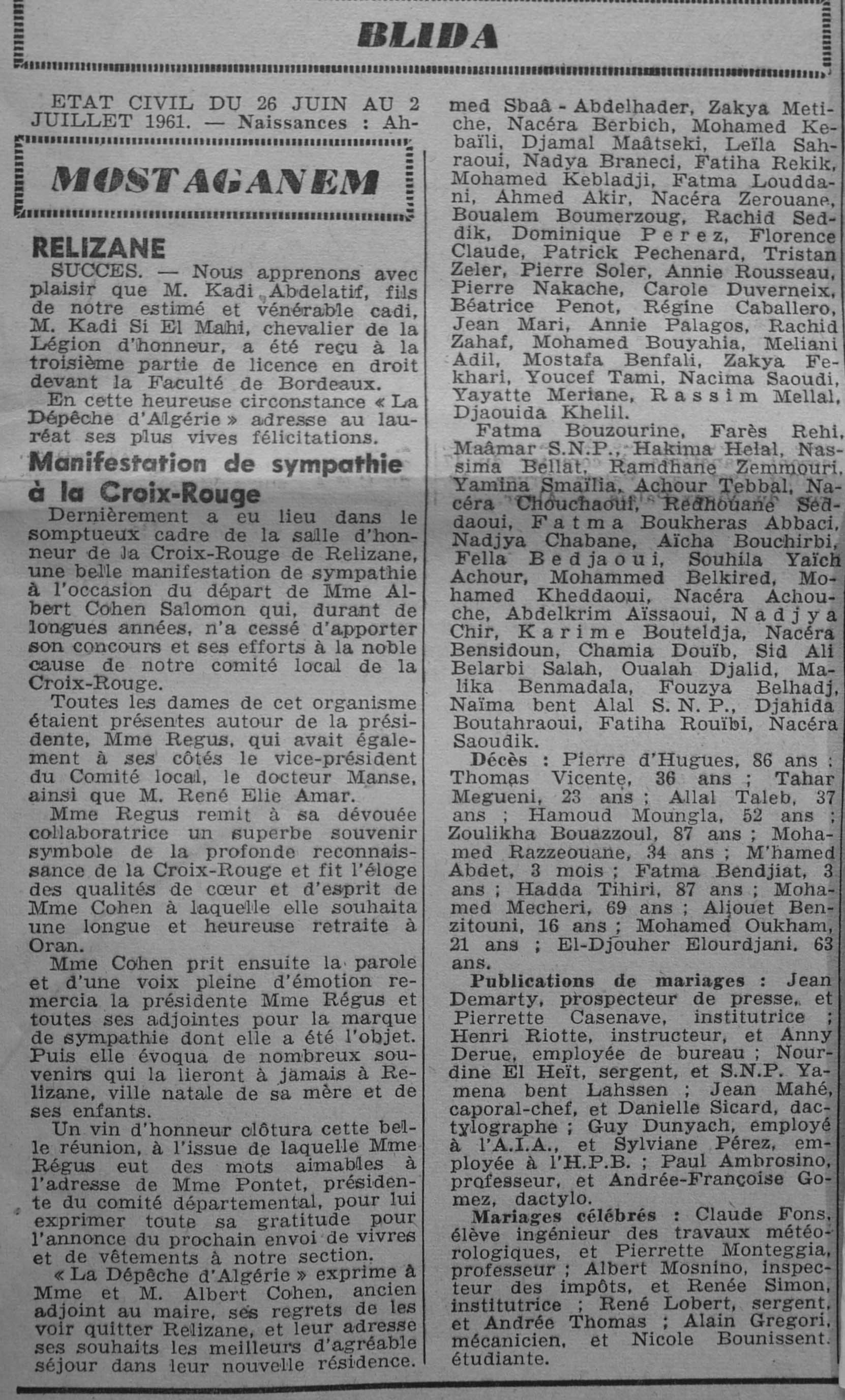 ANNEE 1961 Echos de BLIDA tirés de l'ECHO d'ALGER (janvier-avril) et de la Dépêche Quotidienne (mai-décembre) |