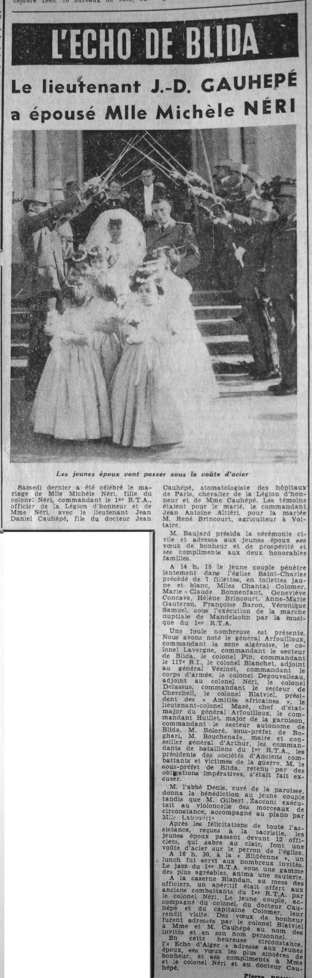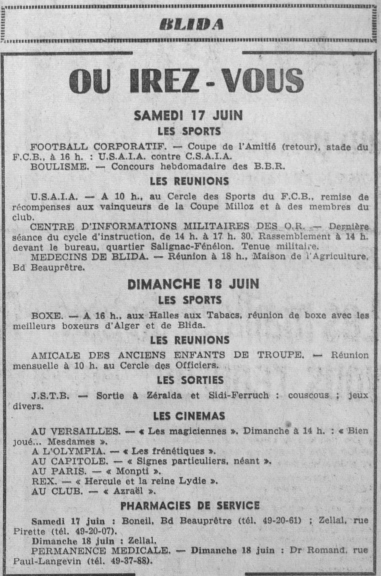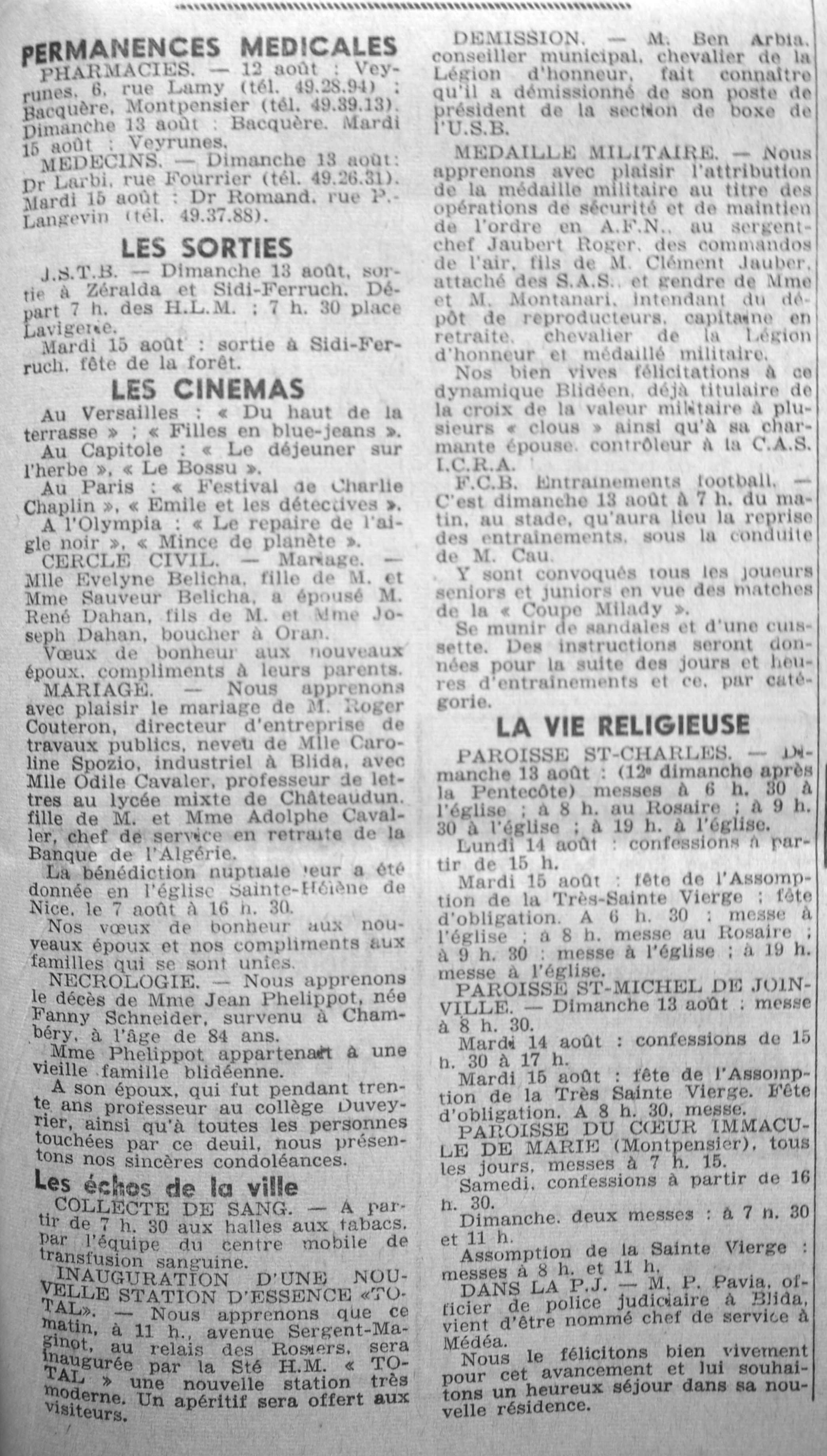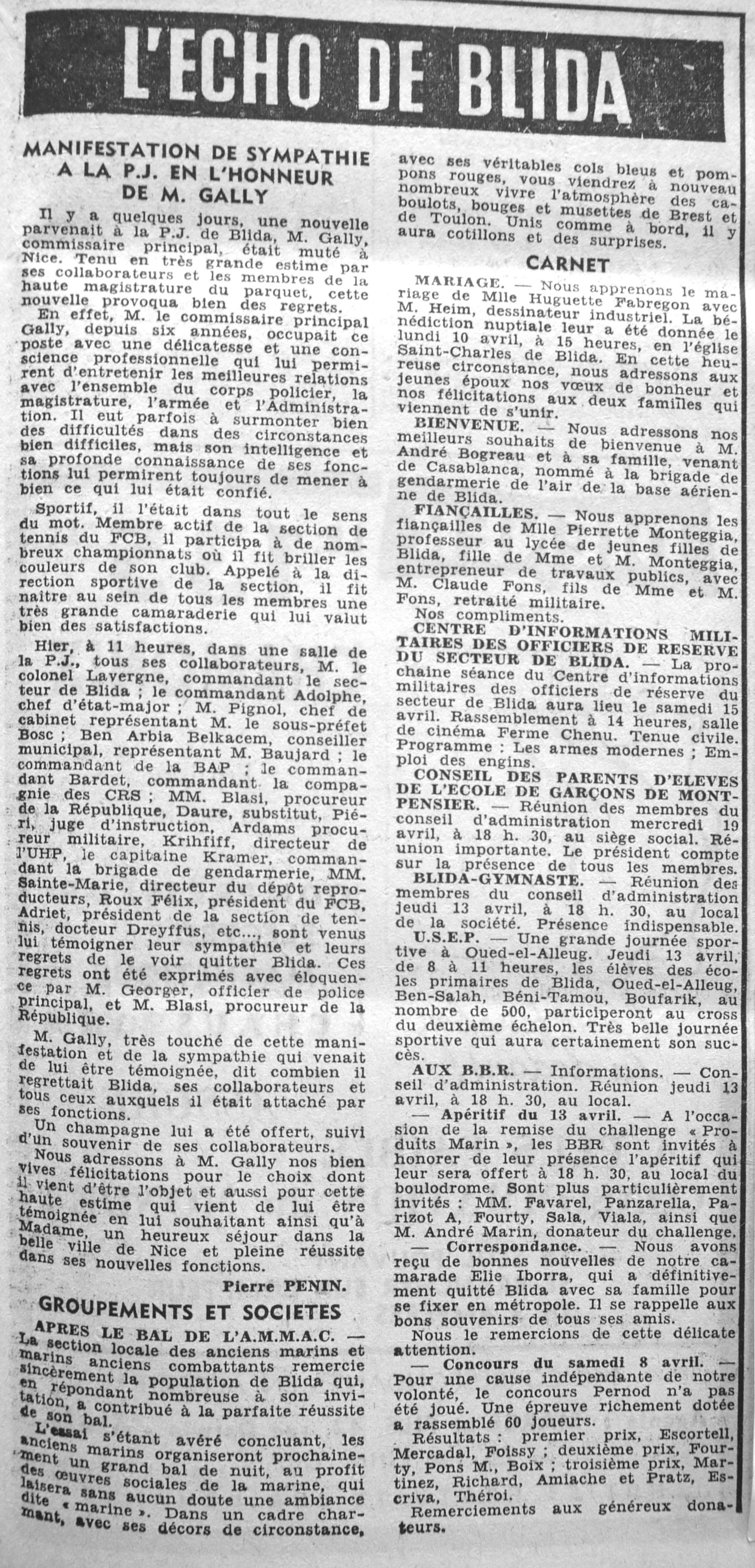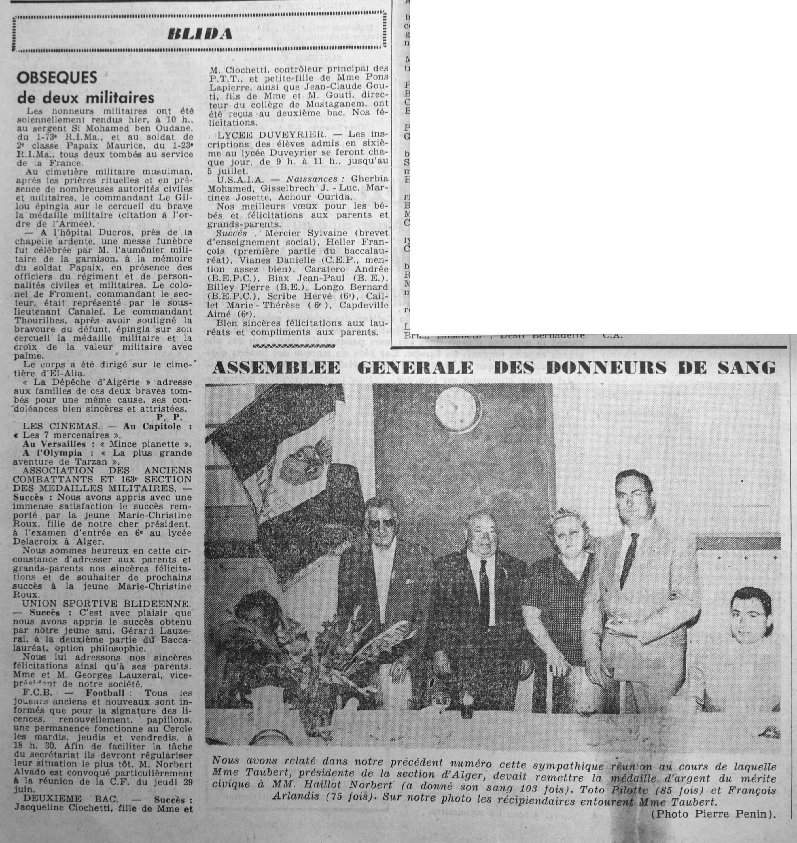 ANNEE 1961 Echos de BLIDA tirés de l'ECHO d'ALGER (janvier-avril) et de la Dépêche Quotidienne (mai-décembre) |