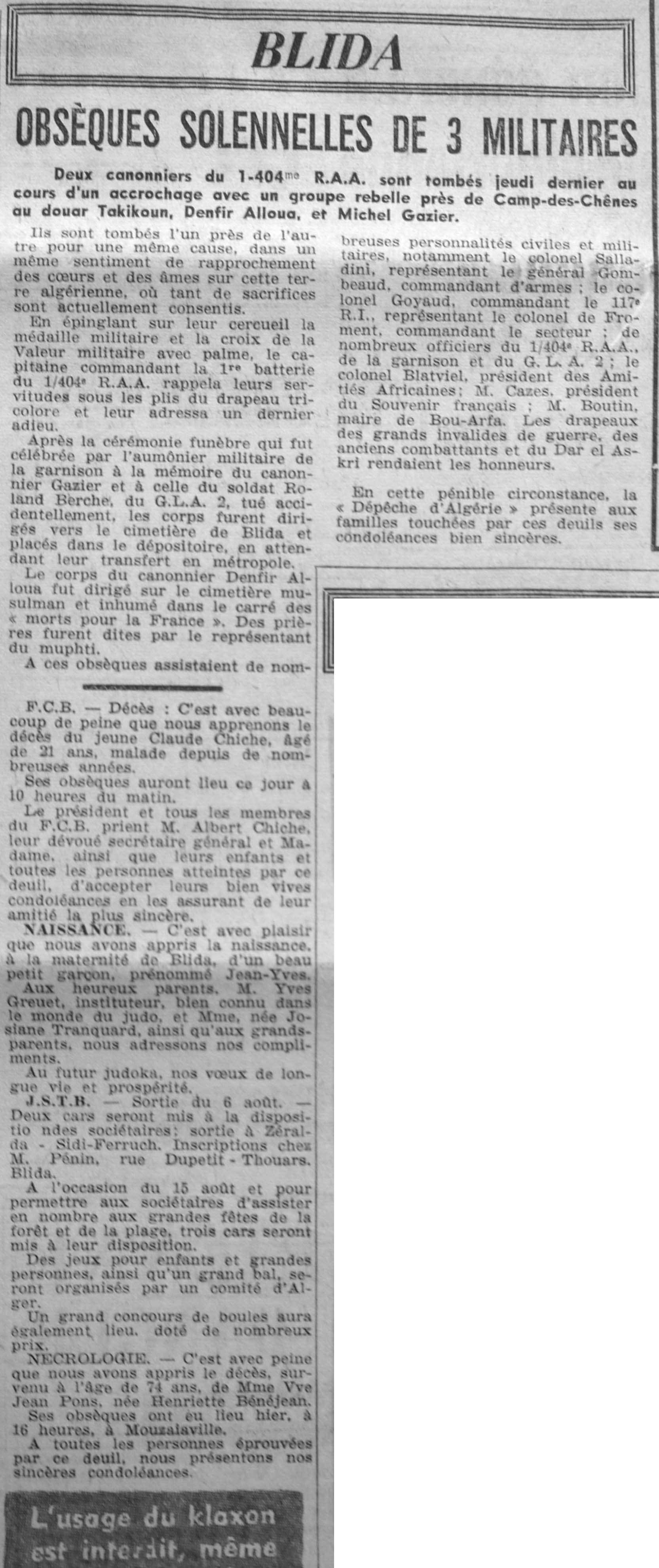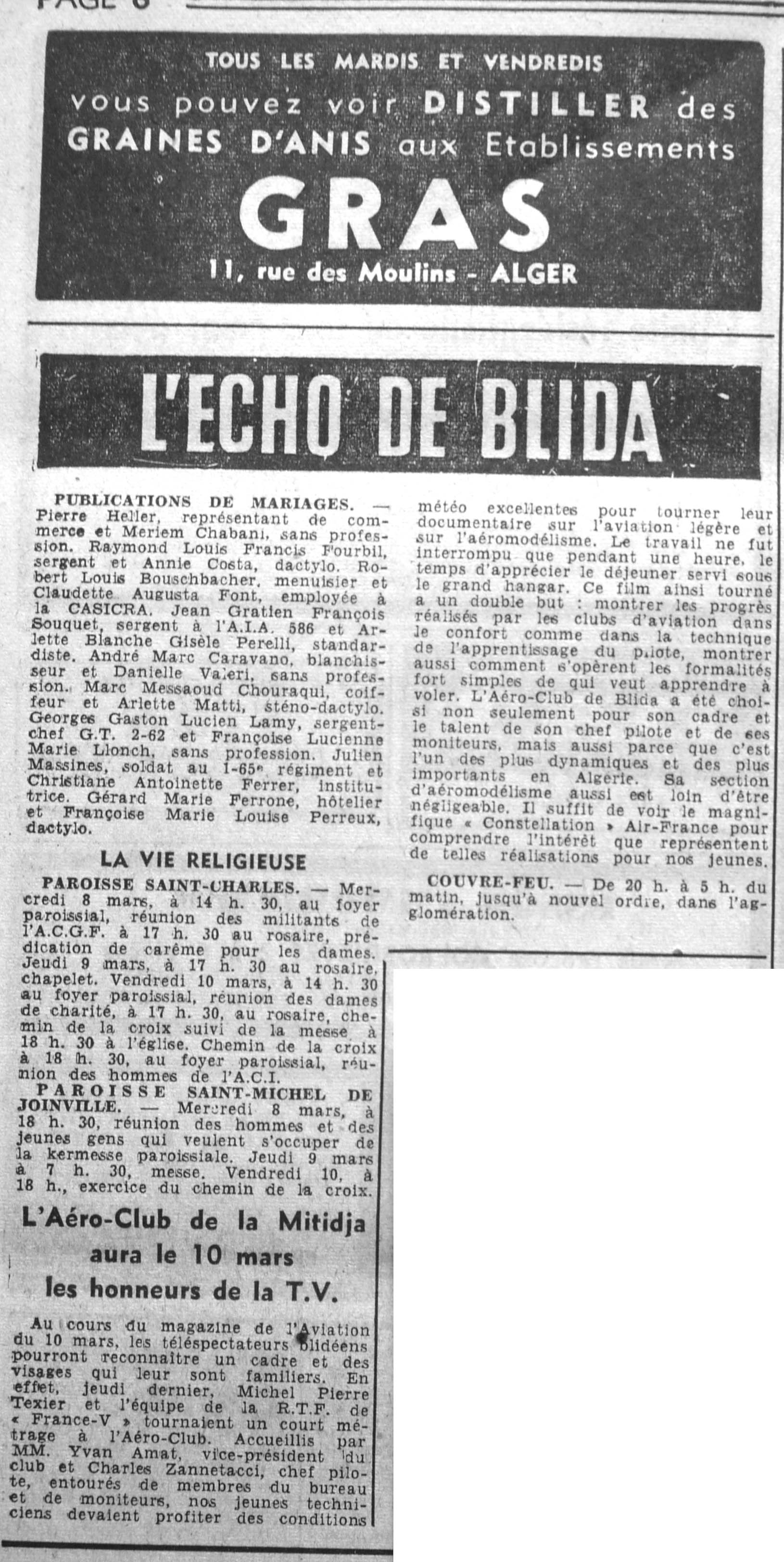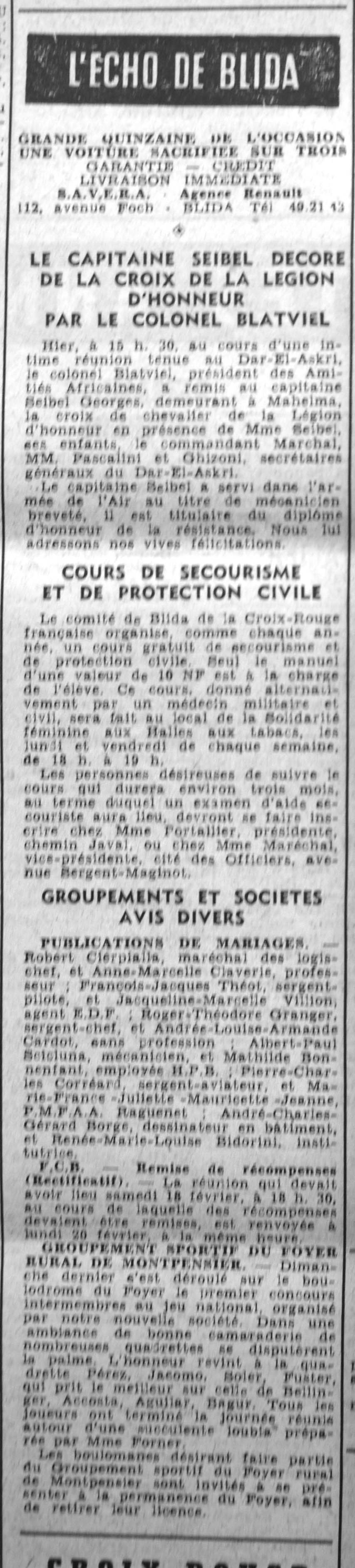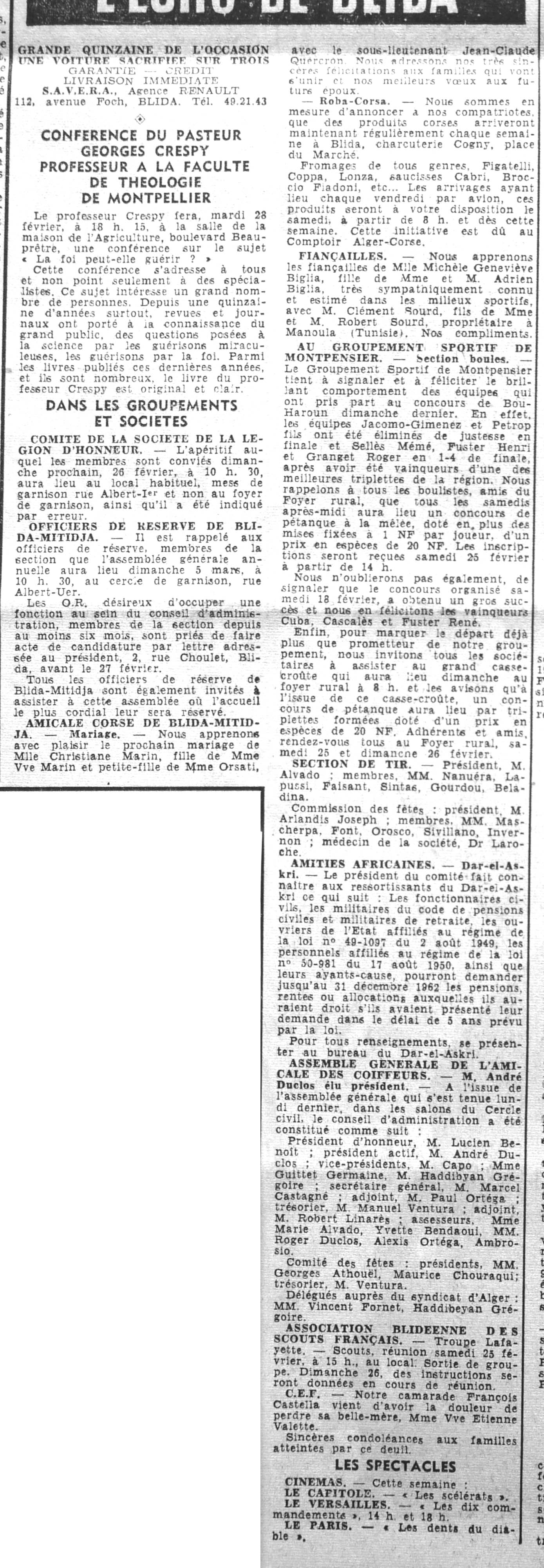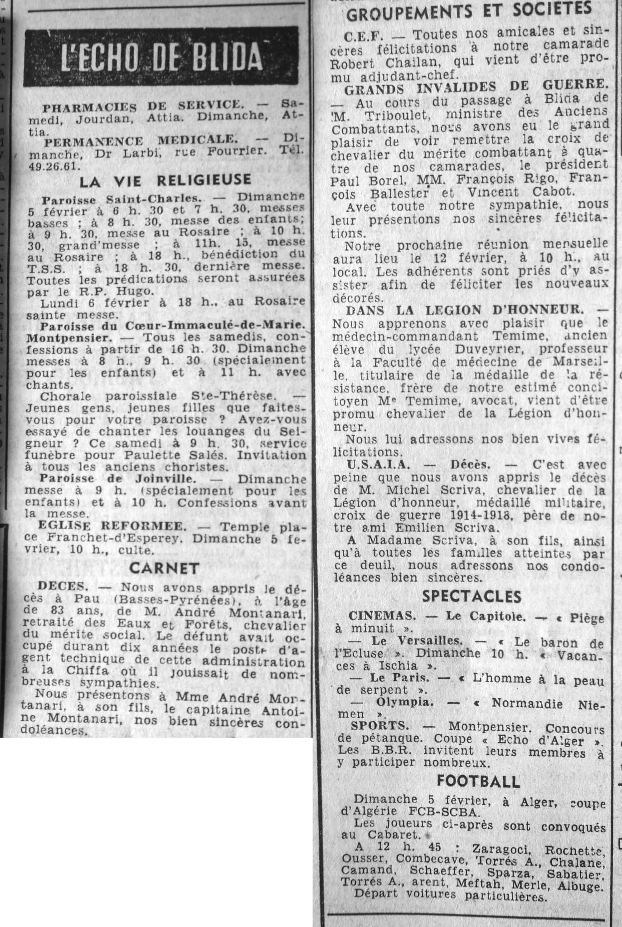 ANNEE 1961 Echos de BLIDA tirés de l'ECHO d'ALGER (janvier-avril) et de la Dépêche Quotidienne (mai-décembre) |