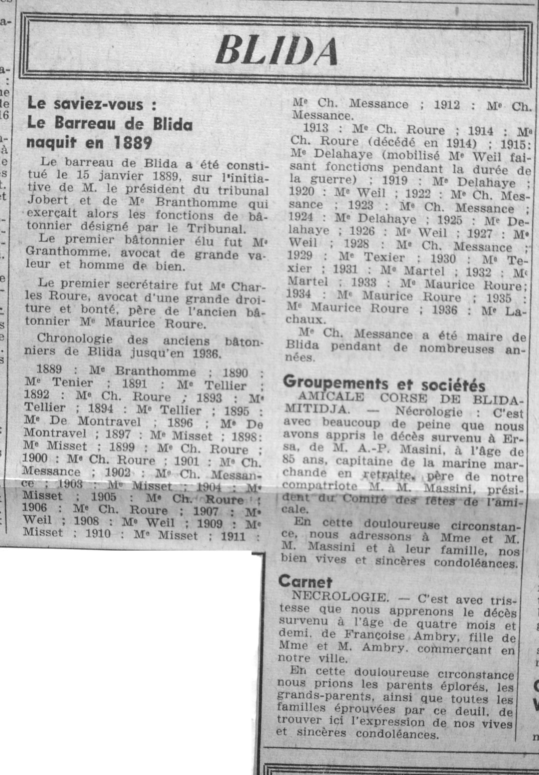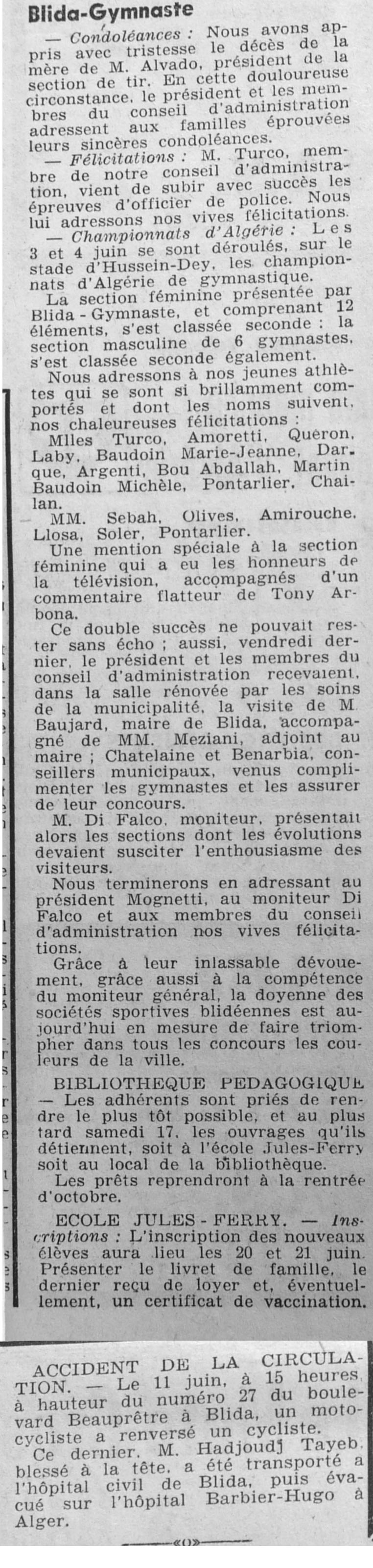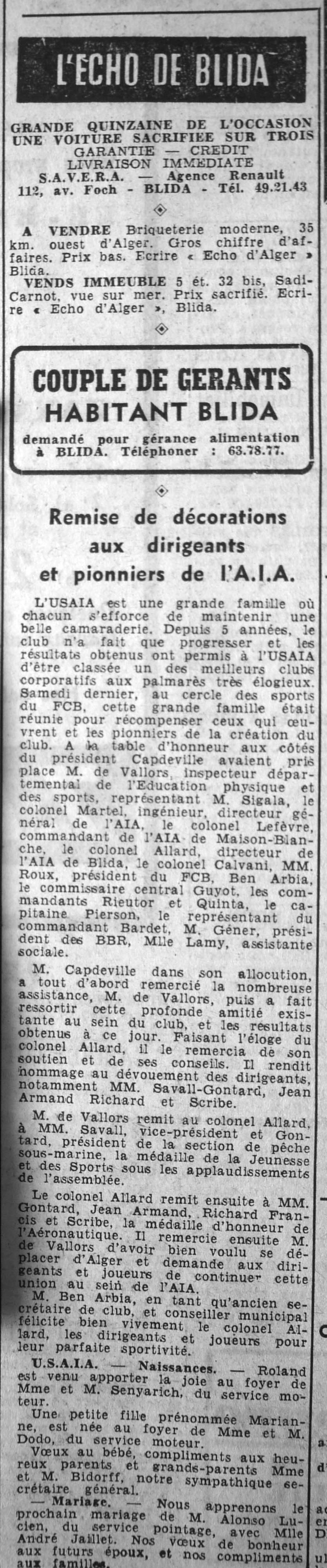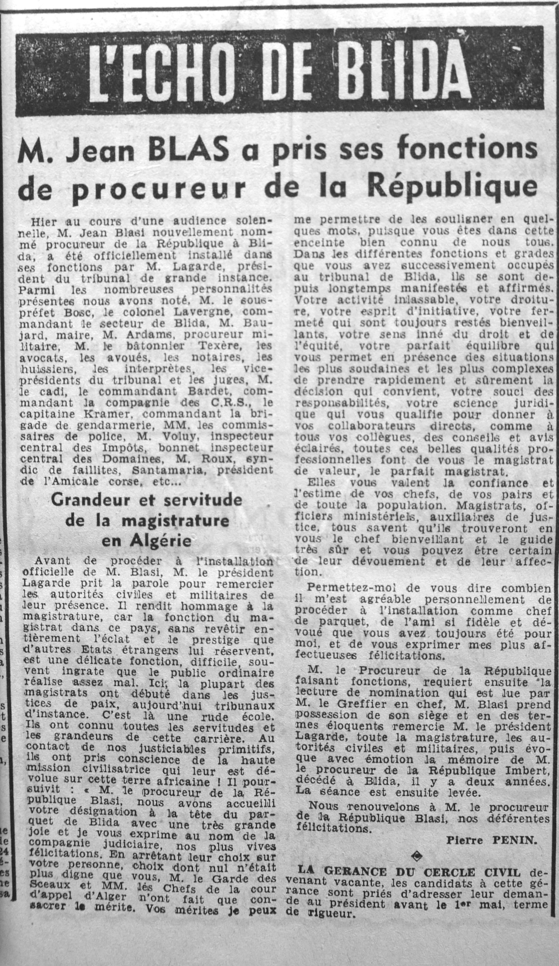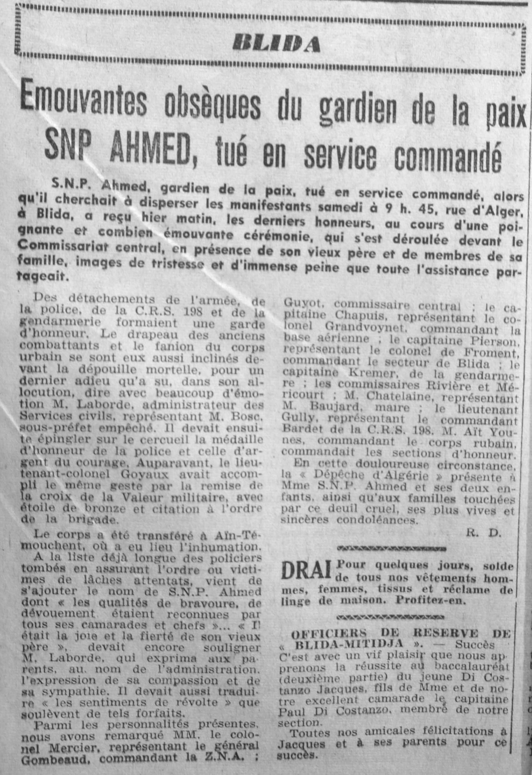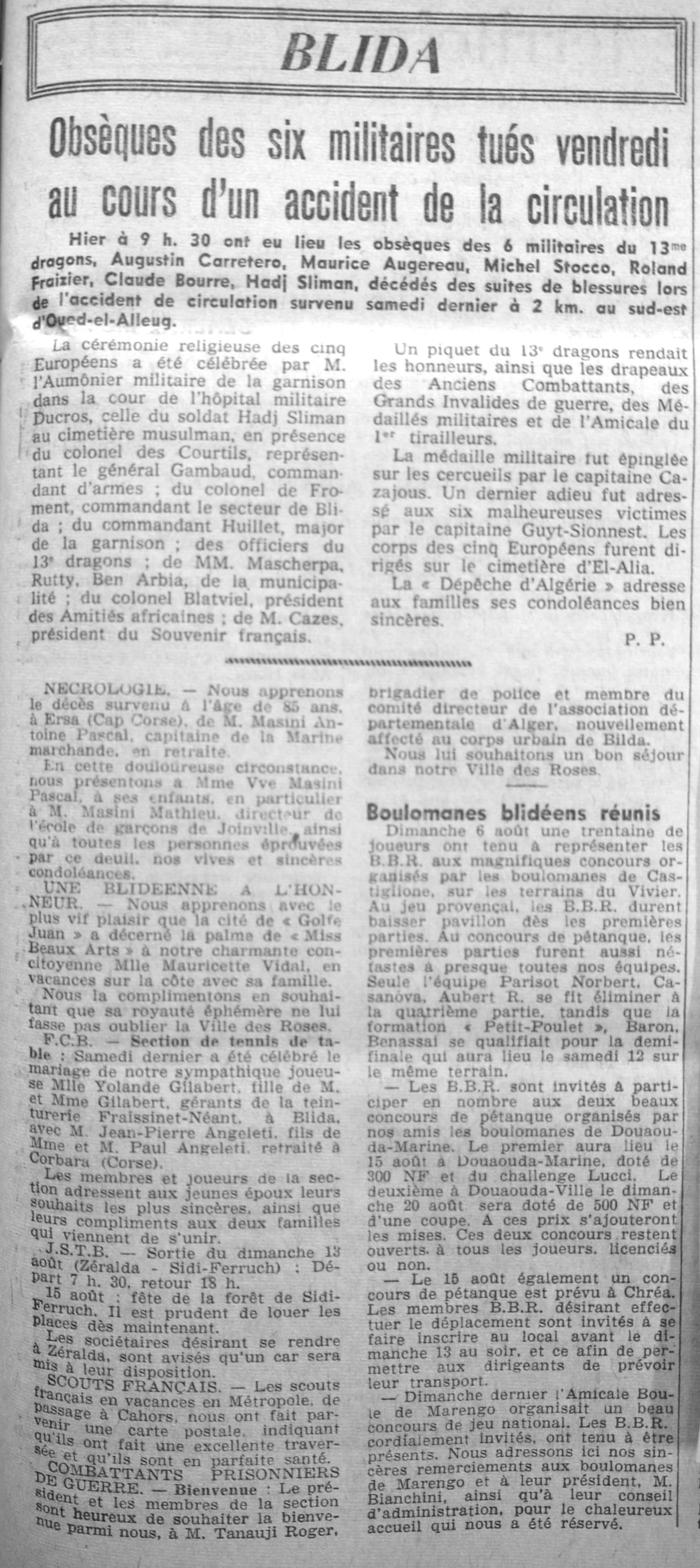 ANNEE 1961 Echos de BLIDA tirés de l'ECHO d'ALGER (janvier-avril) et de la Dépêche Quotidienne (mai-décembre) |