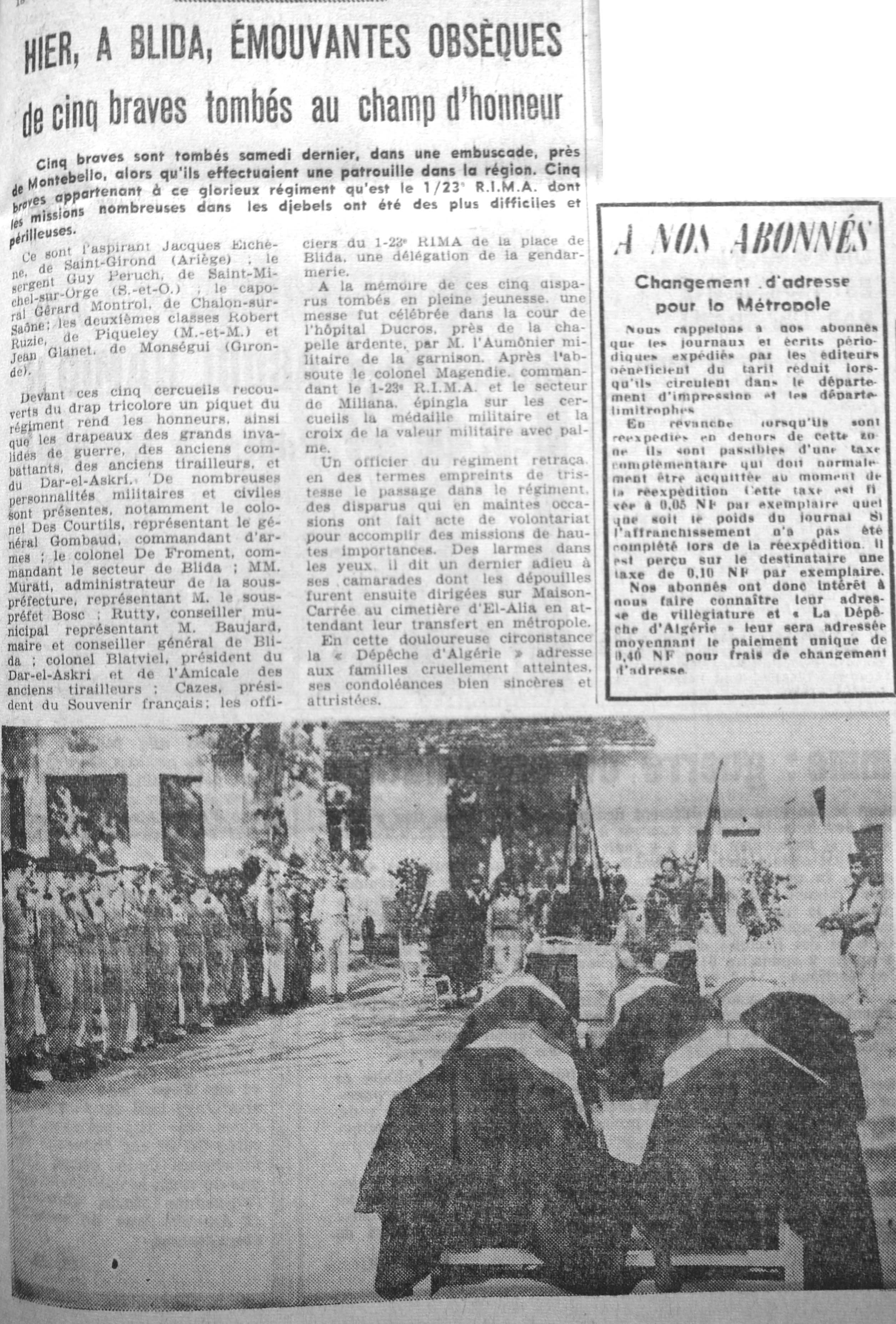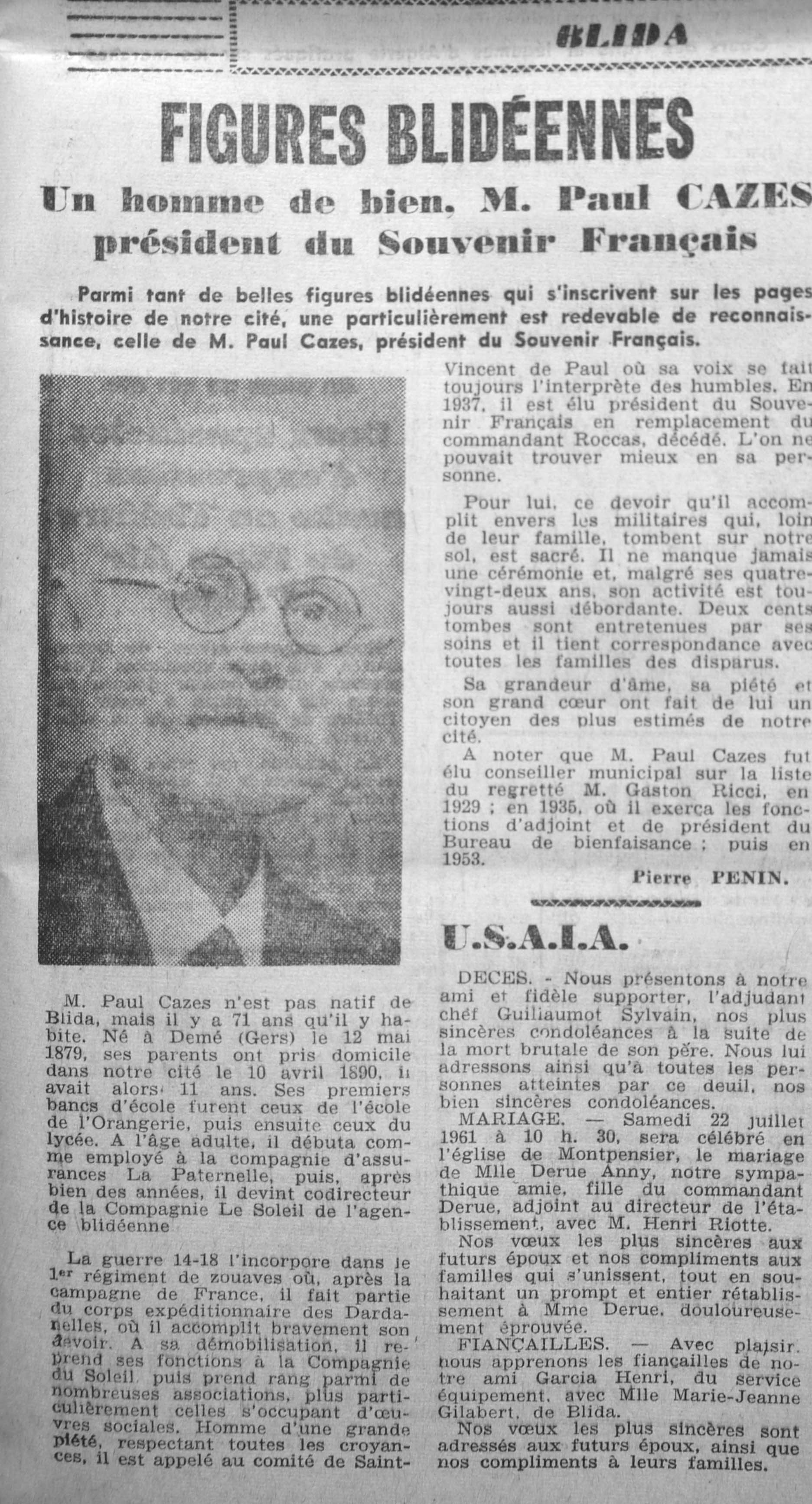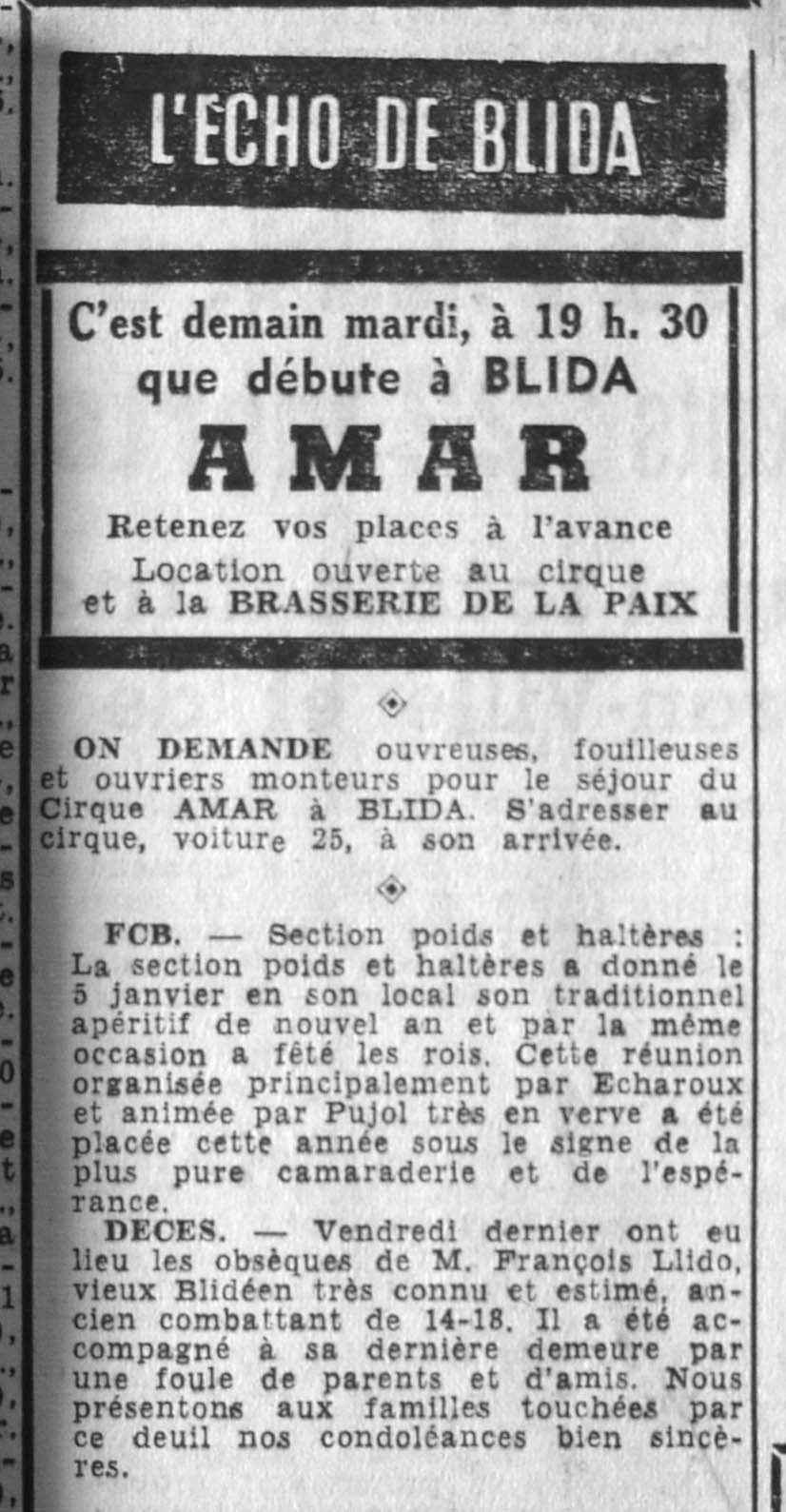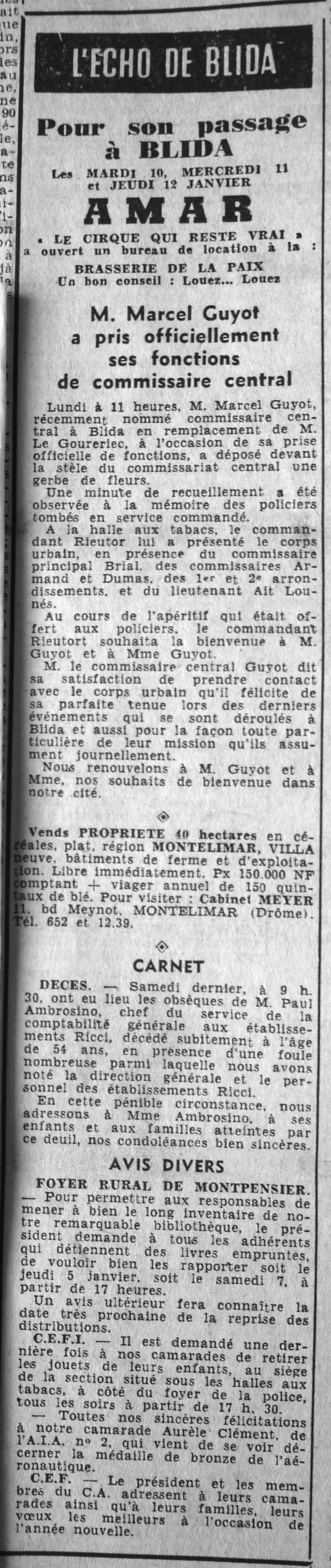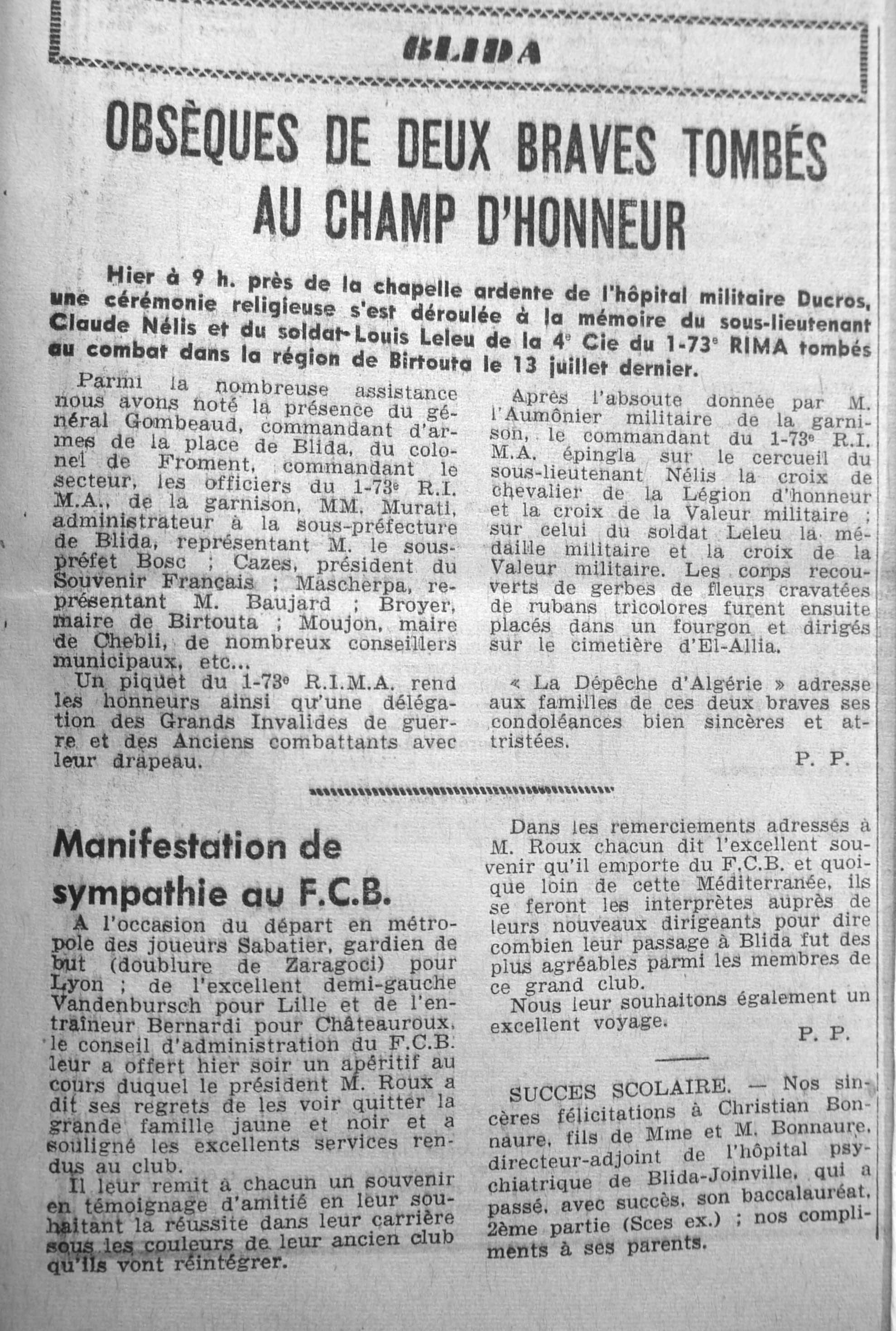 ANNEE 1961 Echos de BLIDA tirés de l'ECHO d'ALGER (janvier-avril) et de la Dépêche Quotidienne (mai-décembre) |