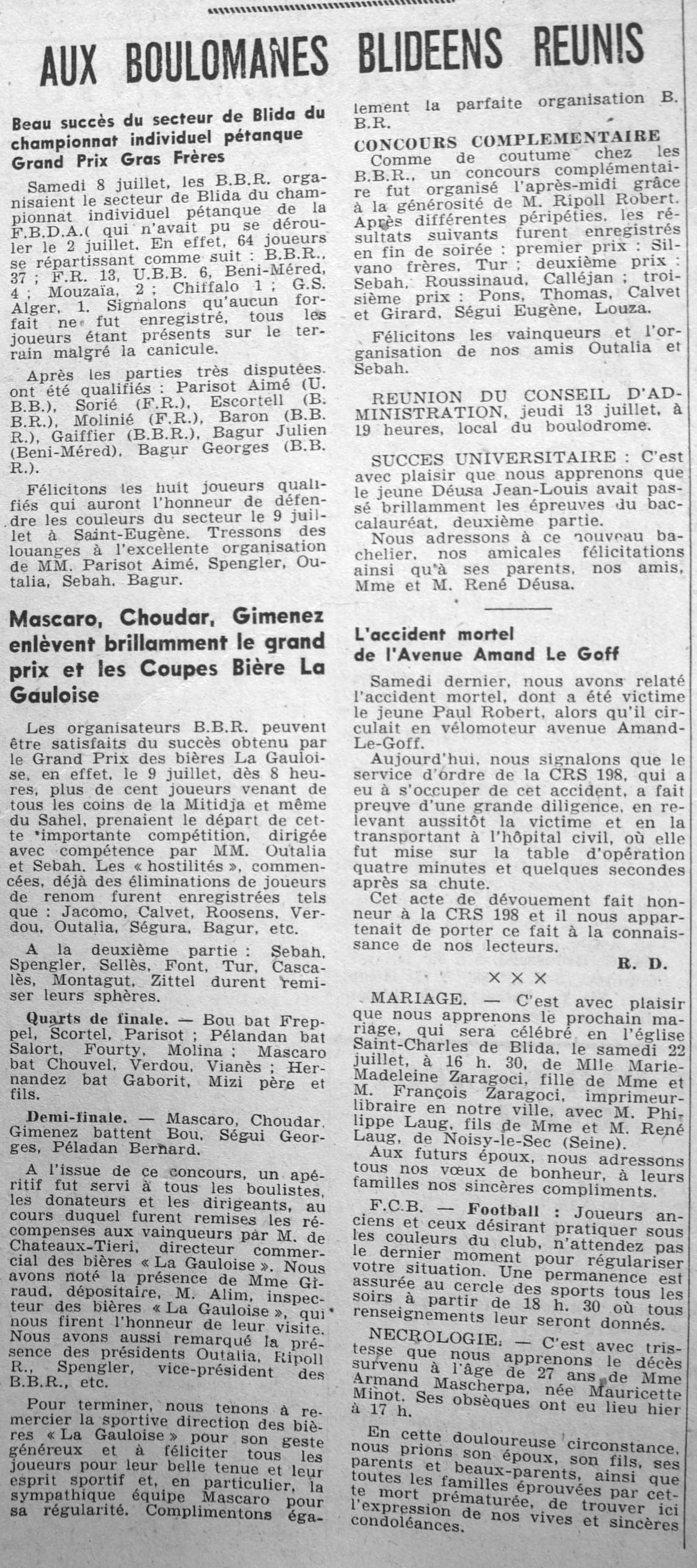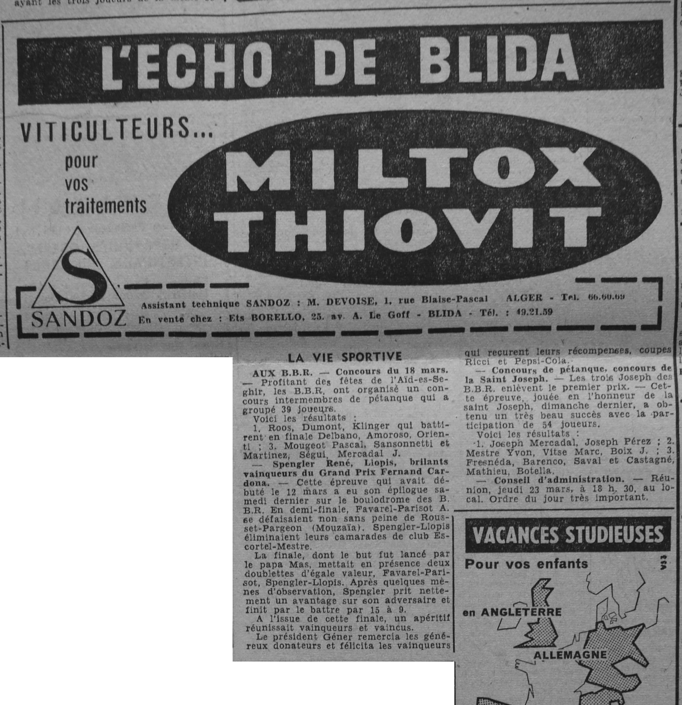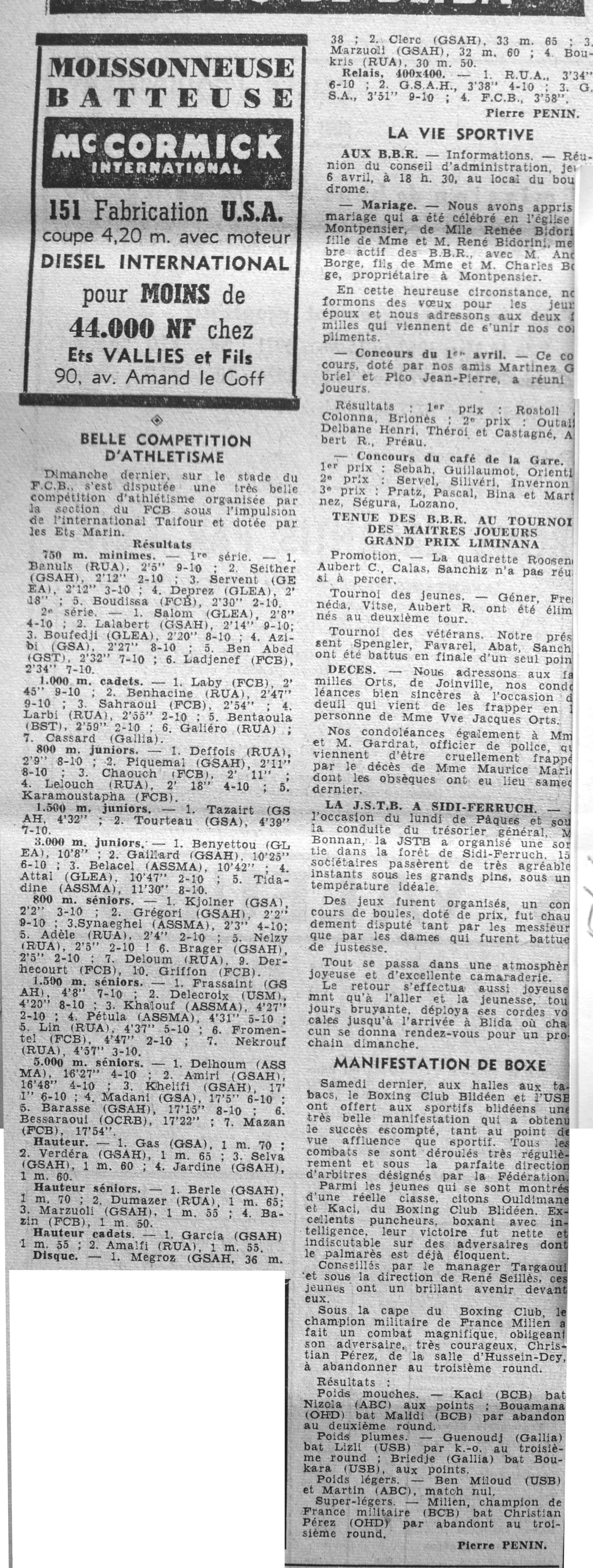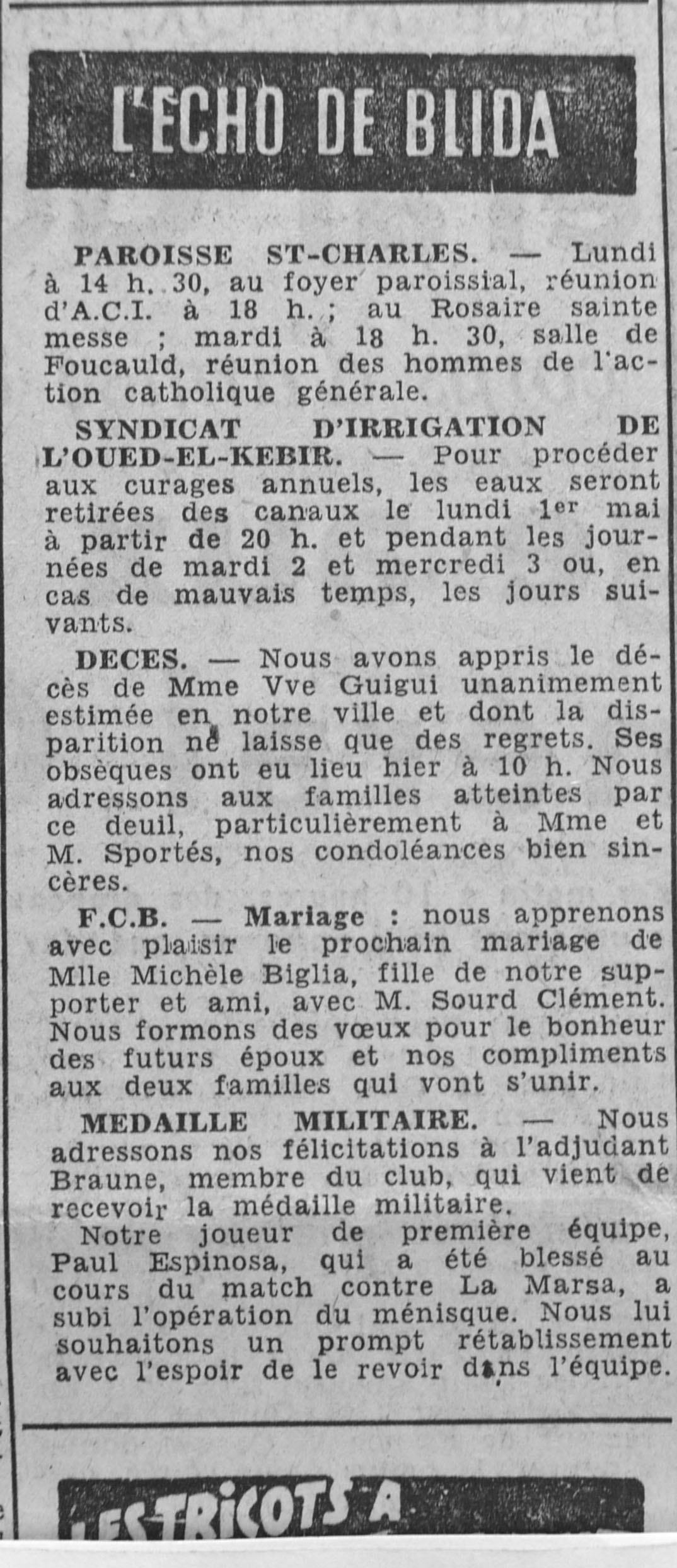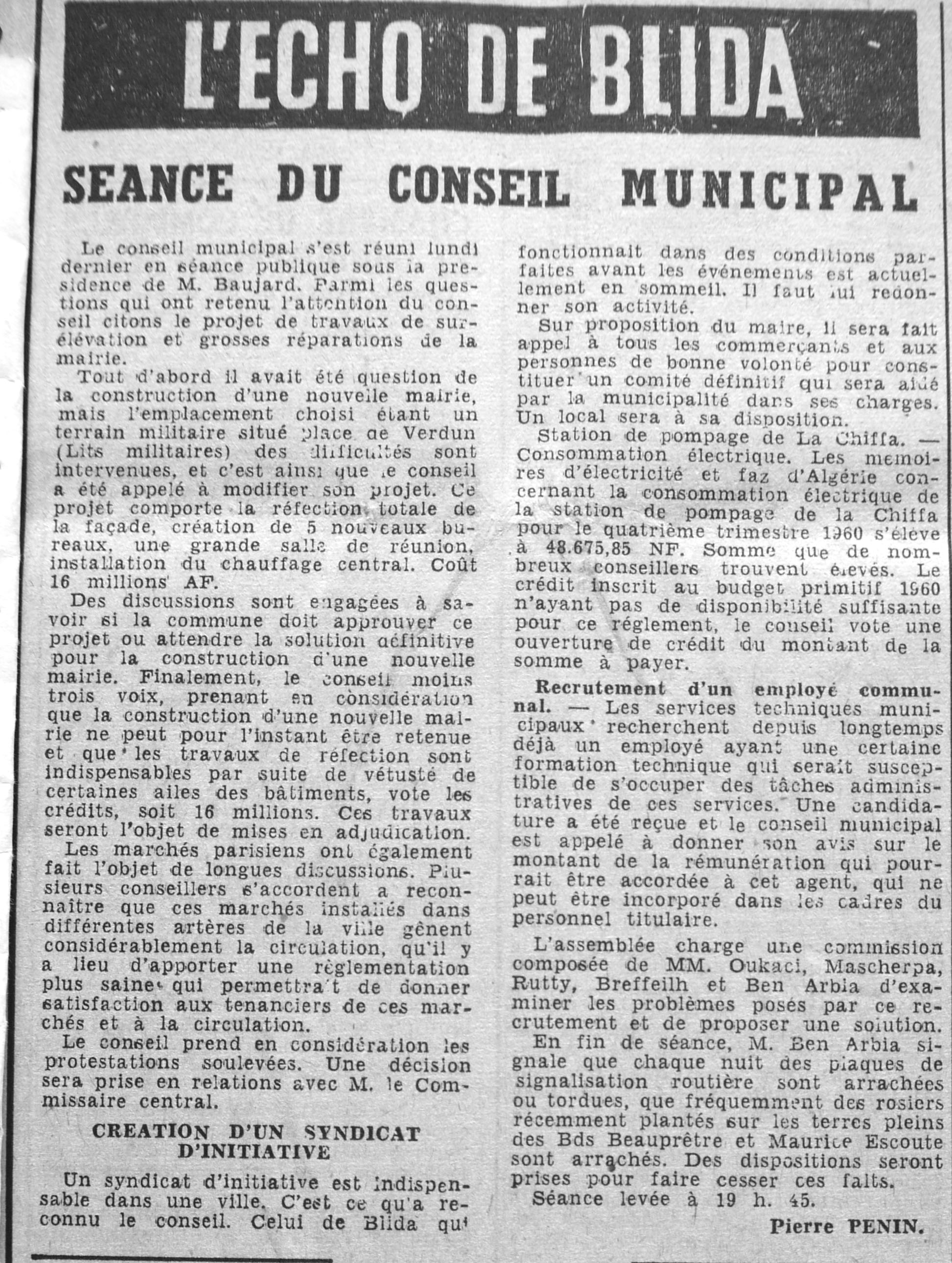 ANNEE 1961 Echos de BLIDA tirés de l'ECHO d'ALGER (janvier-avril) et de la Dépêche Quotidienne (mai-décembre) |