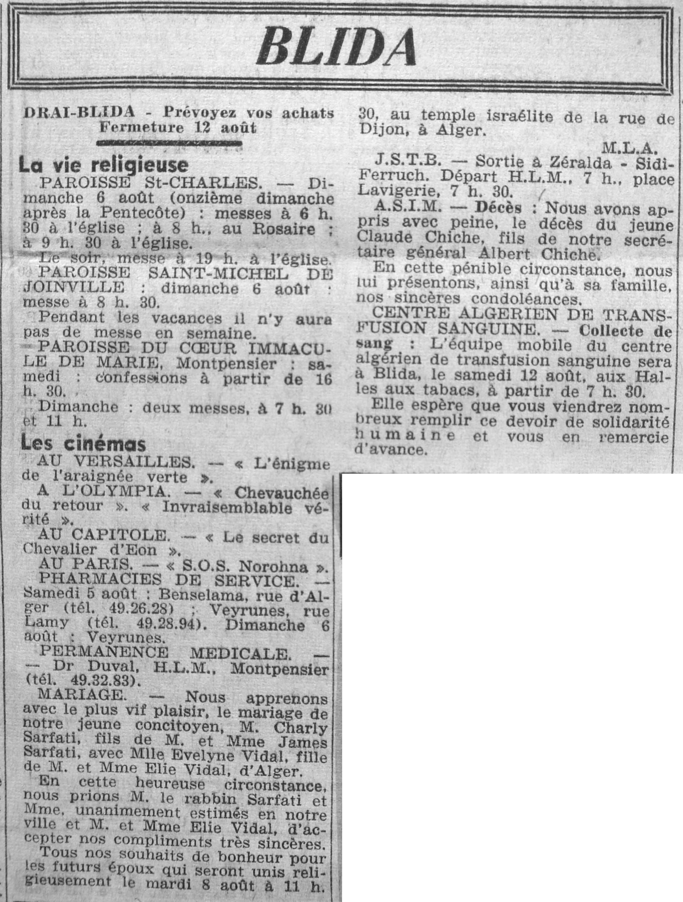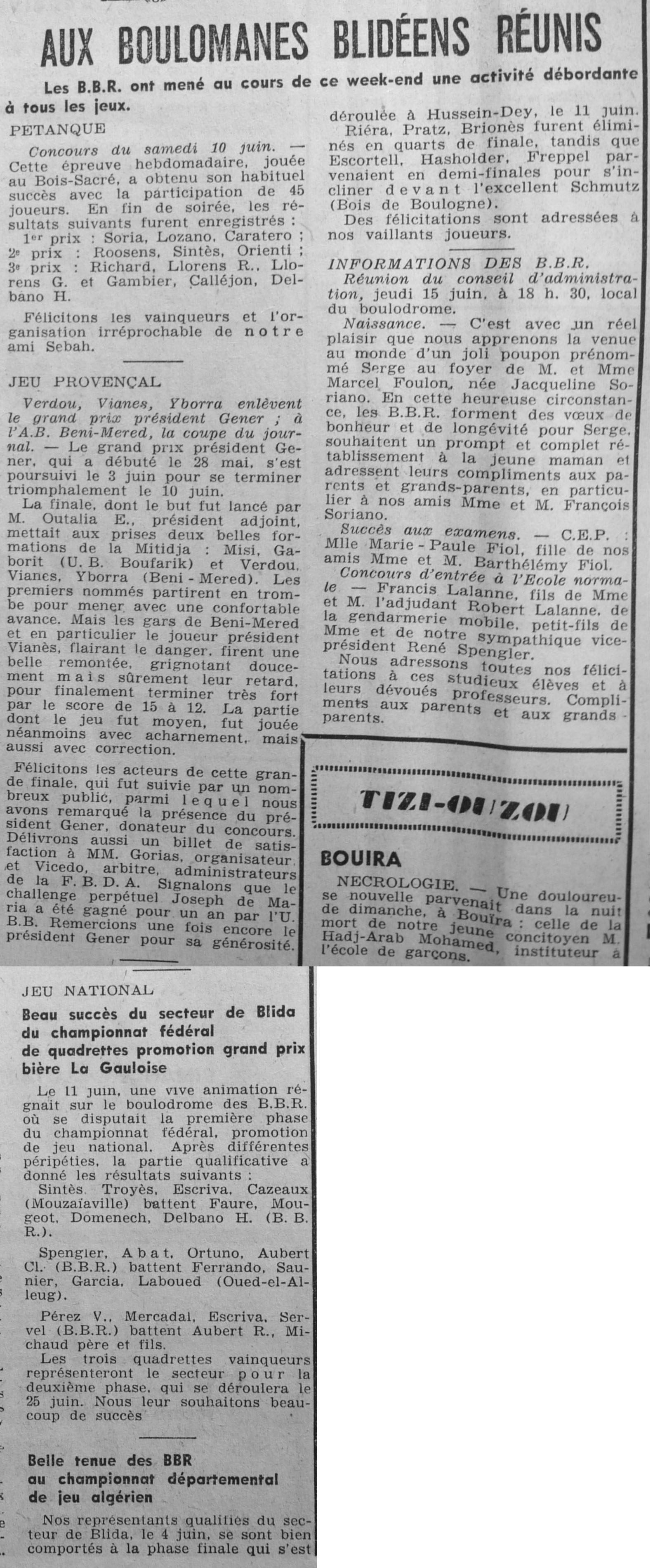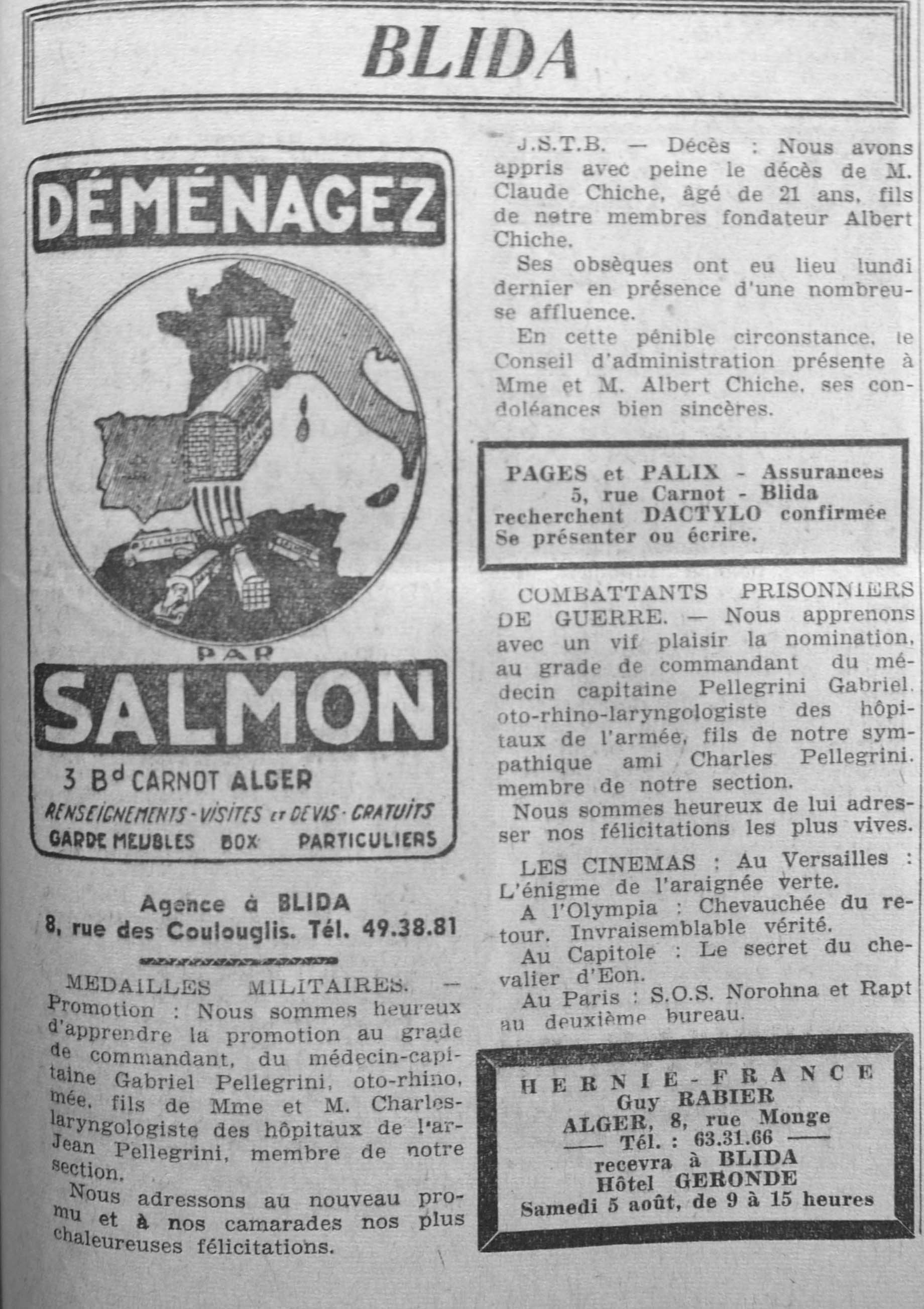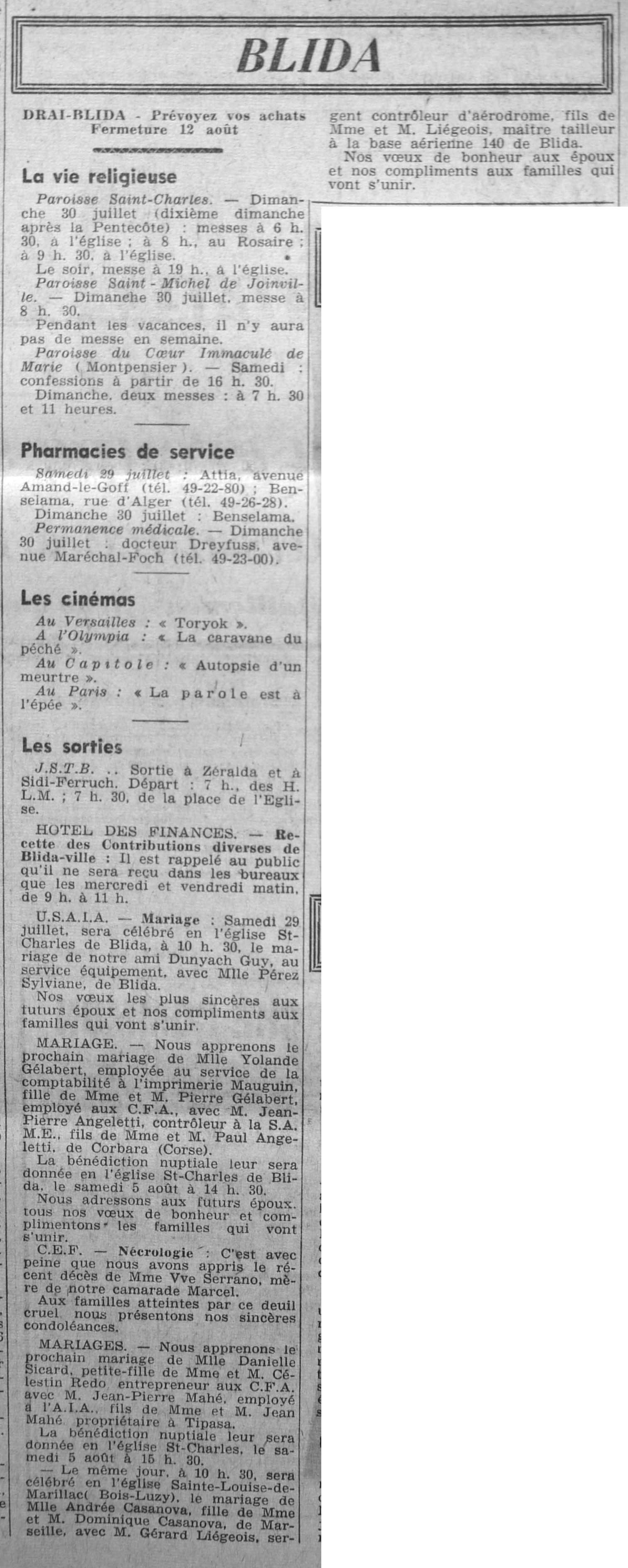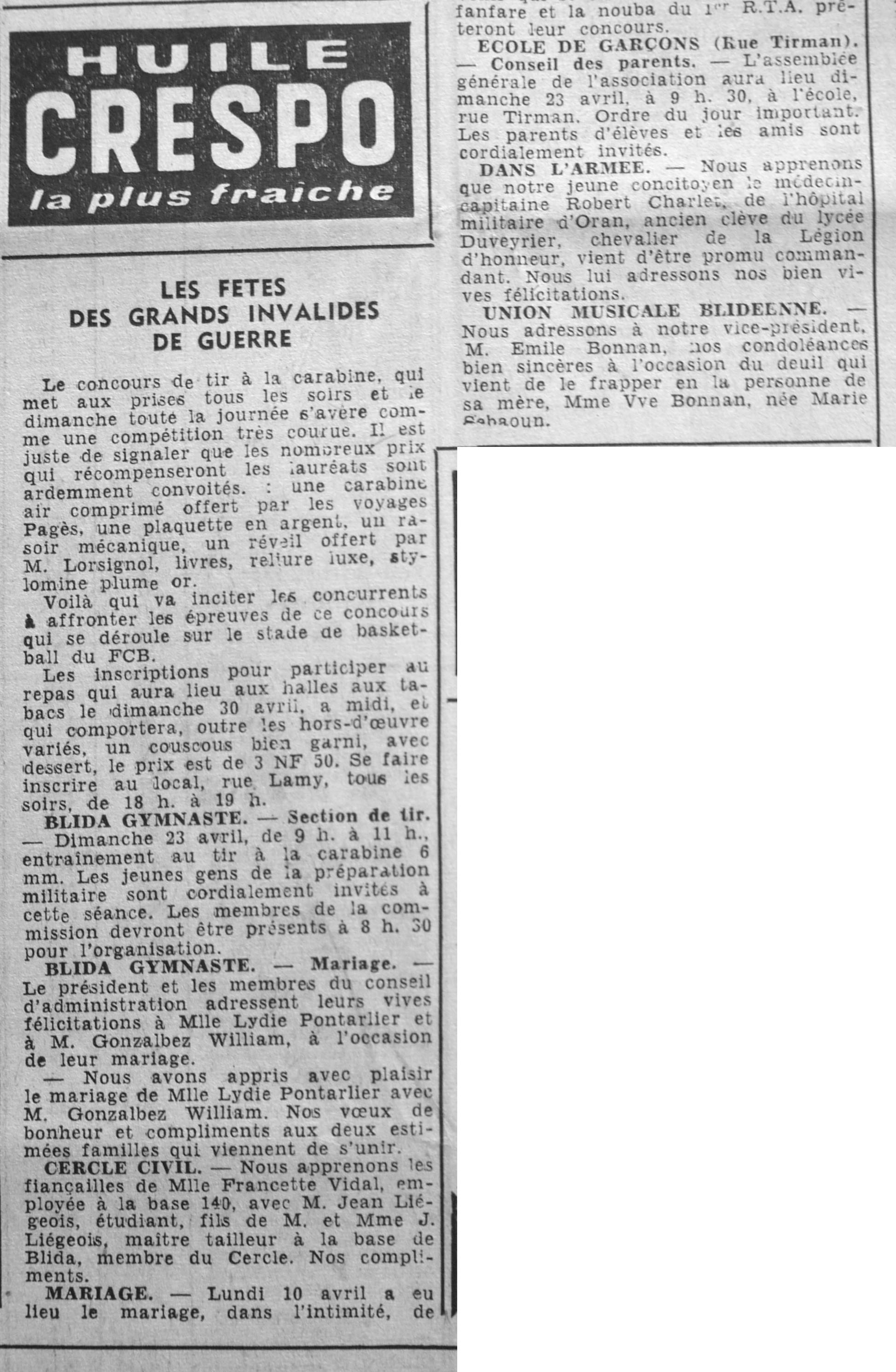 ANNEE 1961 Echos de BLIDA tirés de l'ECHO d'ALGER (janvier-avril) et de la Dépêche Quotidienne (mai-décembre) |