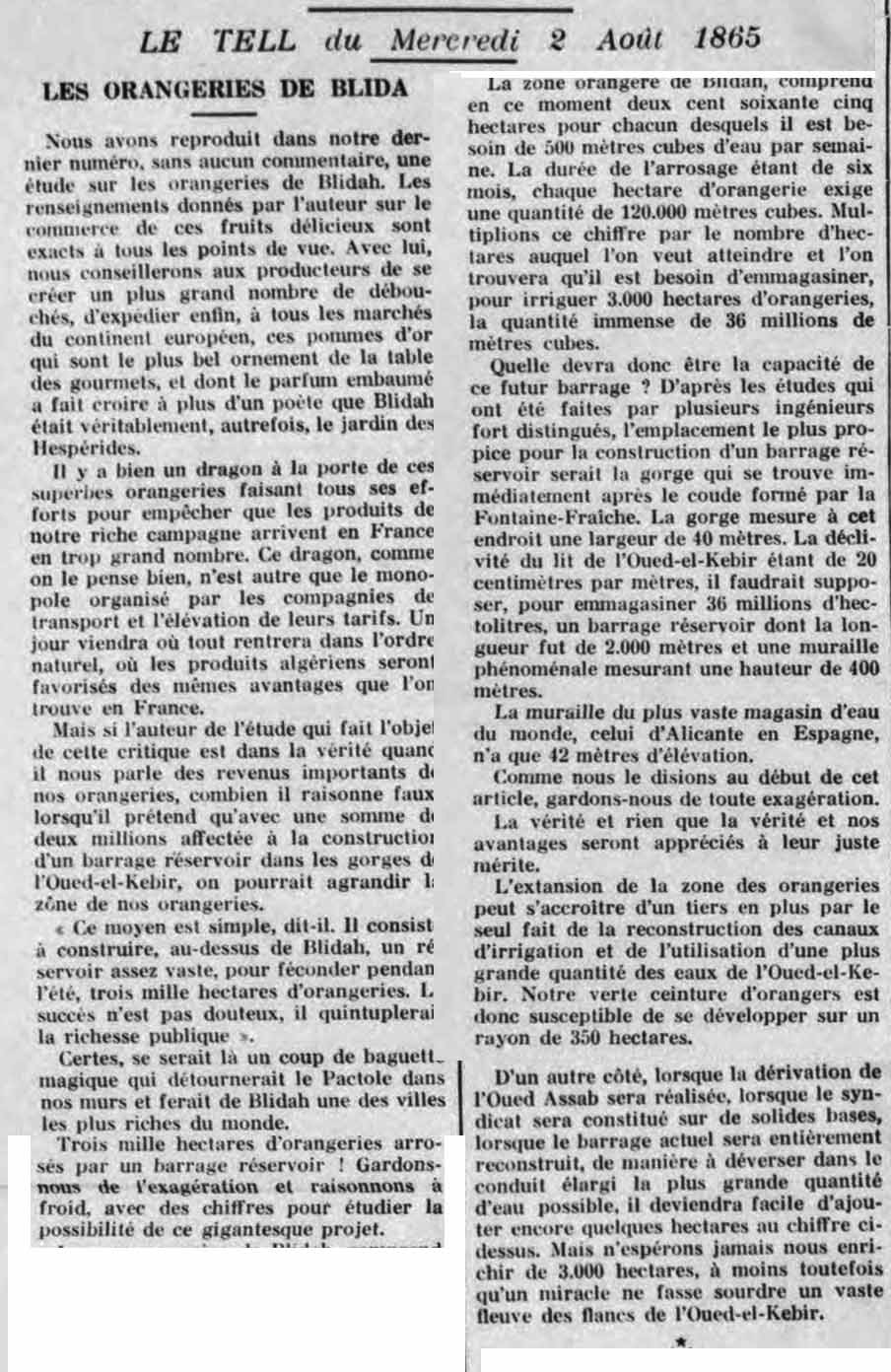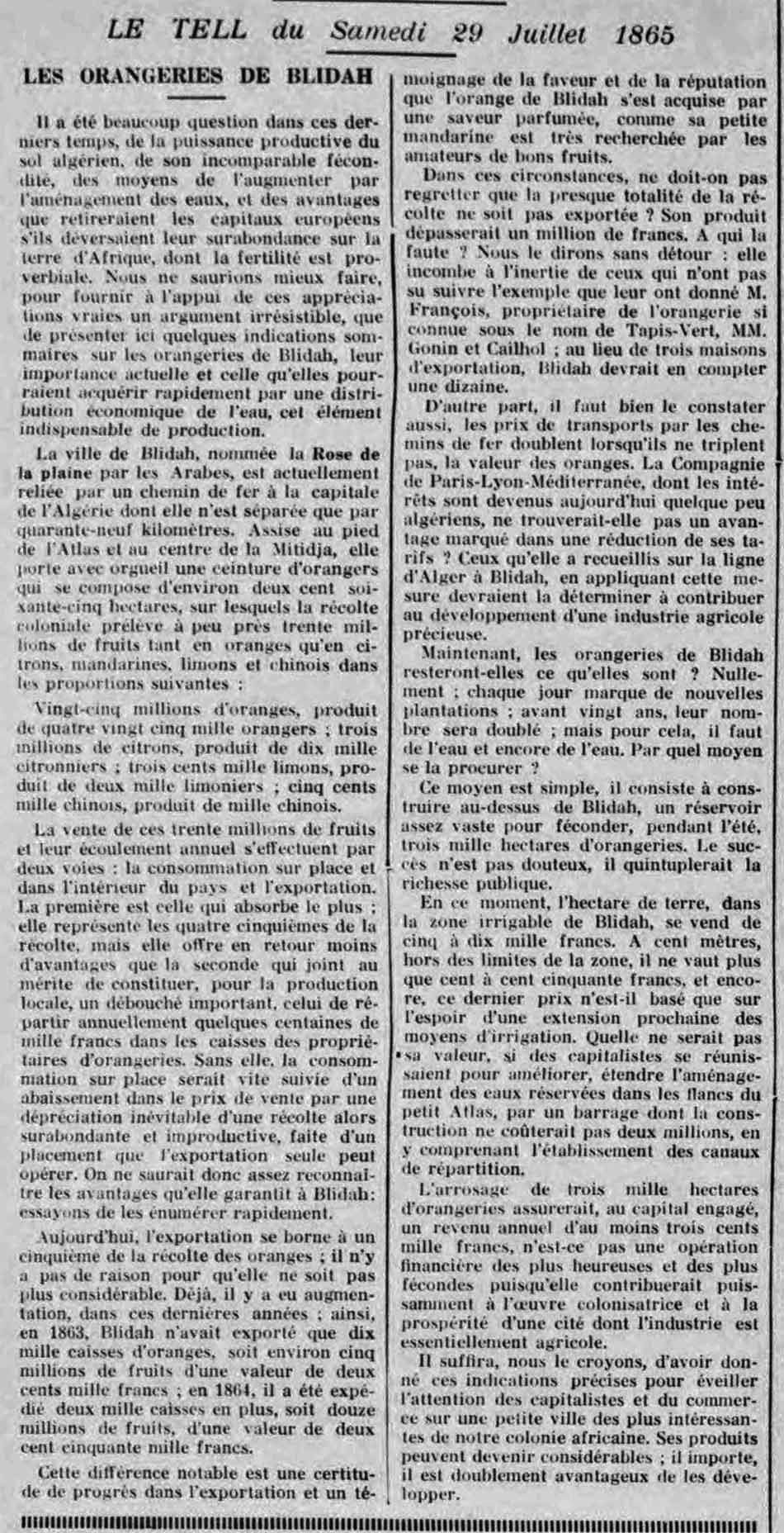 Les orangeries de BLIDA et leur irrigation en 1886 par Charles Joly, Vice président de la Société nationale d'Horticulture ou encore dans l'Afrique du Nord illustée là du 27/09/1924 et là du 23/01/1926 |