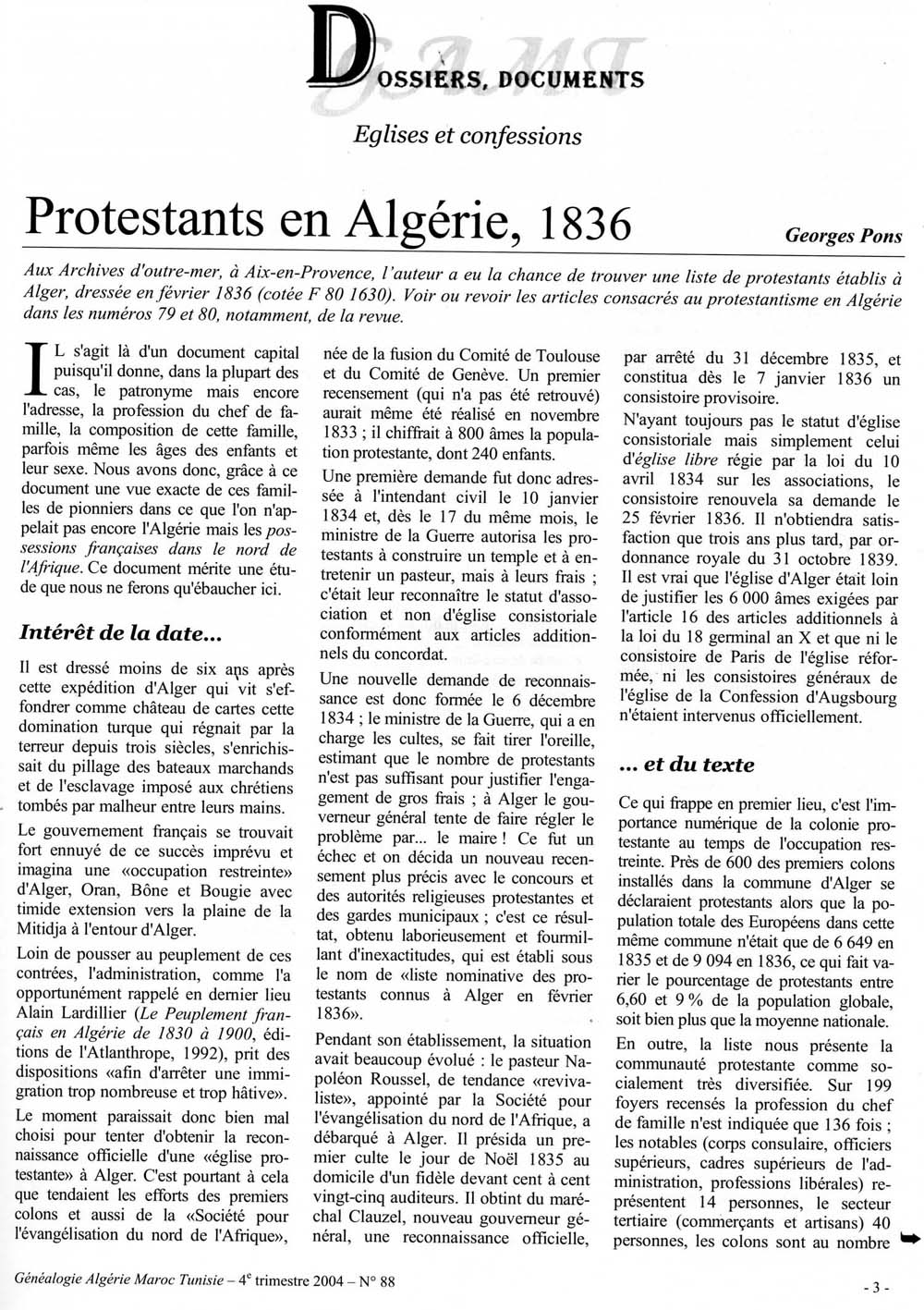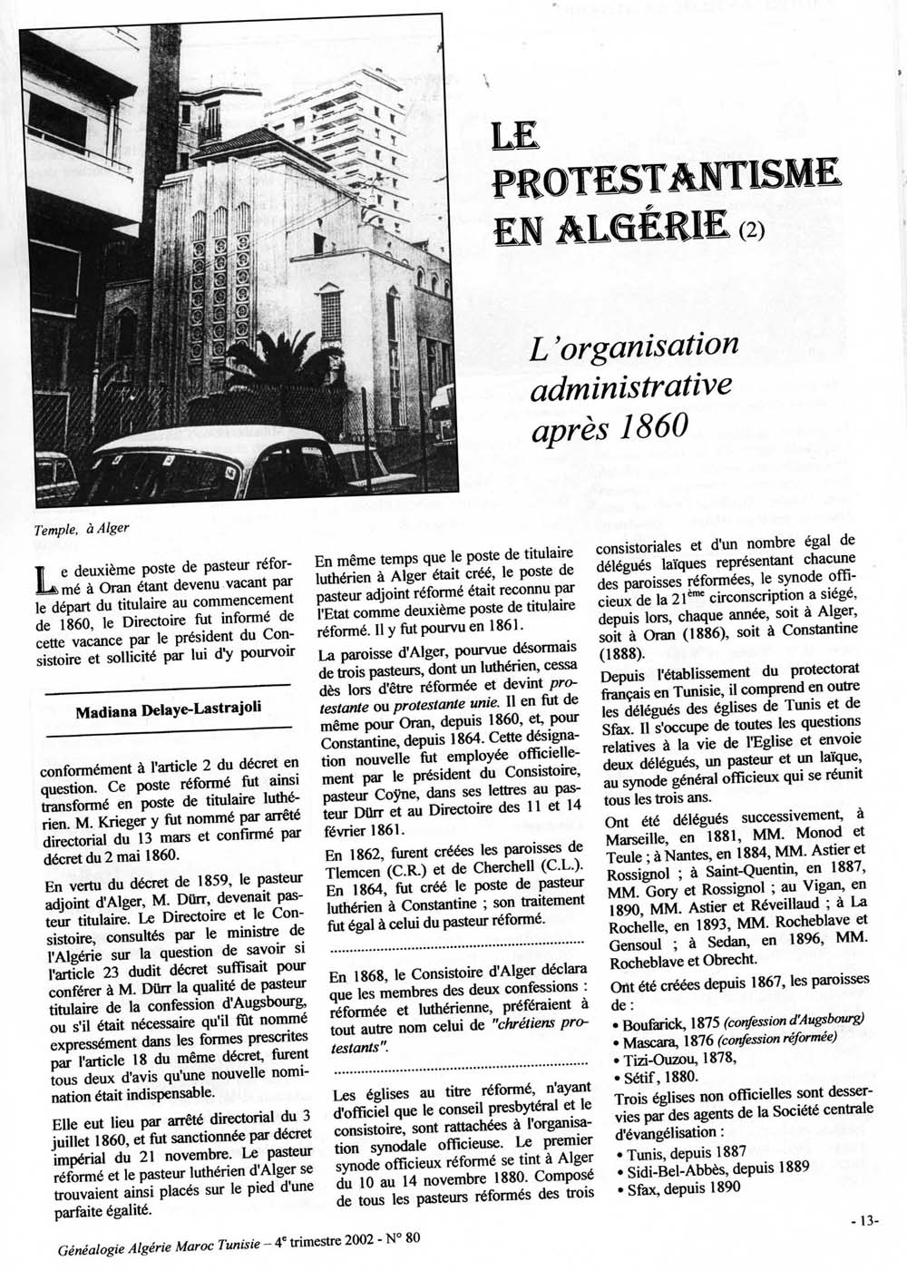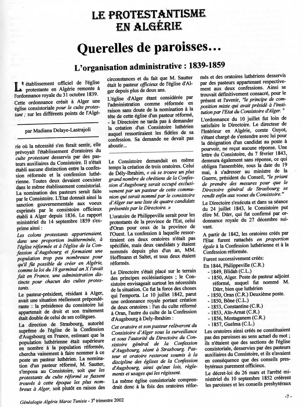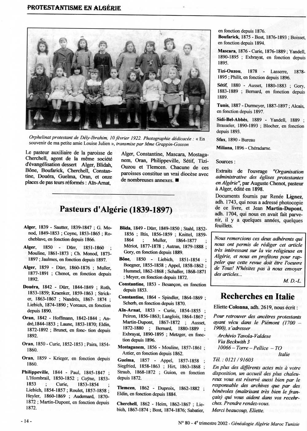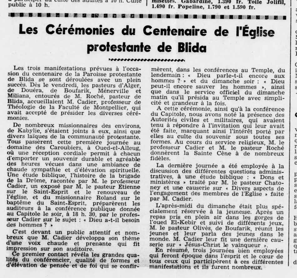 Journal des protestants d'Algérie de mai 1930.