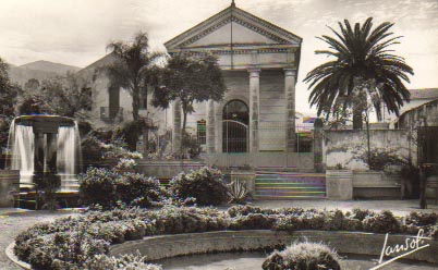 (2)Place de l’orangerie , un immeuble dont le rez-de-chaussée servait de lieu de culte et le premier étage de logement pour le pasteur. 11 s'agit, en fait d'un local étroit et insuffisant ; pour les fêtes comme Noël ou Pâques le culte avait lieu dans une salle de classe de l'école voisine. Une partie de cet immeuble s'effondrera même en 1867. (G.Pons – Blida de ma jeunesse de M.Manivit)