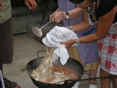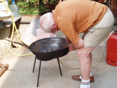 gaspacho: Dans une grande poêle à bords hauts, faire revenir
