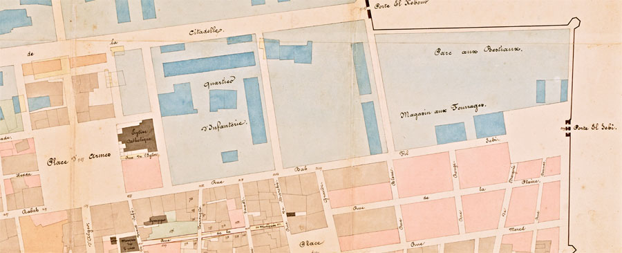 La rue Bab-el-Sebt, telle qu'elle était il y a cinquante ans et telle qu'elle est maintenant Plan 1852 |